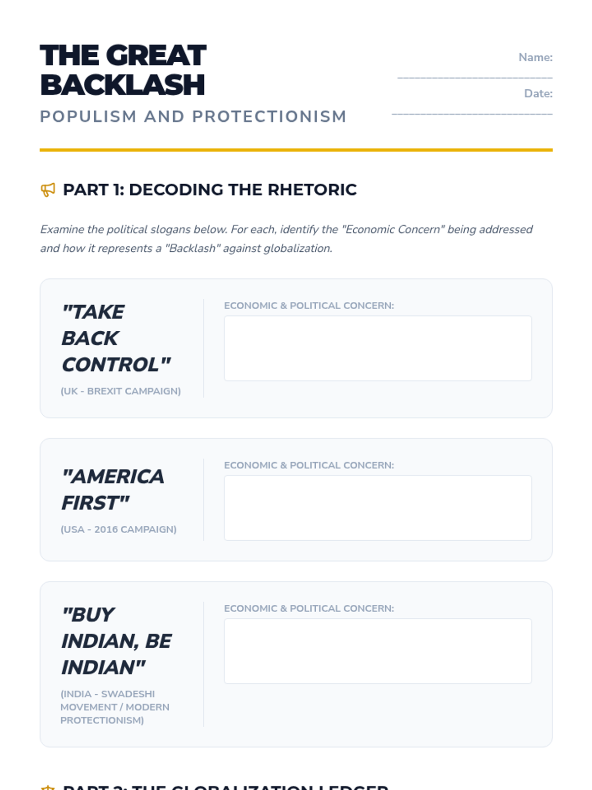This 12th-grade history sequence explores the economic and cultural frameworks of the modern world, analyzing the institutions of globalization, the rise of East Asian economies, and the tensions between global integration and national sovereignty. Students evaluate the benefits and costs of interdependence through case studies on labor, migration, and the recent populist backlash against global systems.
