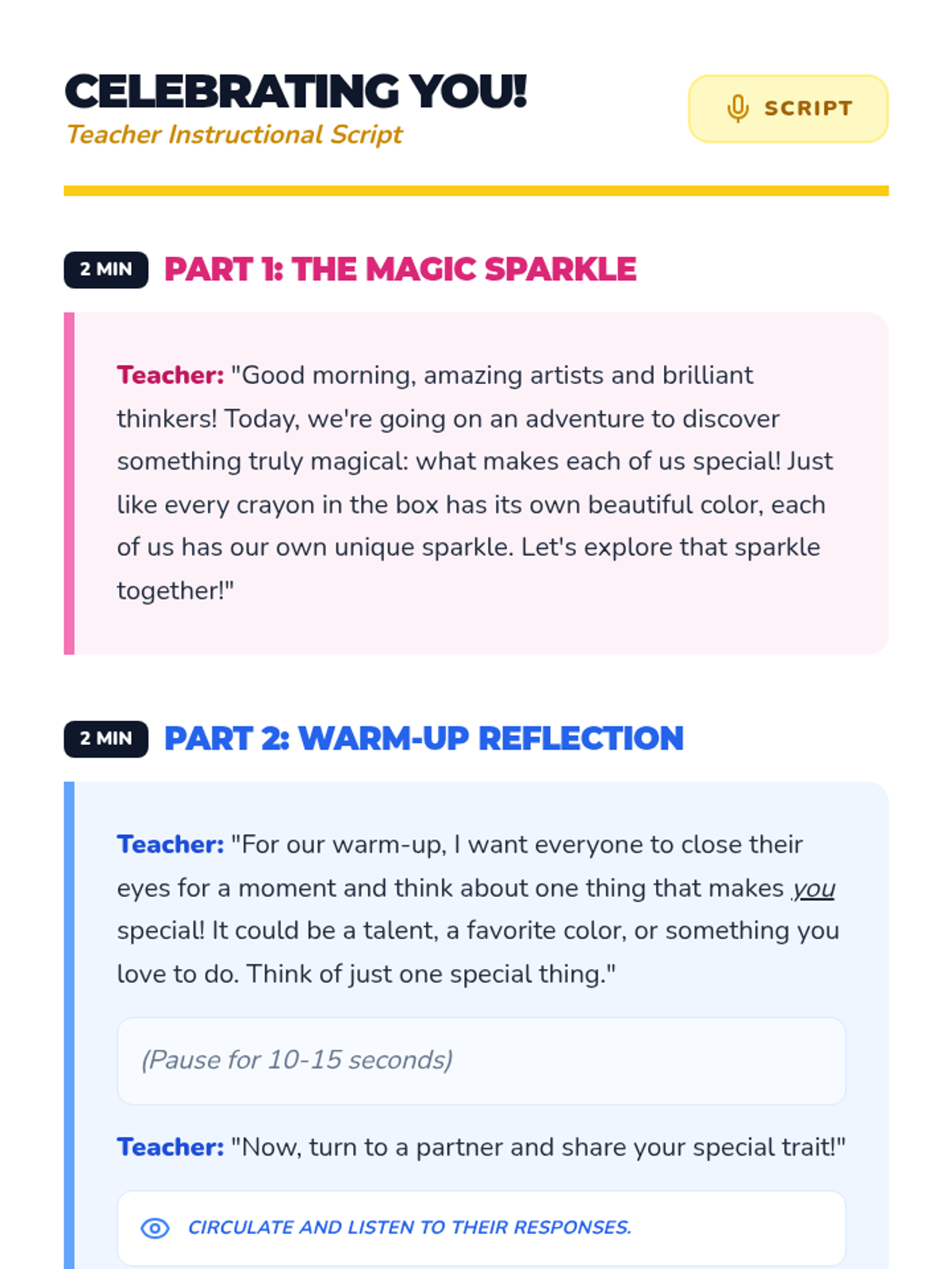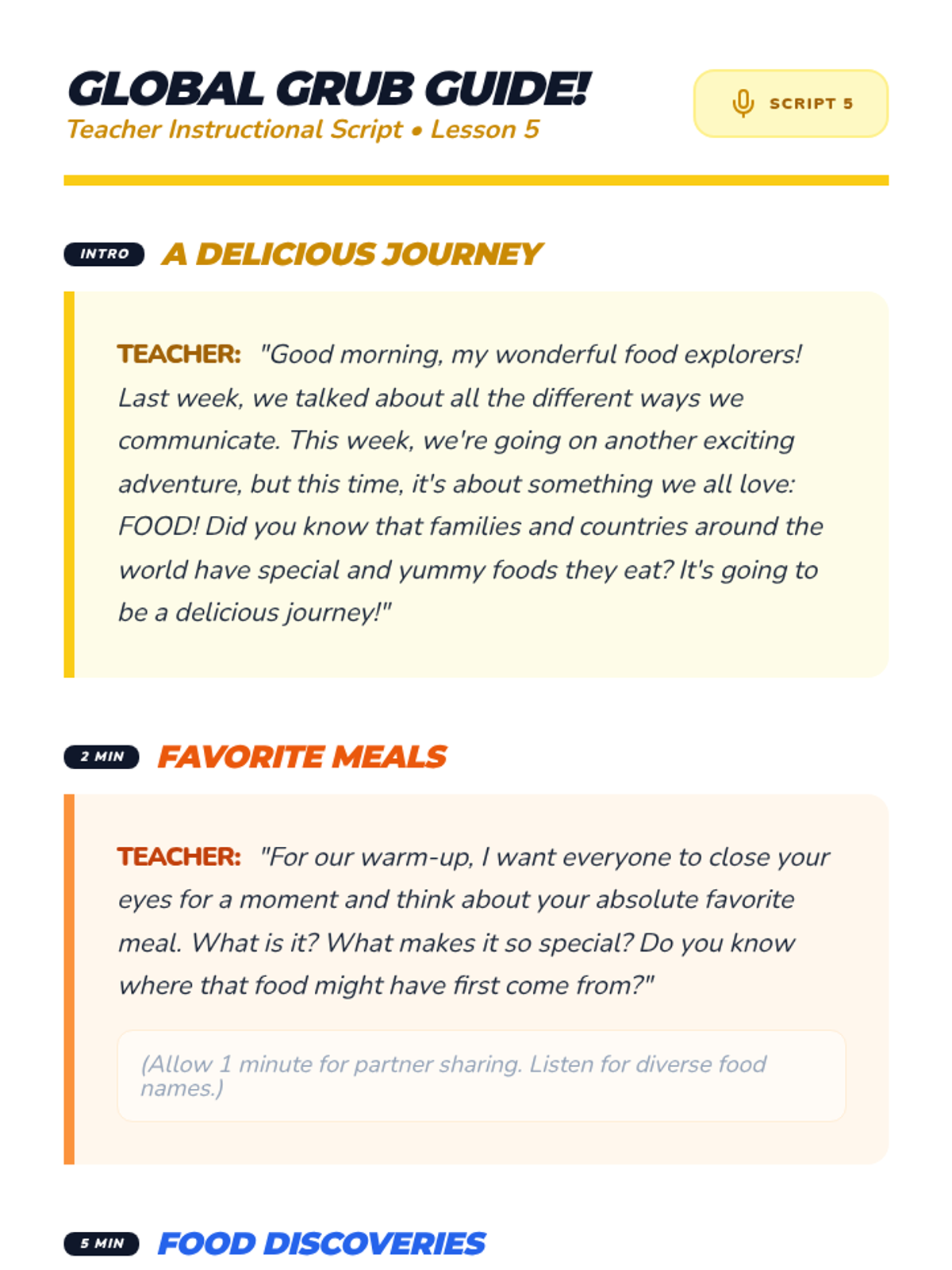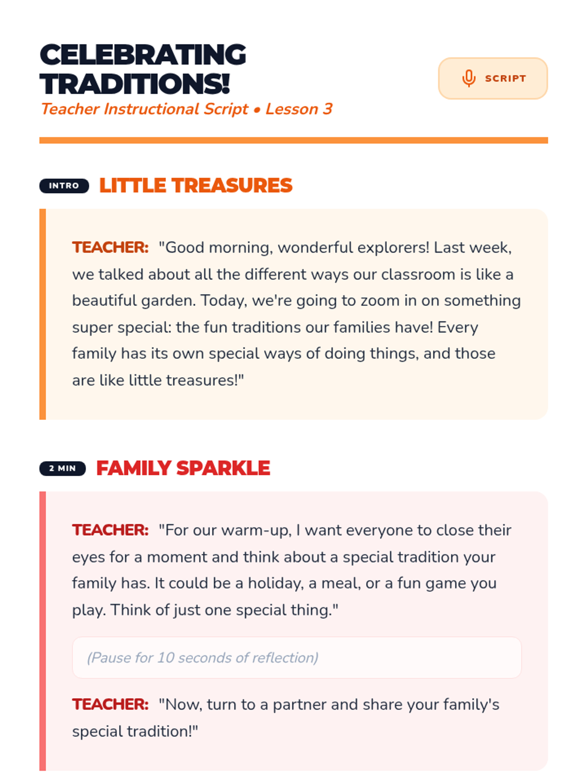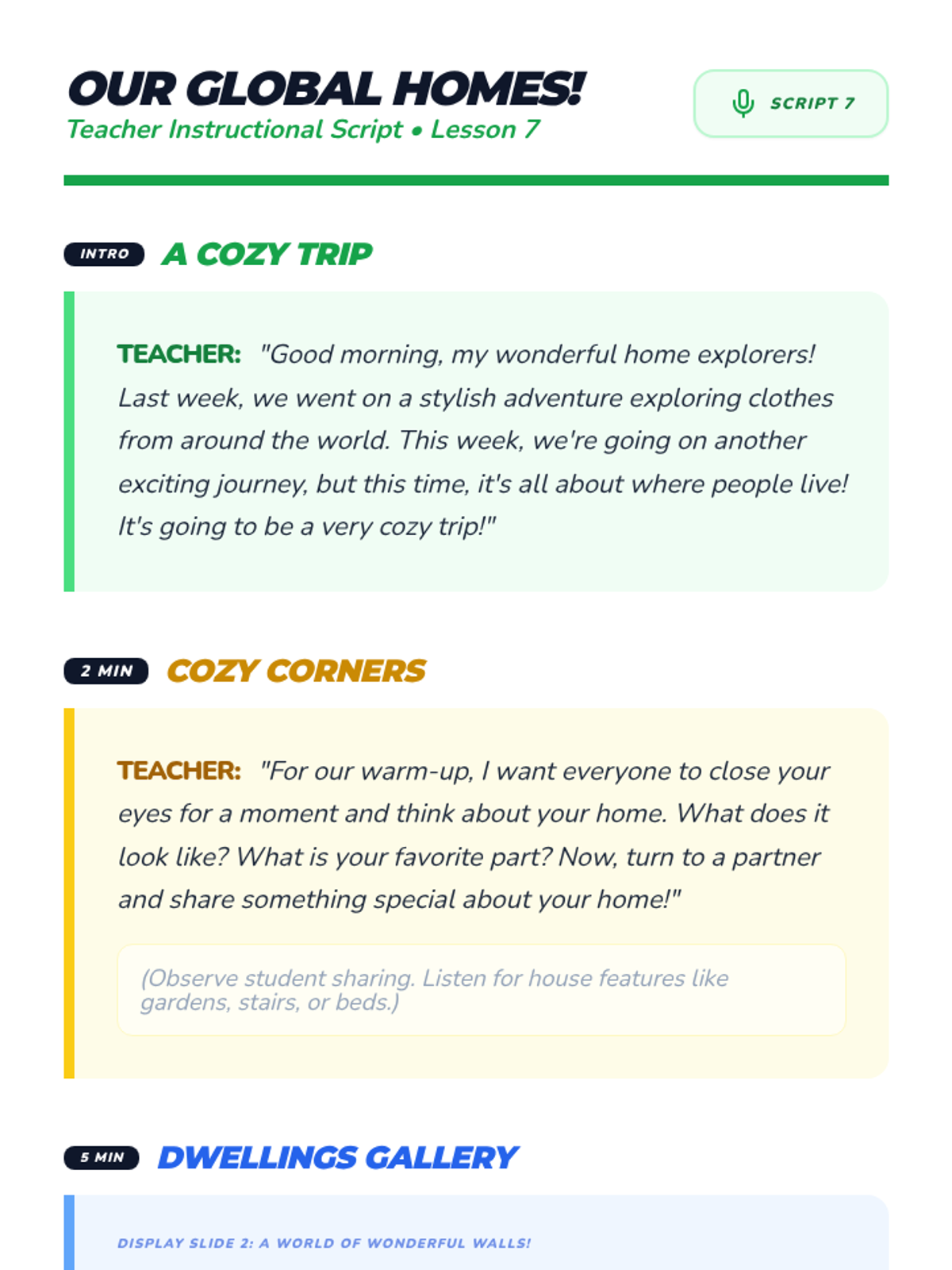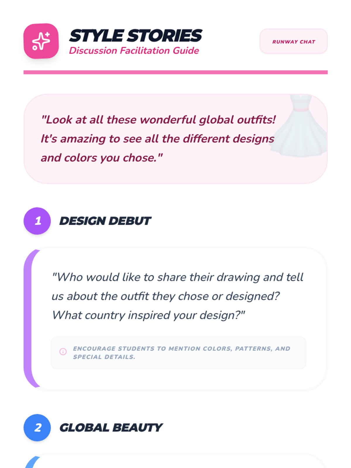 An 8-session cultural exploration sequence for 1st-grade girls, celebrating individual uniqueness, family traditions, and global diversity through food, language, fashion, and homes.
