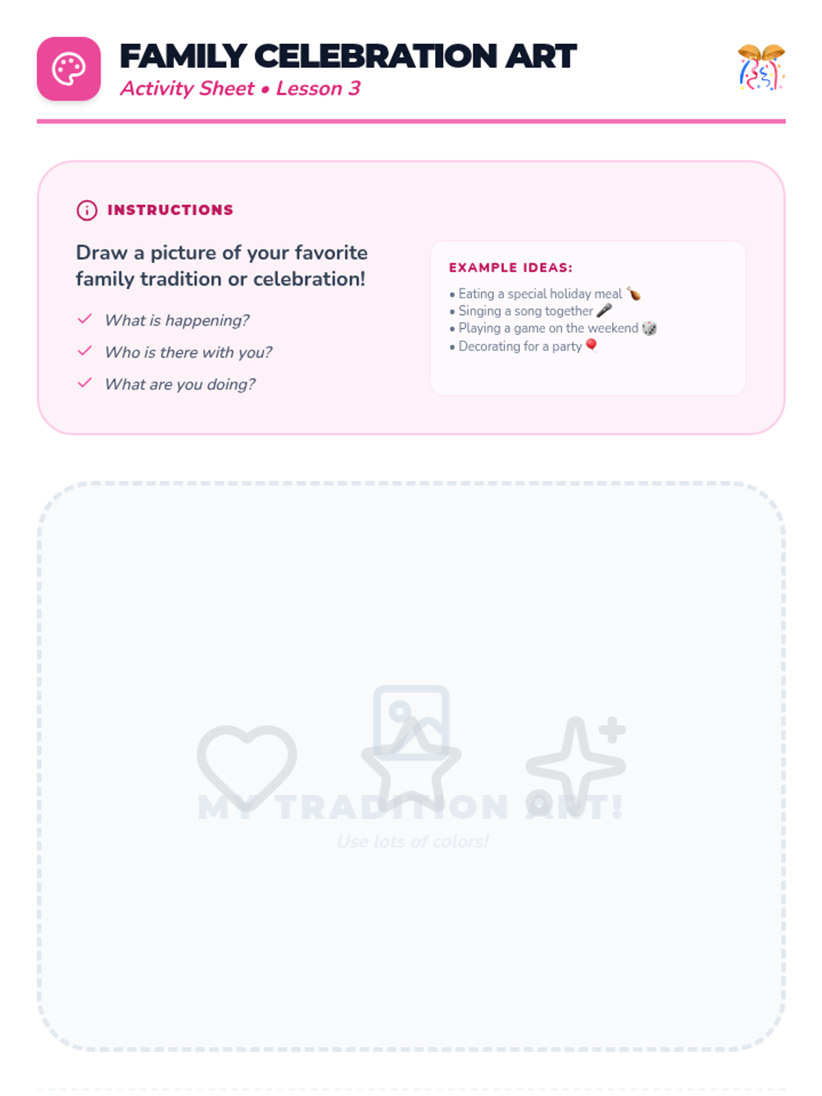 A vibrant introduction for 1st graders to Spanish-speaking holidays and family traditions, exploring Día de los Muertos, Las Posadas, and the history of piñatas.