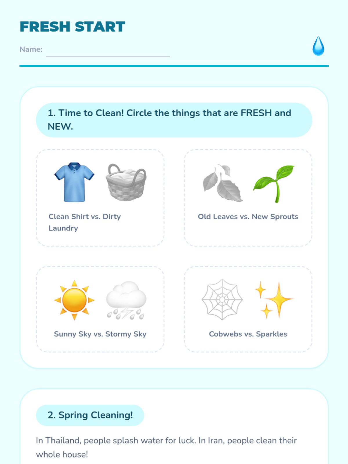 A Kindergarten sequence exploring how different cultures celebrate the New Year. Students learn about time through calendars, explore traditions like Lunar New Year and Songkran, and reflect on personal goals through resolutions.
