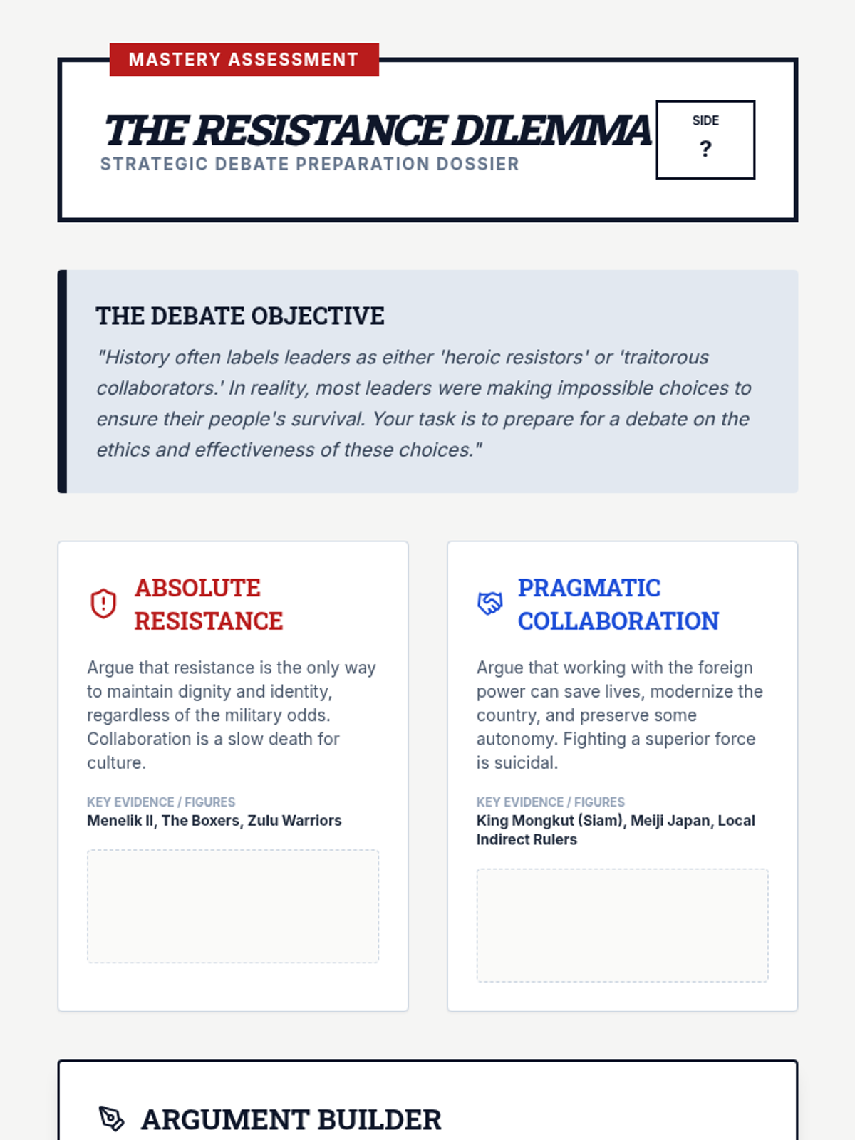 This sequence explores how indigenous peoples around the world resisted European imperialism through various strategies, including armed conflict, diplomacy, and cultural preservation. Students will move beyond narratives of victimhood to analyze the agency and strategic decisions of leaders and movements across Africa and Asia.