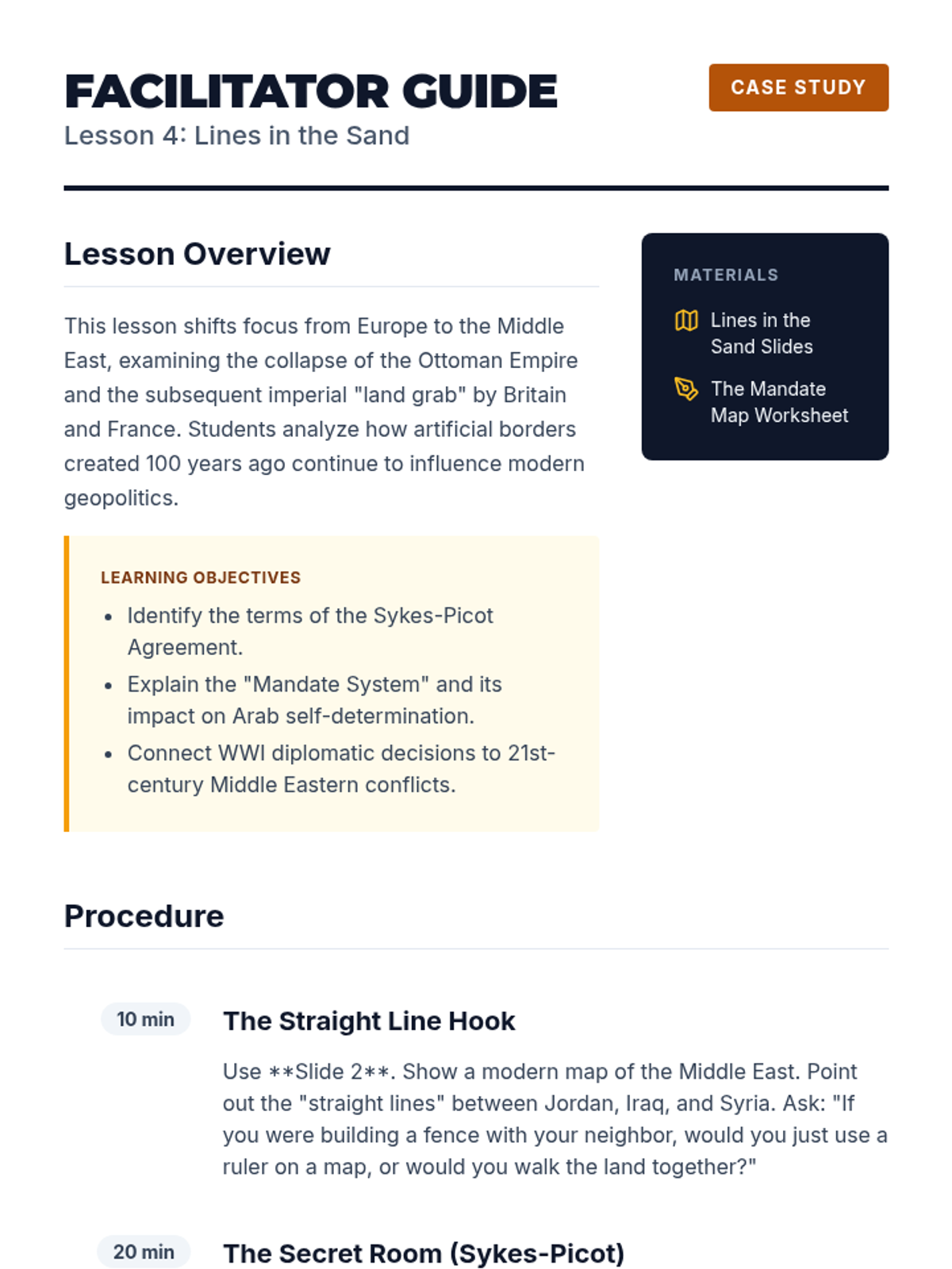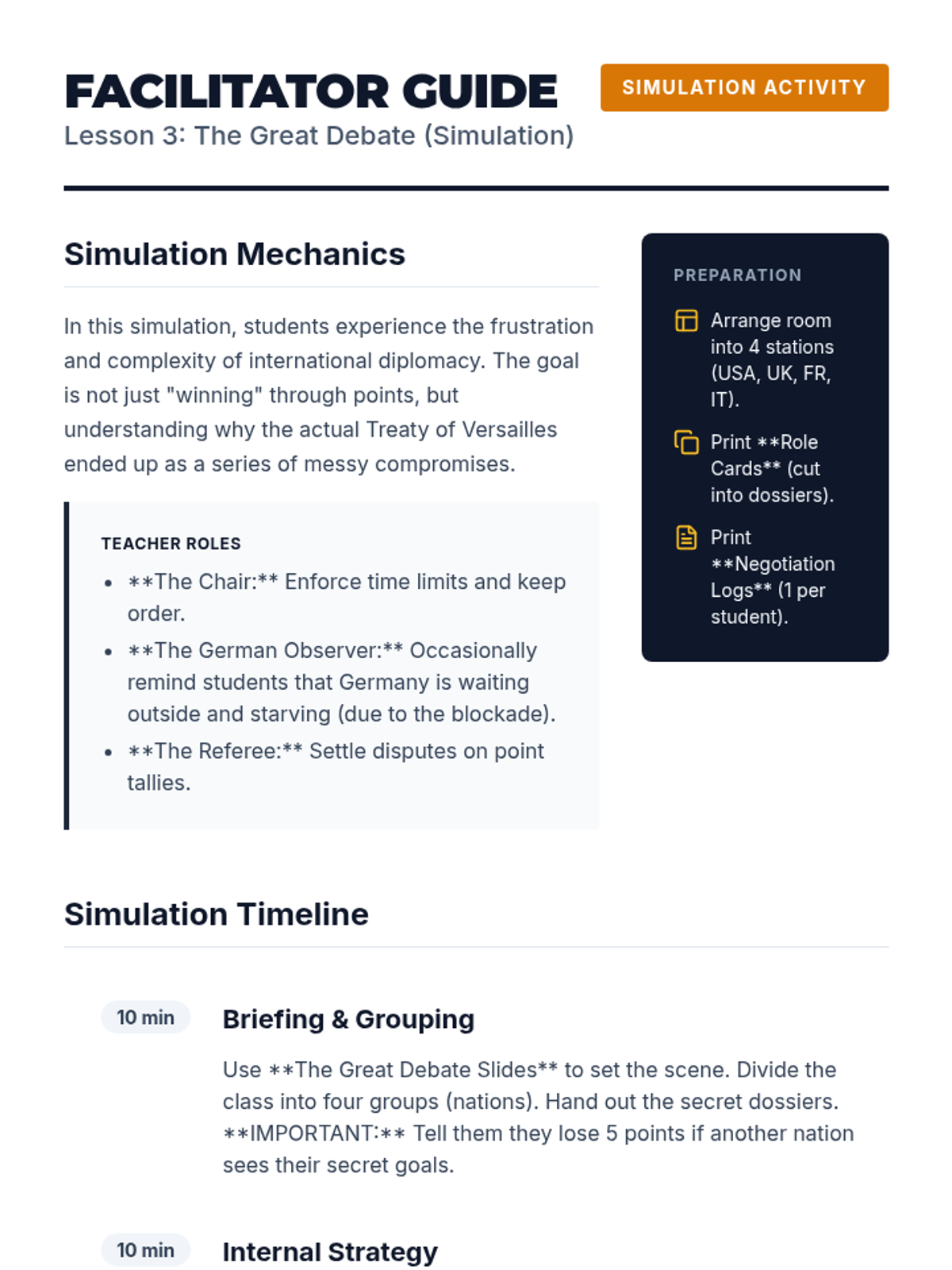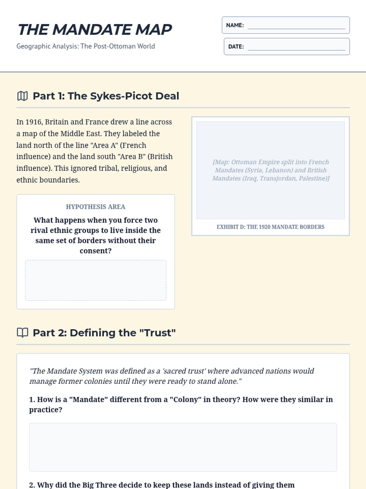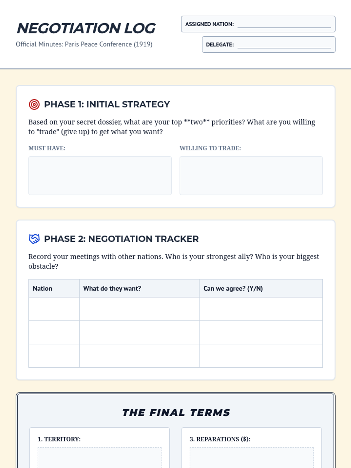 This sequence explores the end of WWI, the diplomatic tensions of the Paris Peace Conference, and the global restructuring that followed, focusing on whether the Treaty of Versailles successfully balanced peace and punishment.