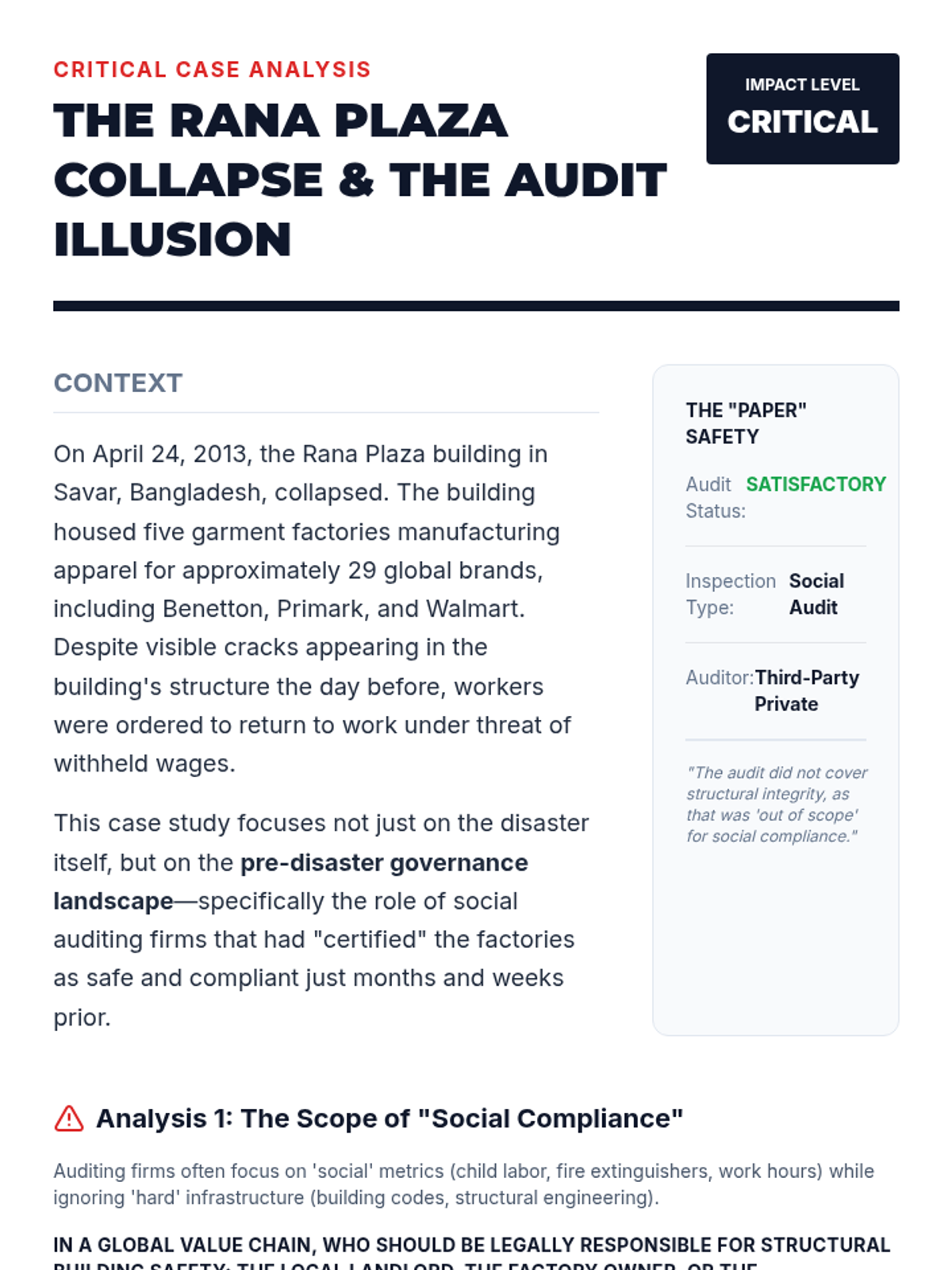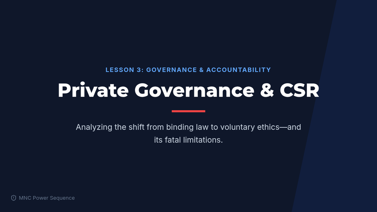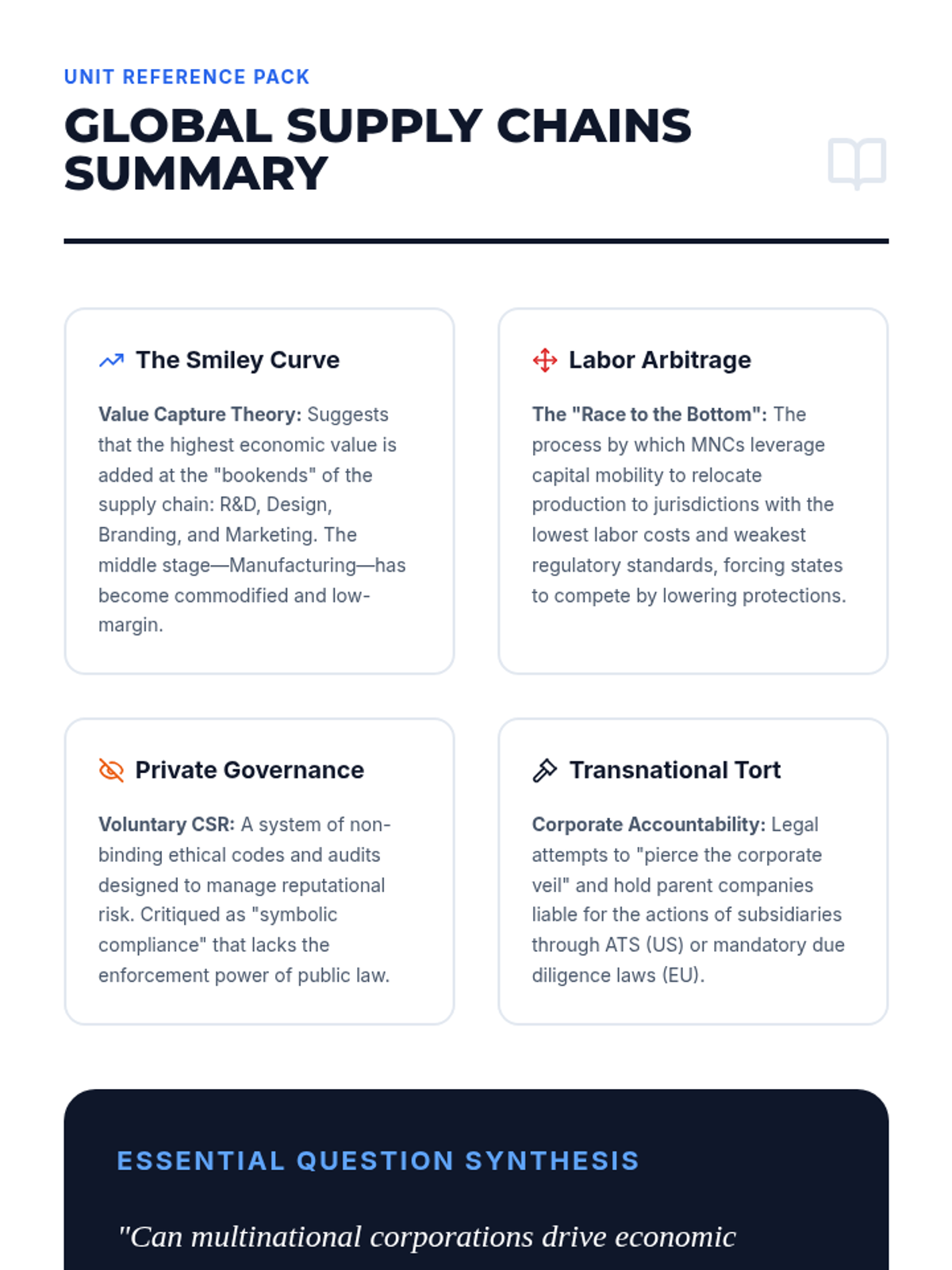 This graduate-level sequence explores the socioeconomic impacts of multinational corporations through global value chains, labor ethics, and legal accountability. Students analyze the tension between economic development and exploitation, culminating in the design of a binding ethical sourcing framework.
