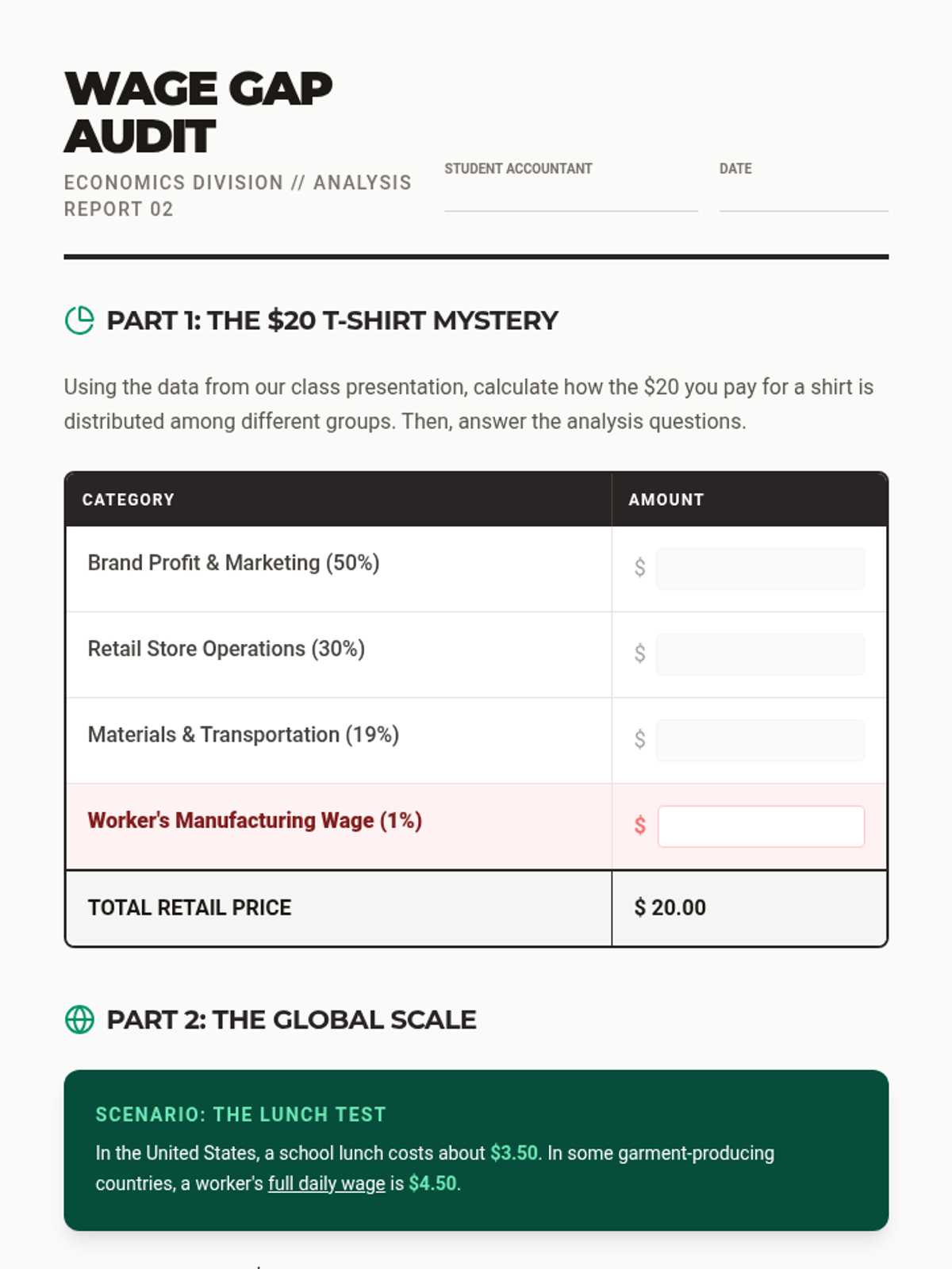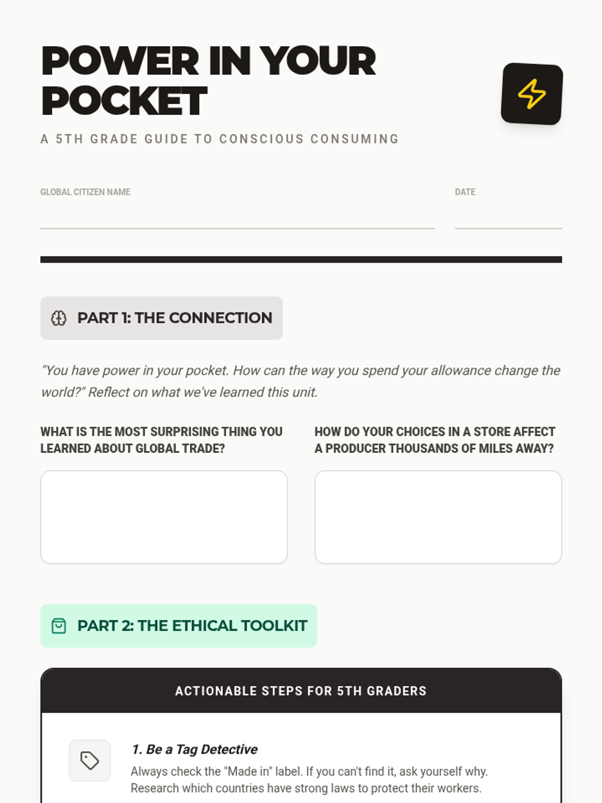 This sequence explores global trade and labor practices, tracing products from origin to consumer. Students analyze wage gaps, learn about producers' lives, understand Fair Trade, and develop conscious consumer habits to address global inequality.