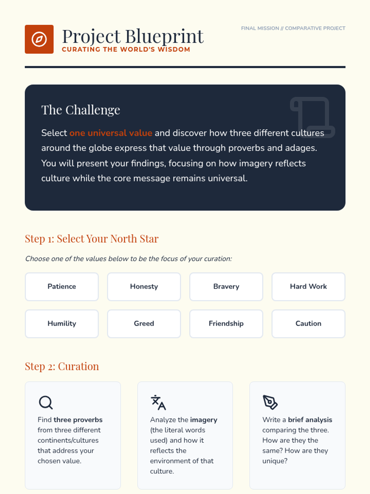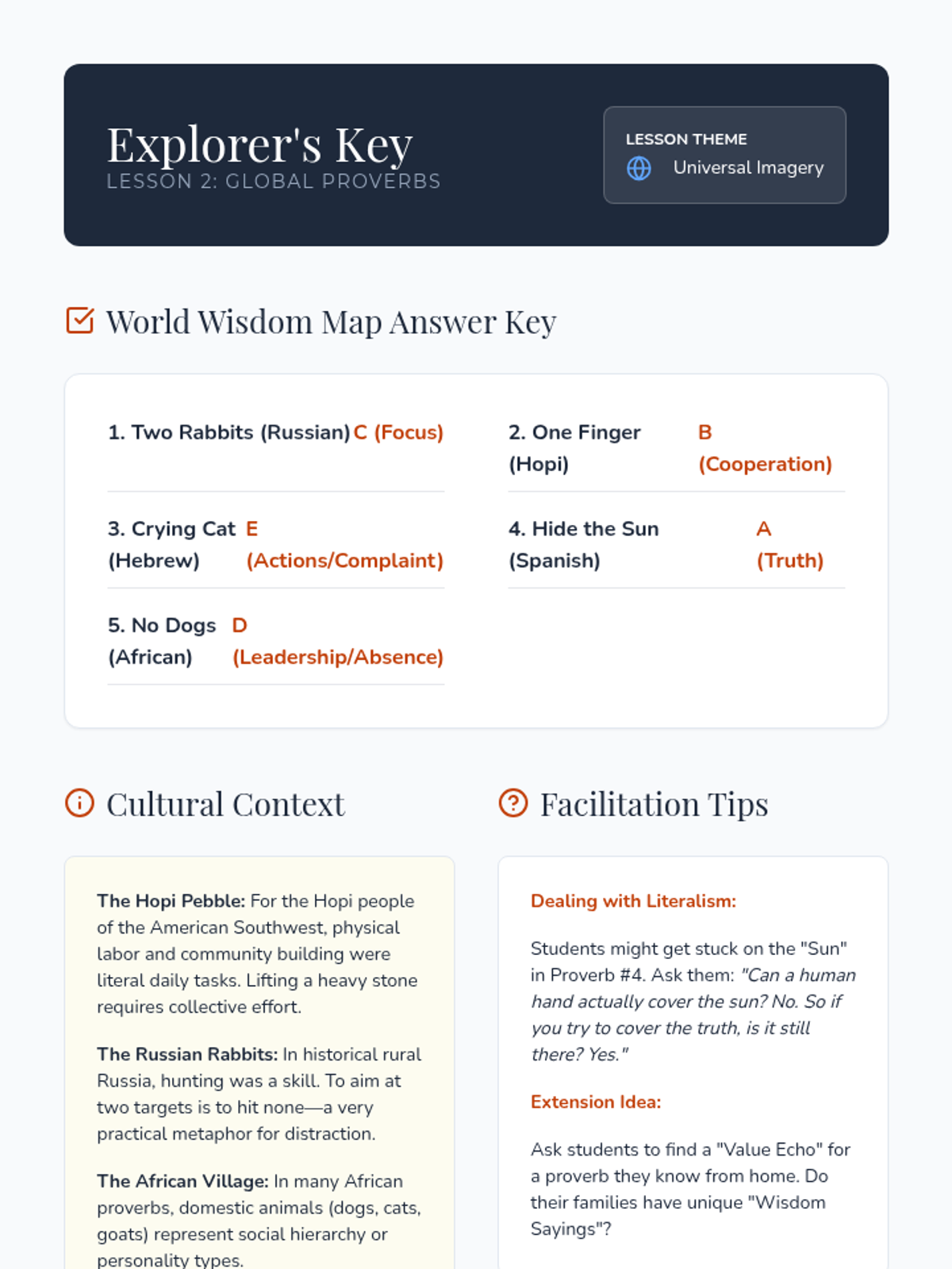An 8th-grade ELA unit exploring idioms, adages, and proverbs through a global lens. Students compare American sayings with international wisdom to identify universal themes and the influence of culture on language.