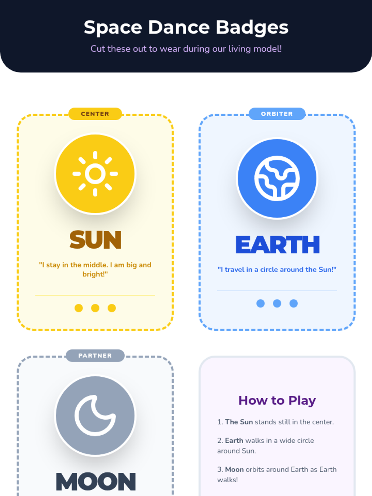 A comprehensive K-5 STEM curriculum covering Texas TEKS for Earth and Space Science. Each grade level features two hands-on engineering challenges, interactive slide decks, and STAAR-aligned assessment tools focusing on seasons, lunar patterns, solar system models, and Earth's rotation.