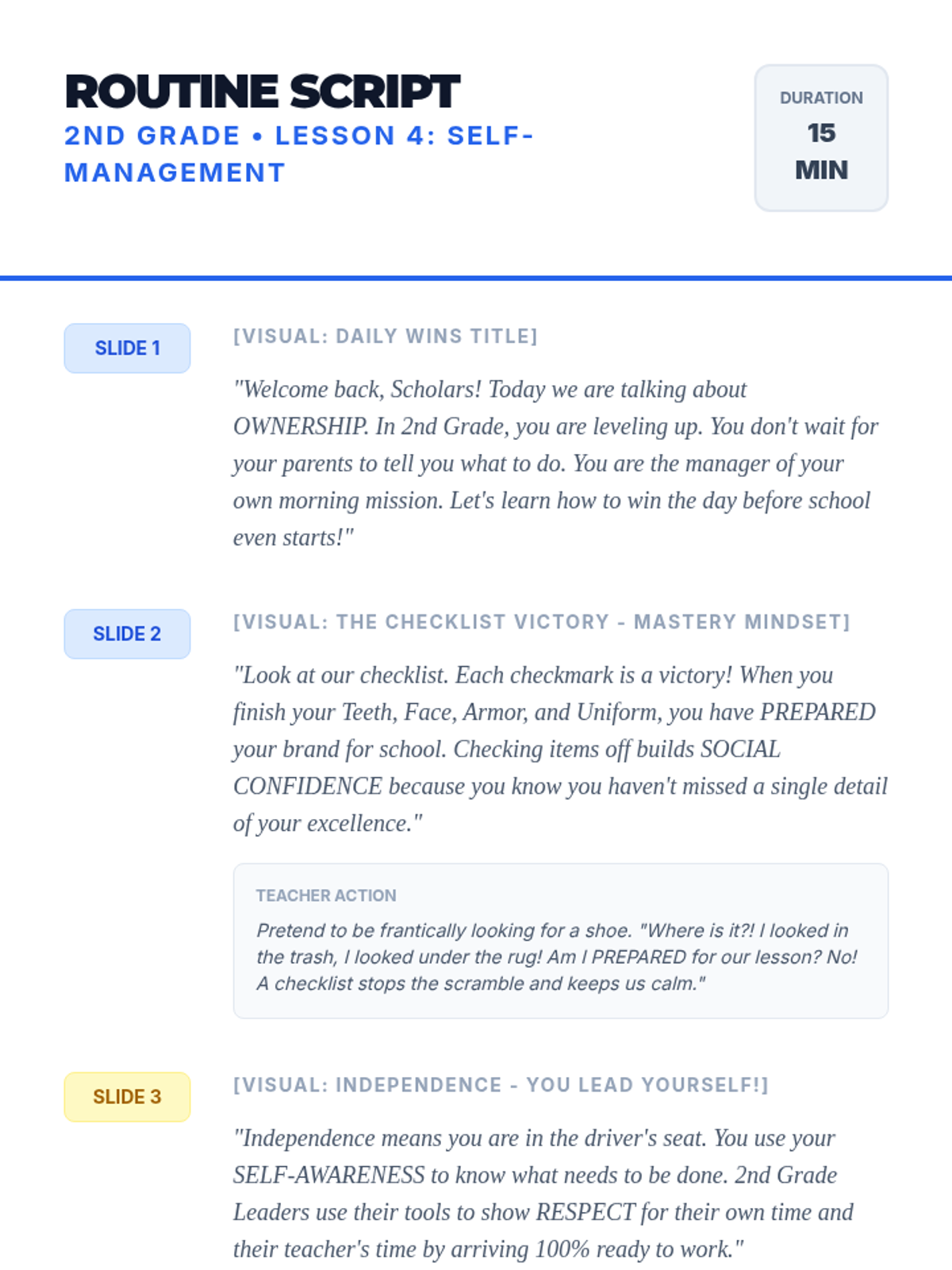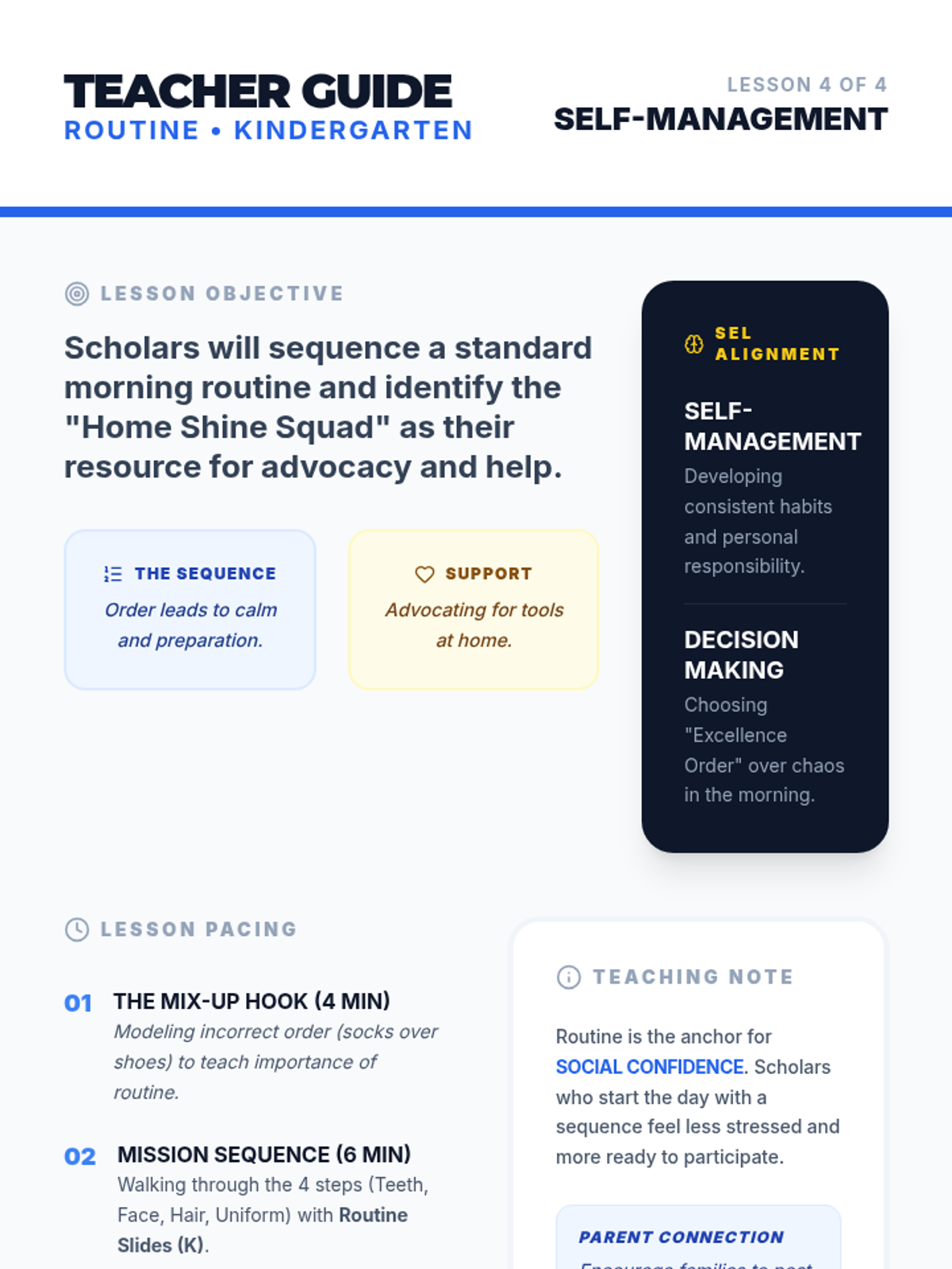A sequence designed for first graders to master essential school behaviors, focusing on classroom rules and the art of following directions through engaging ranger-themed activities and scenarios.