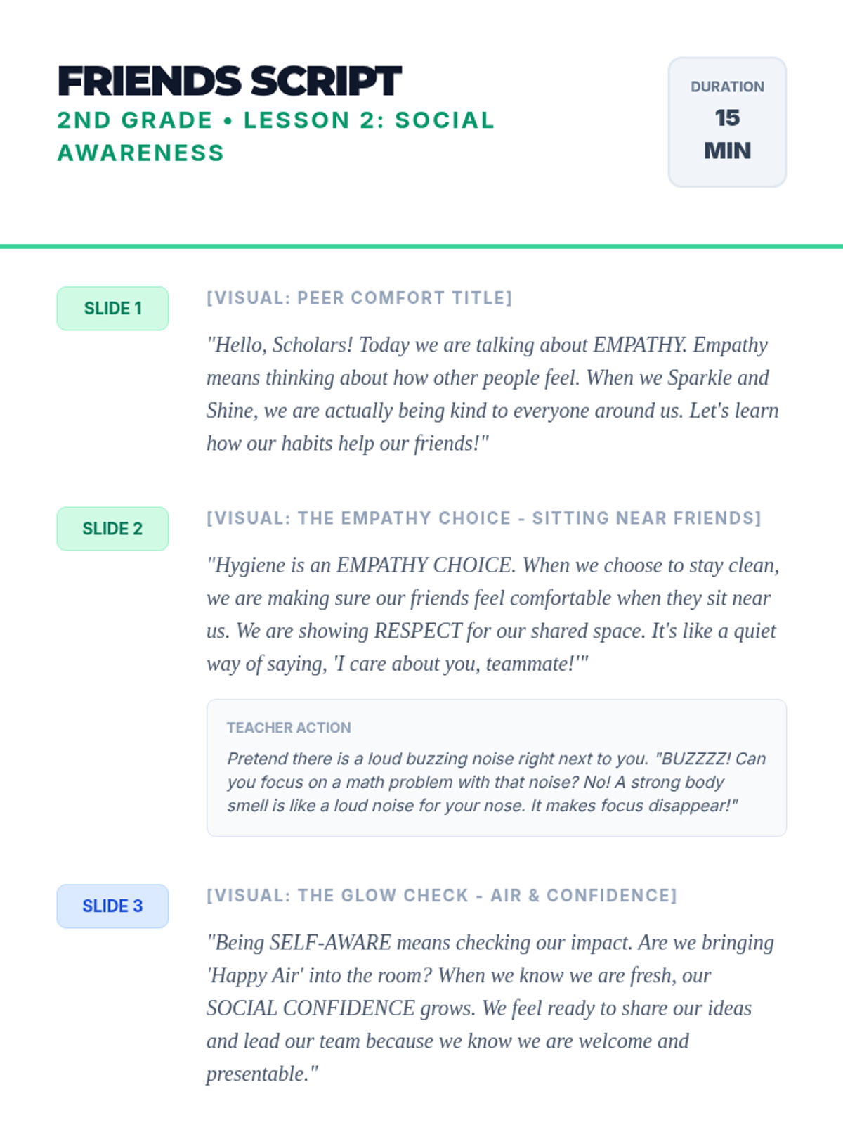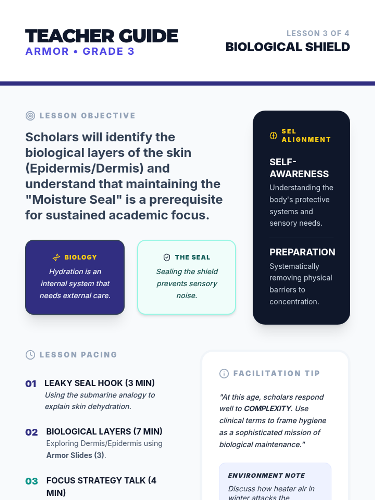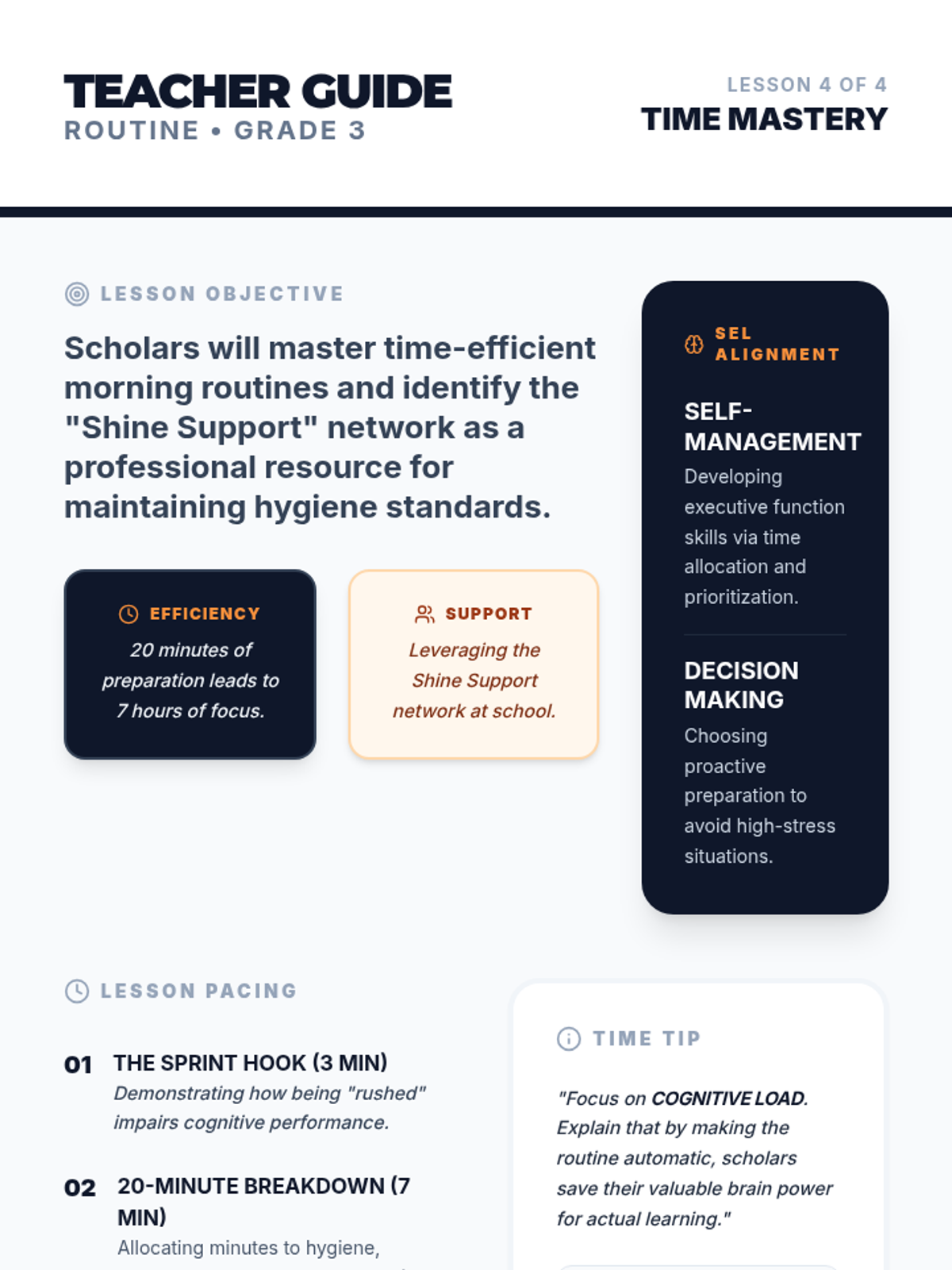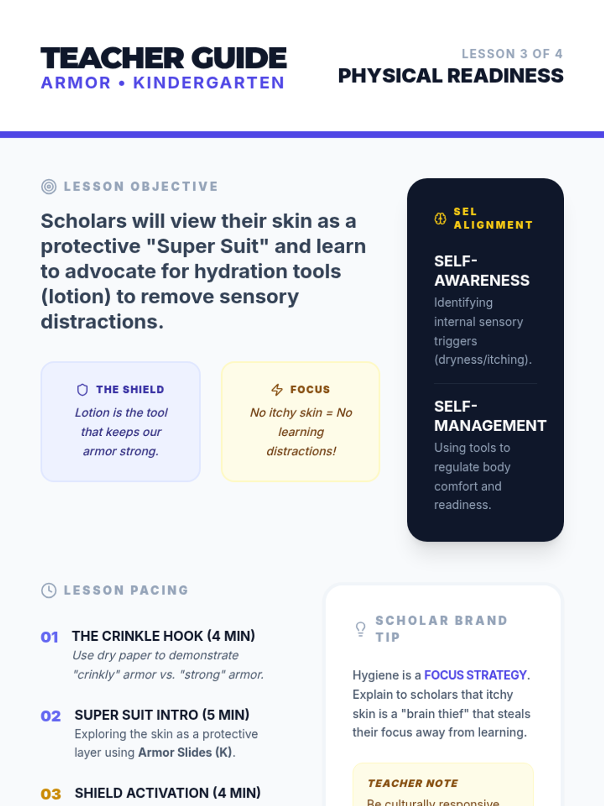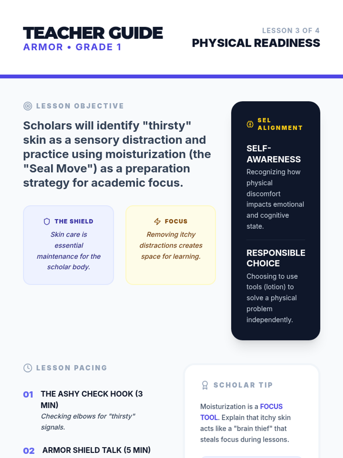 A comprehensive SEL-integrated hygiene curriculum for elementary scholars (K-4), focusing on self-awareness, social impact, and personal responsibility through the lens of a 'Glow Up'.