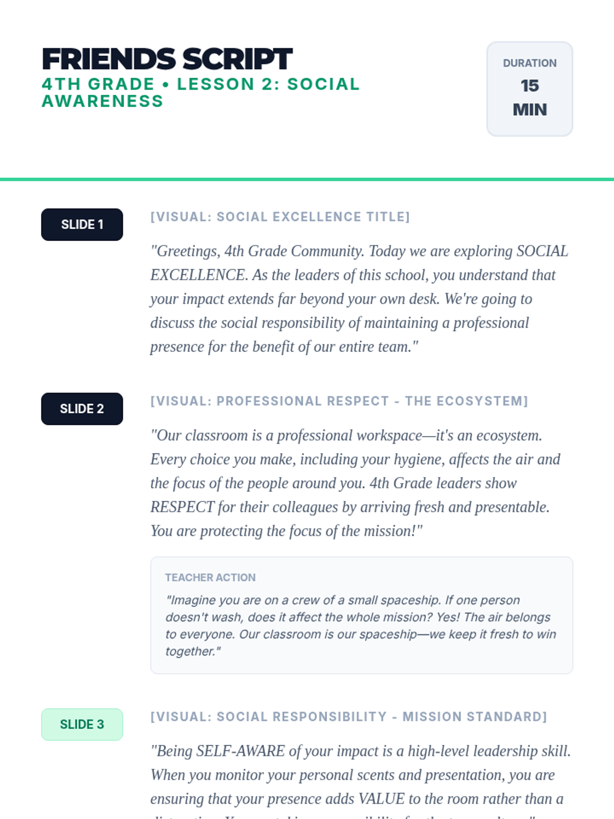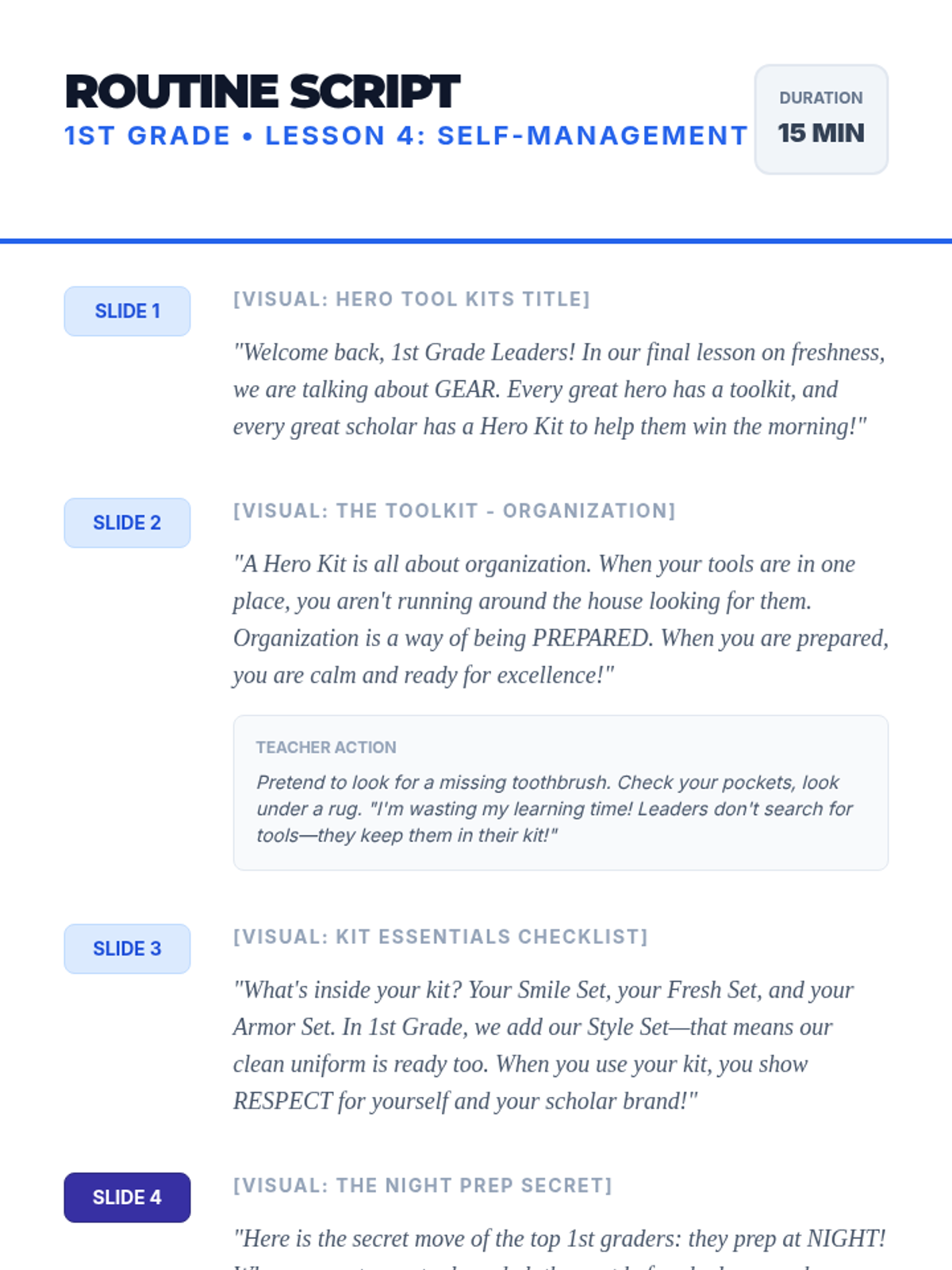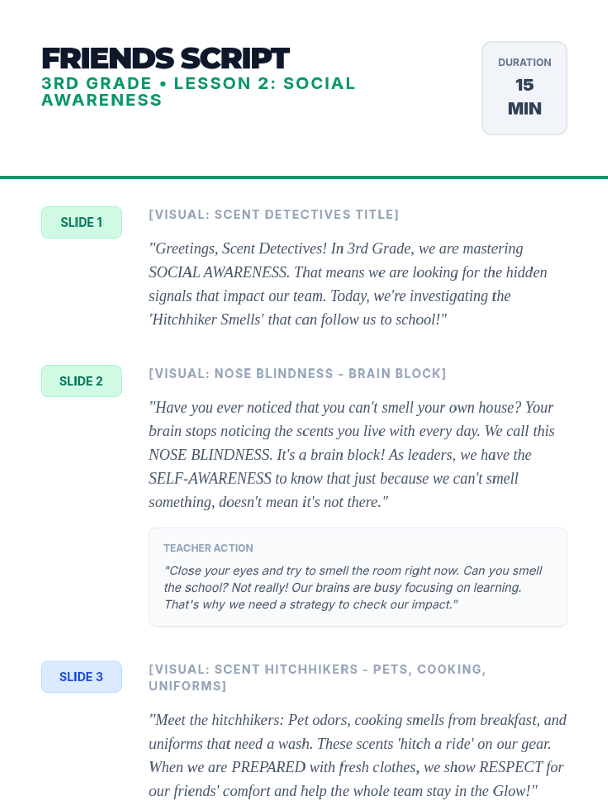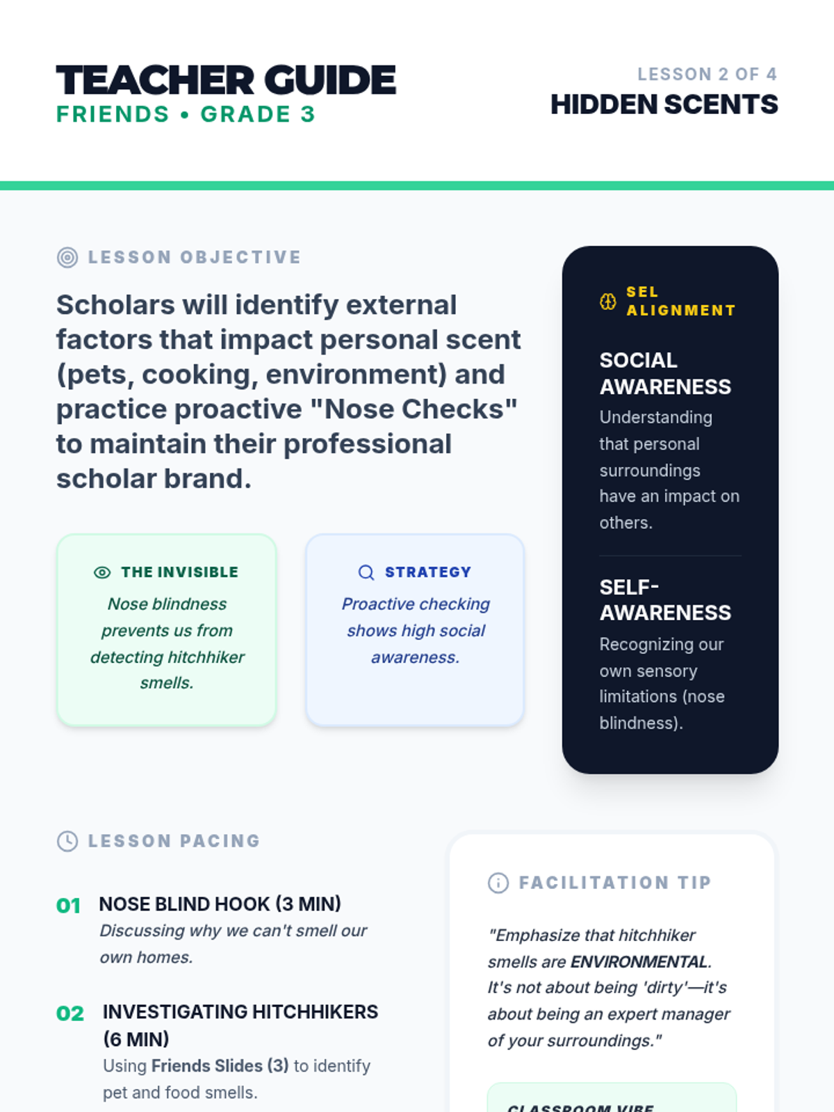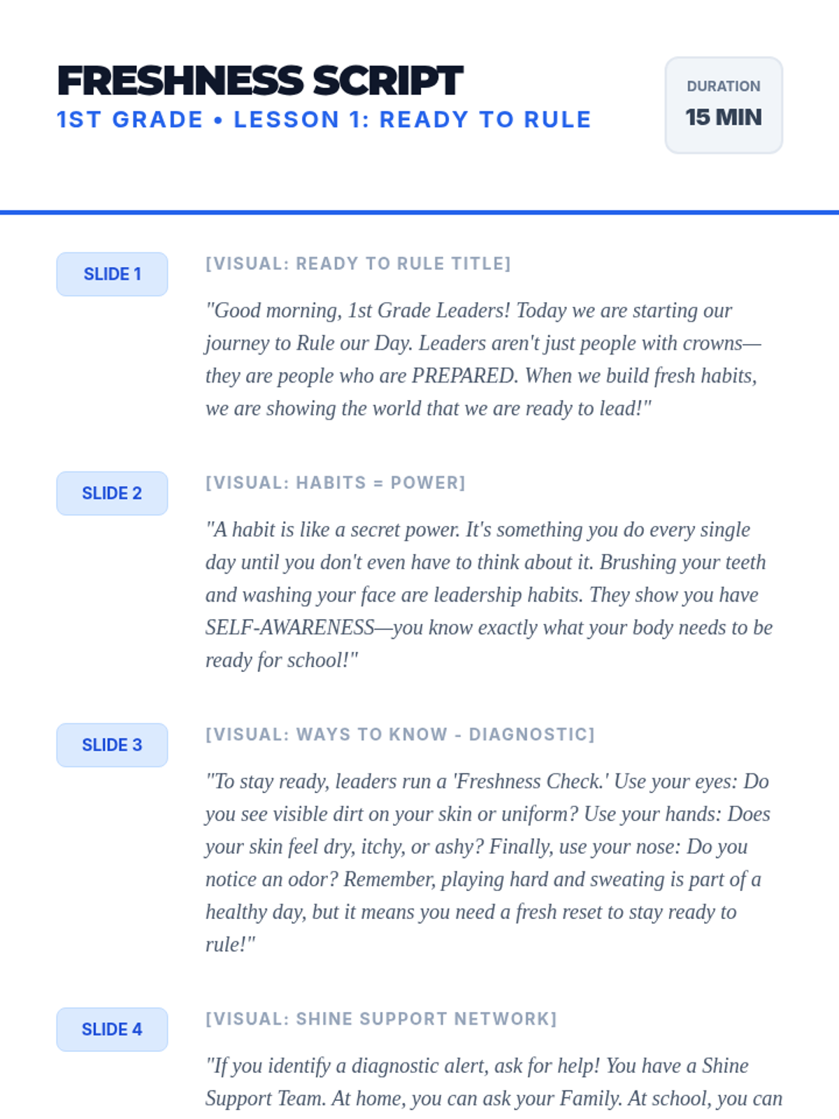 A comprehensive SEL-integrated hygiene curriculum for elementary scholars (K-4), focusing on self-awareness, social impact, and personal responsibility through the lens of a 'Glow Up'.