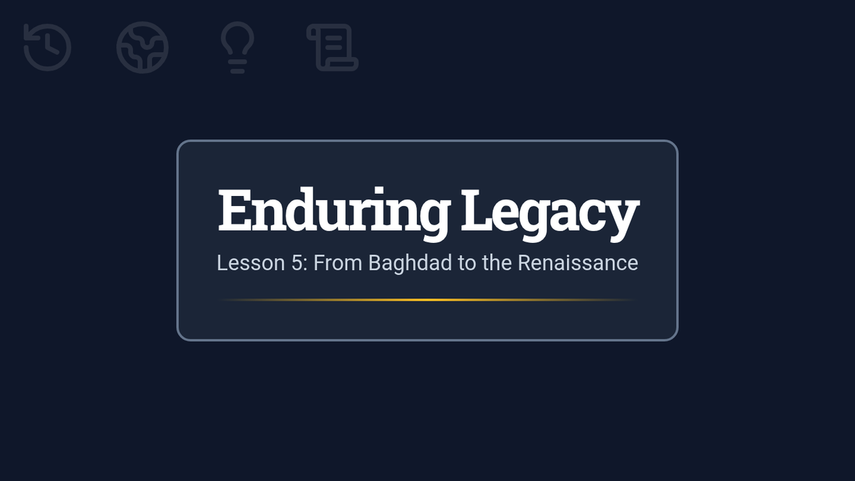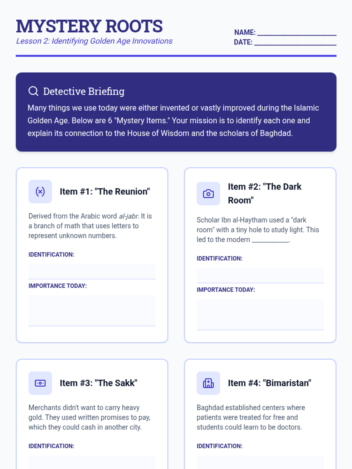 Students investigate the scientific, mathematical, and cultural advancements of the Islamic Caliphates during the Golden Age. They explore how Baghdad served as a center of learning and how these innovations influenced the world through trade and translation.