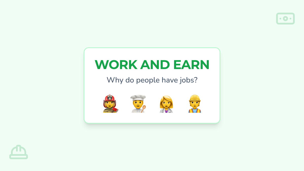 A comprehensive introduction for Kindergarteners to the basics of economy, covering the difference between goods and services, how money is earned through work, and how it is used in a marketplace.