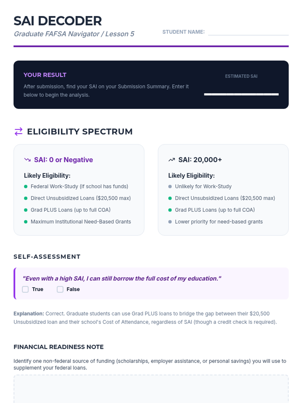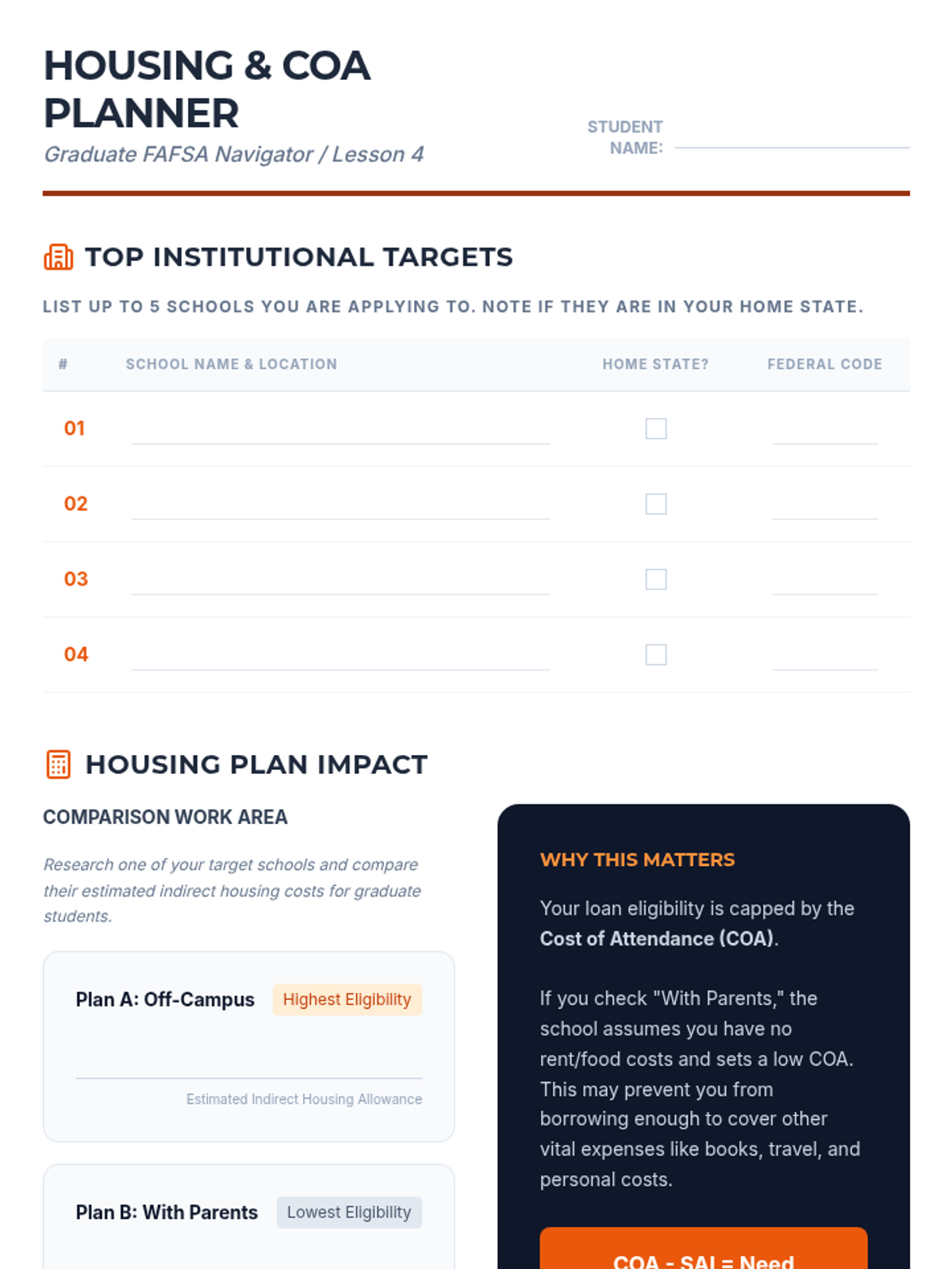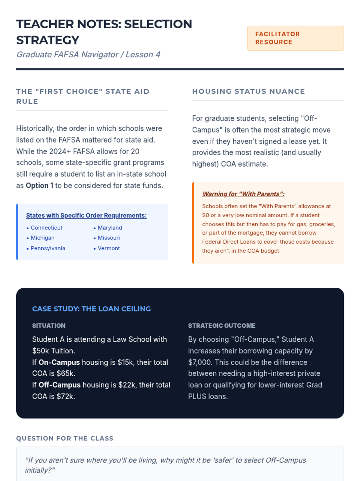A comprehensive workshop-style sequence for graduate students navigating the FAFSA as independent applicants, focusing on technical requirements, asset reporting, and strategic planning.