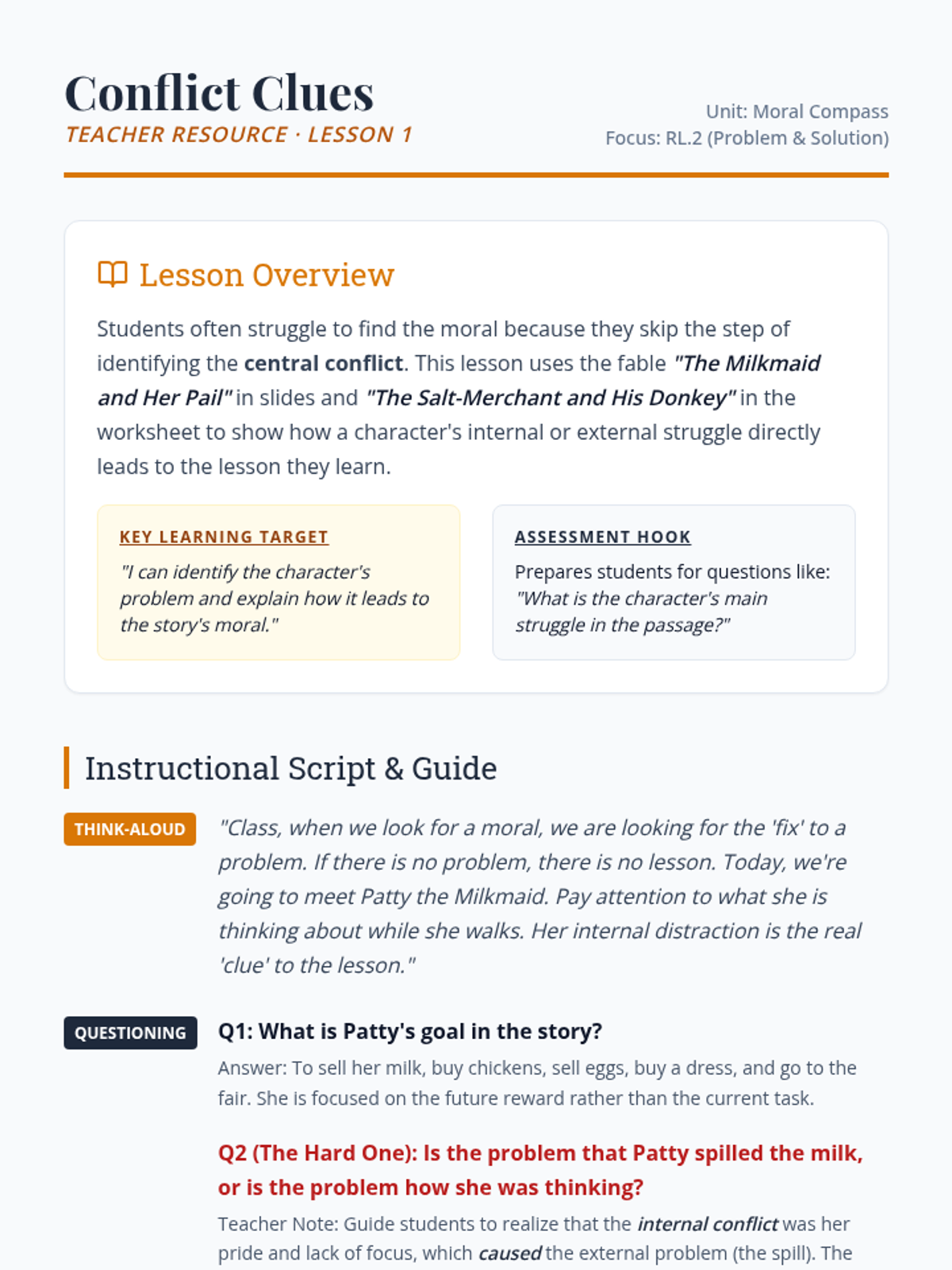 A comprehensive remediation unit designed to master RL.2 through fables and folktales. This sequence targets high-rigor question types, including Part A/Part B evidence questions, character motivation analysis, and proverb-based moral identification.