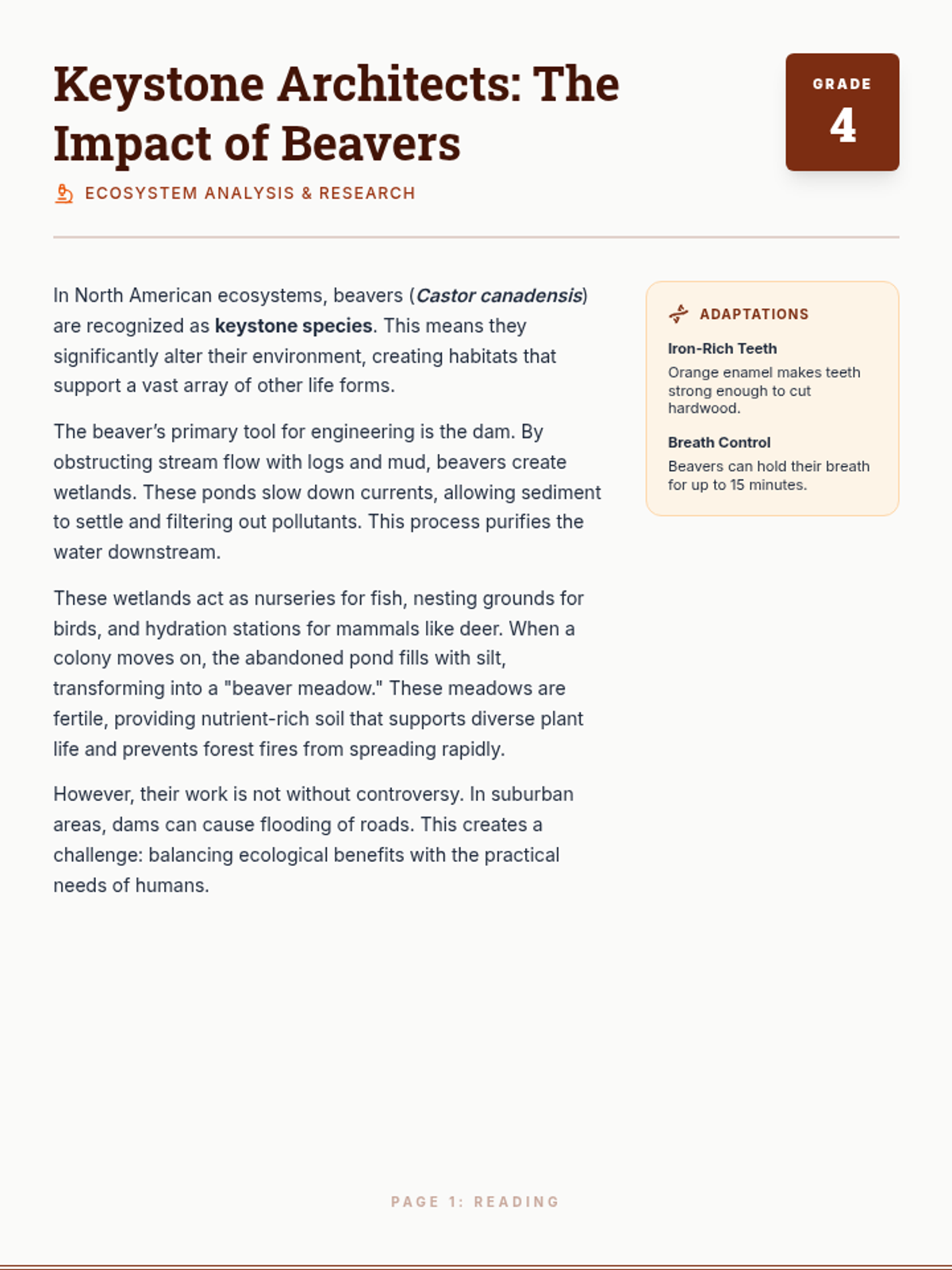 A multi-grade literacy unit exploring the lives of beavers through non-fiction reading and differentiated assignments for kindergarten, second, and fourth grade students.