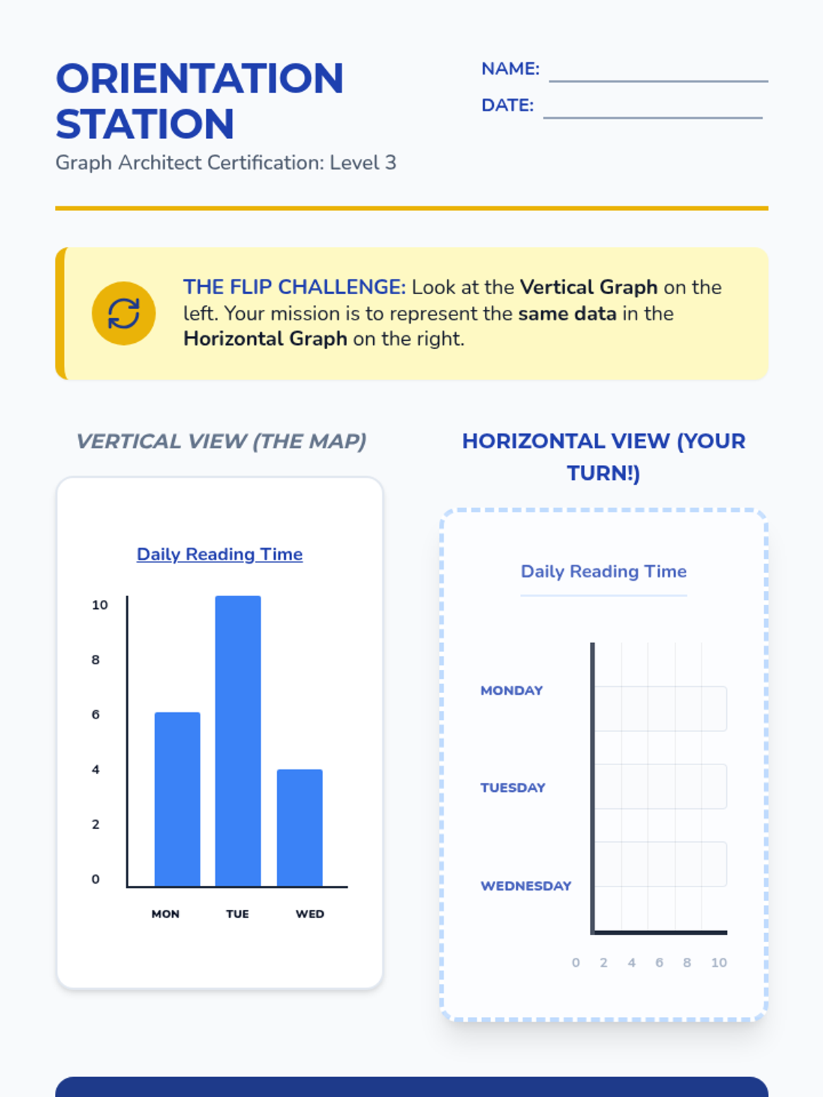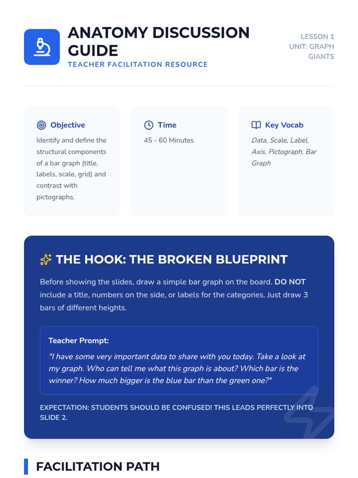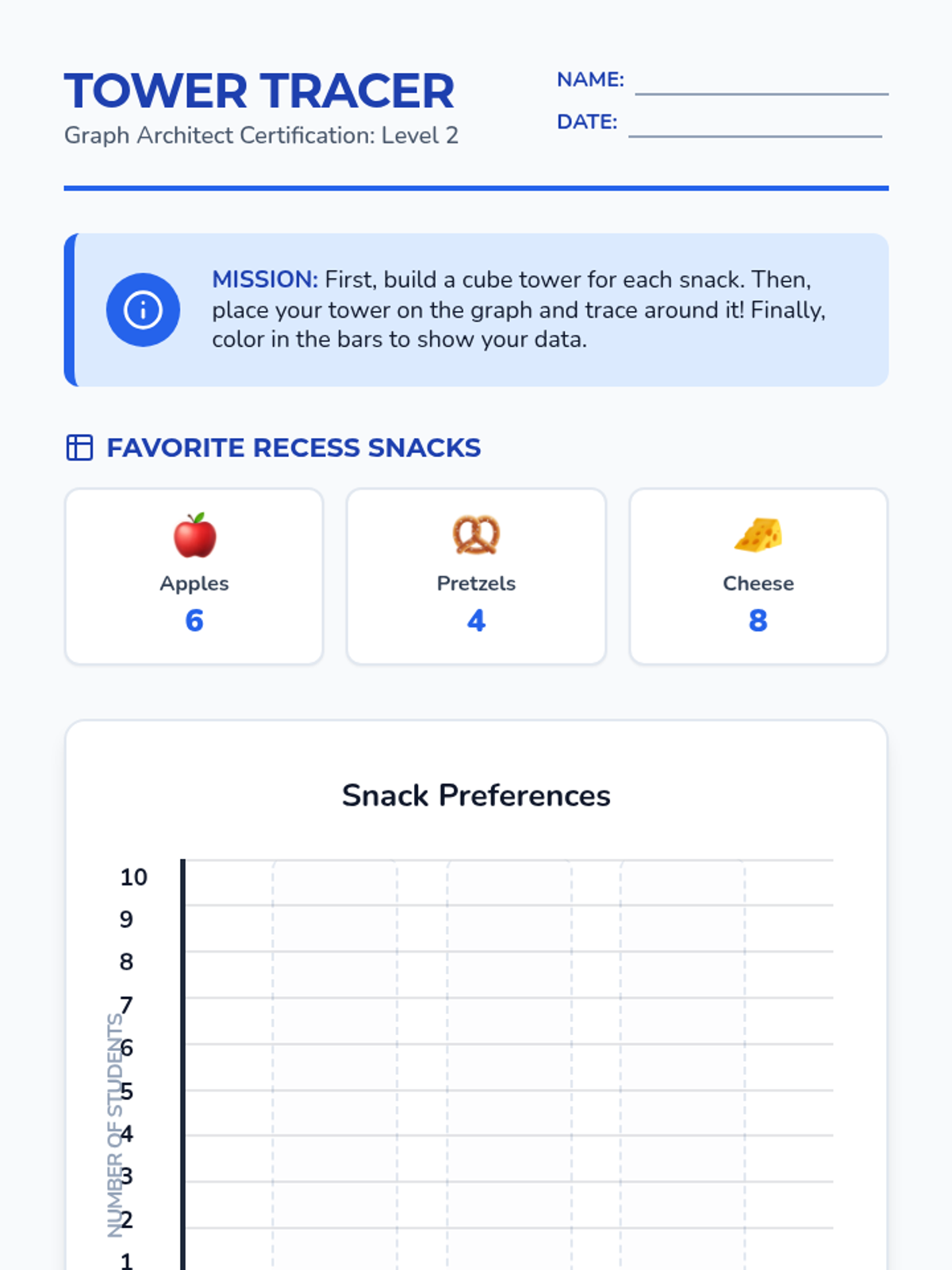 A project-based sequence for 2nd graders to master bar graphs. Students transition from pictographs to abstract data representations, culminating in a 'Classroom Inventory' project where they collect real data and present findings through vertical and horizontal bar graphs.