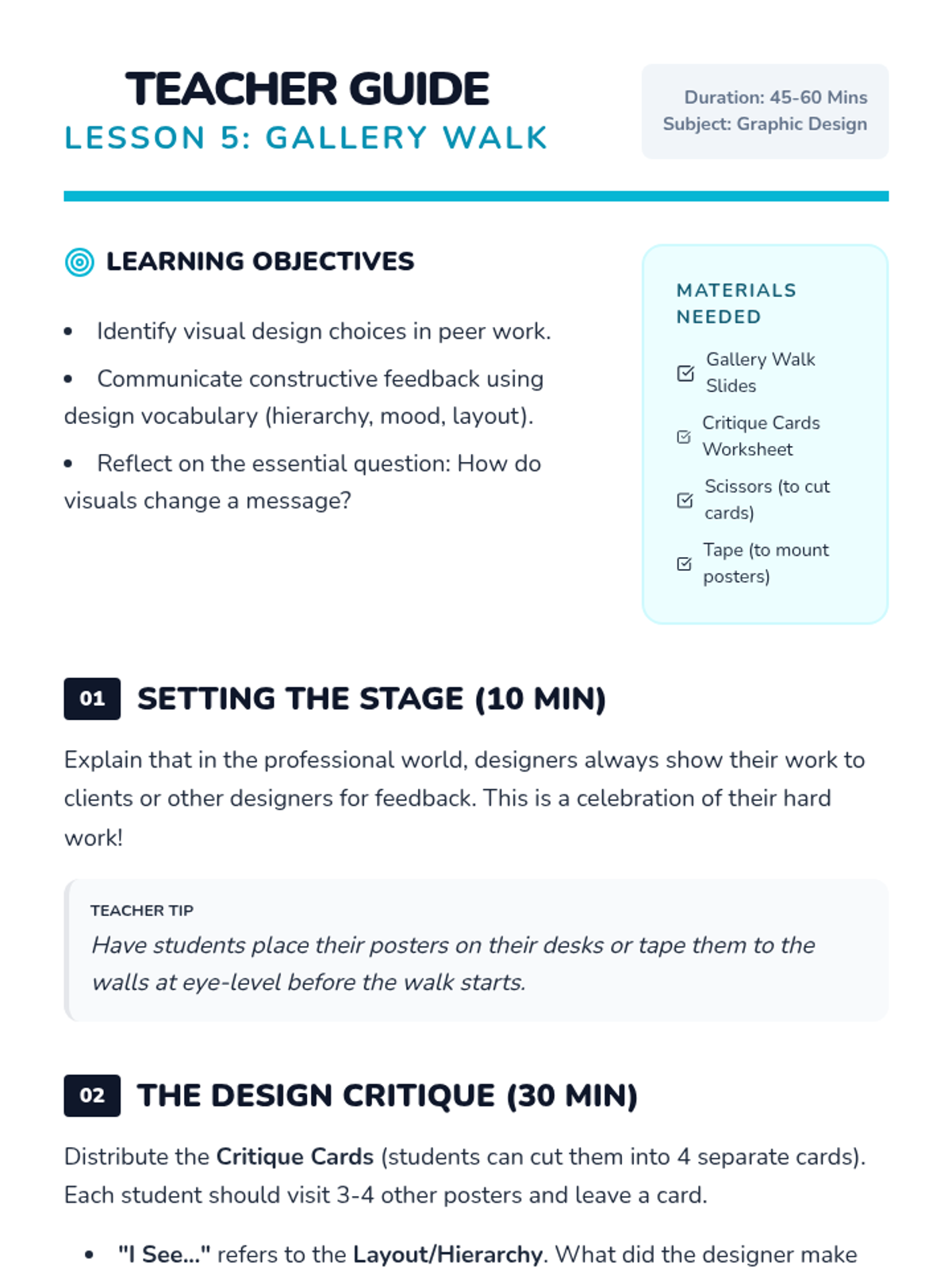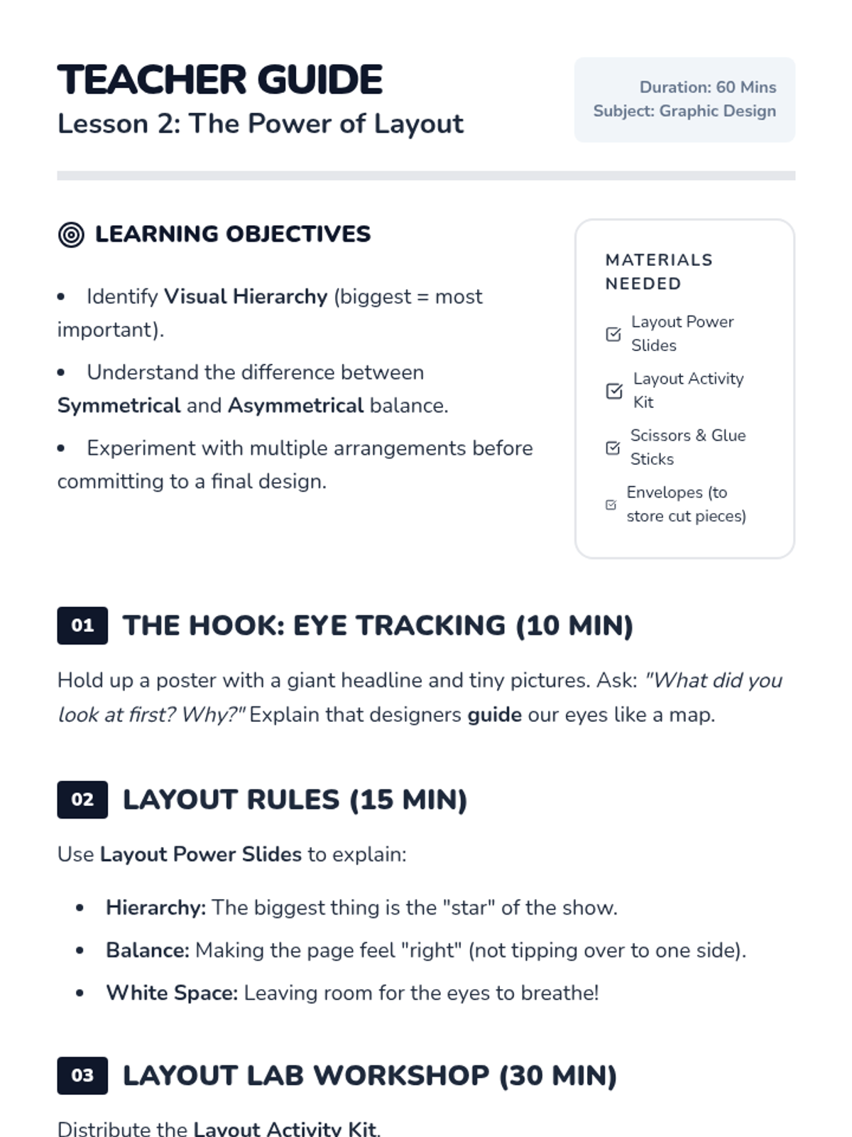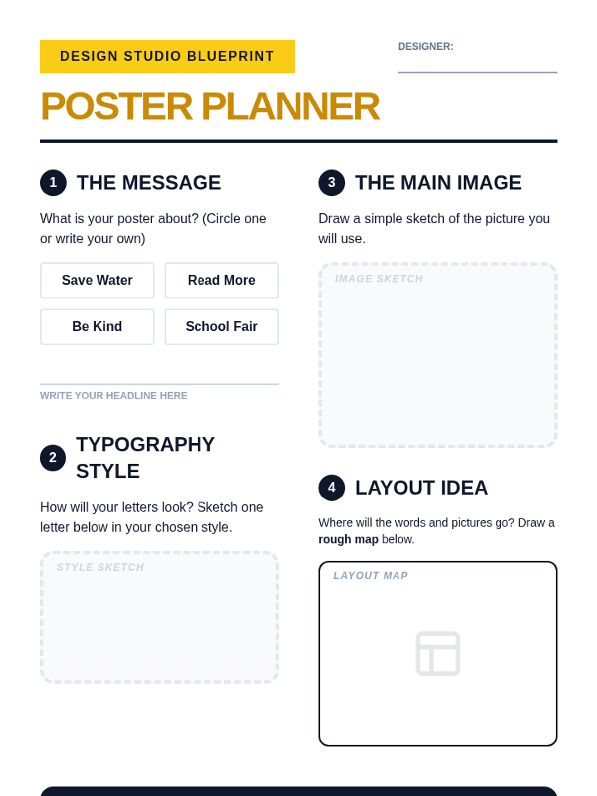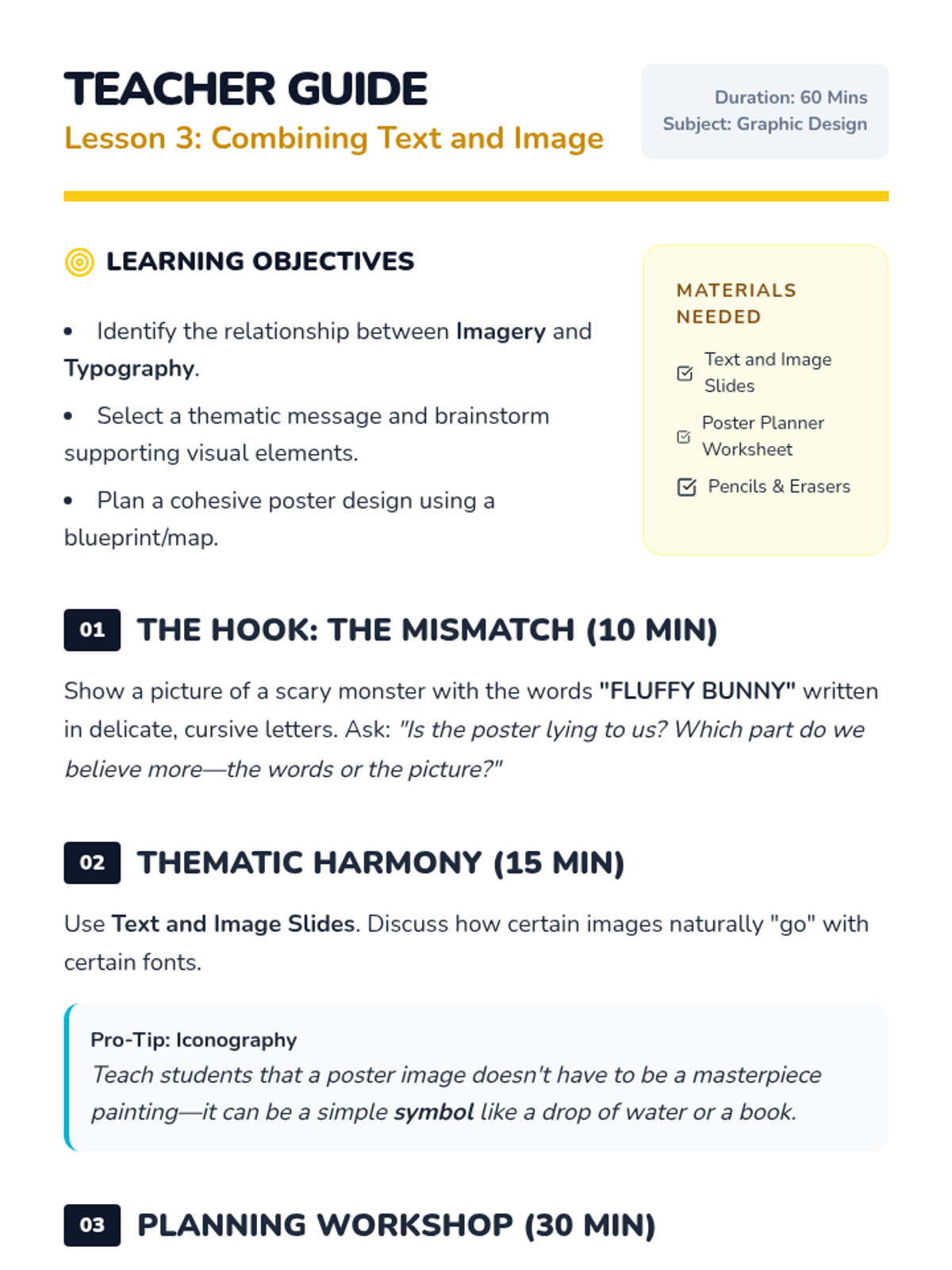 This sequence introduces 2nd-grade students to graphic design through typography and layout. Students learn how font styles convey emotion and how the arrangement of visual elements creates hierarchy and meaning, culminating in a handmade poster project.