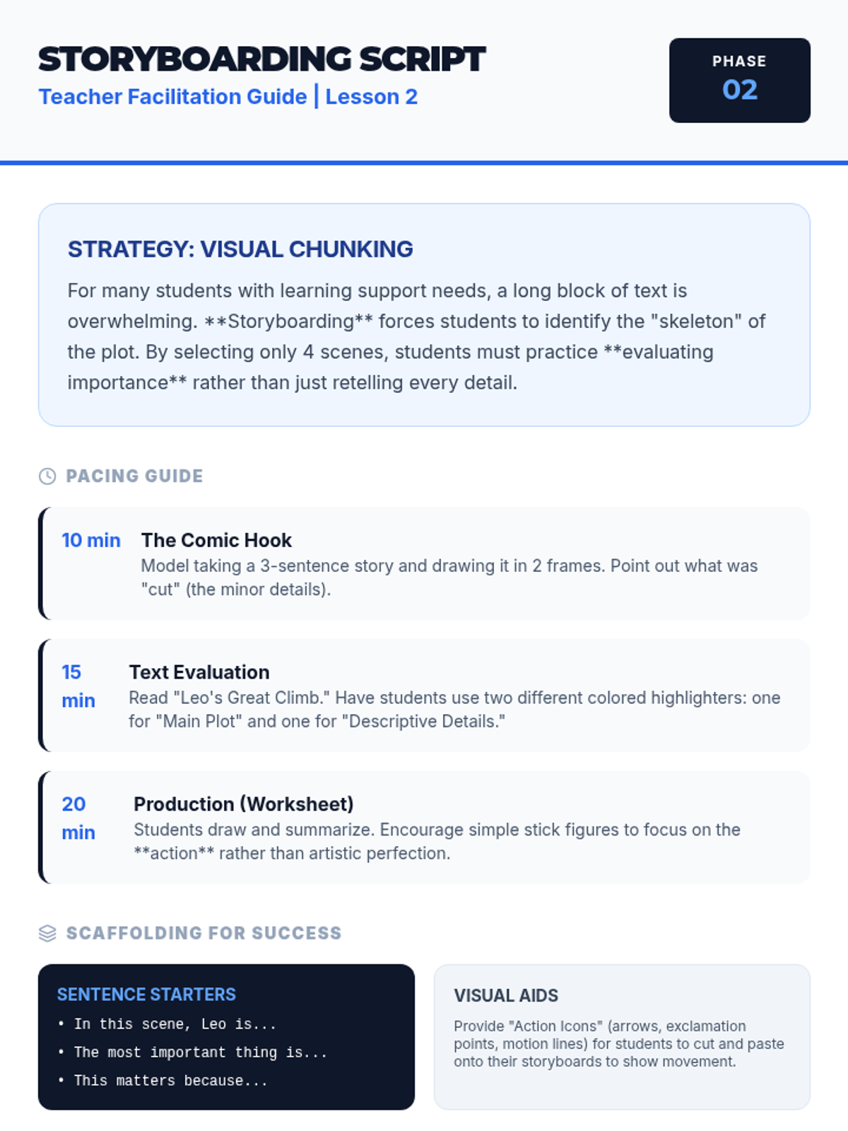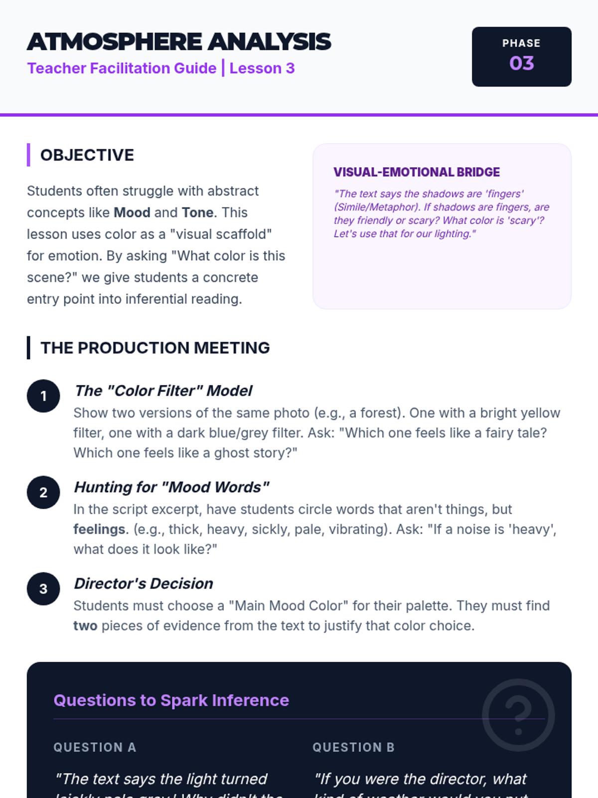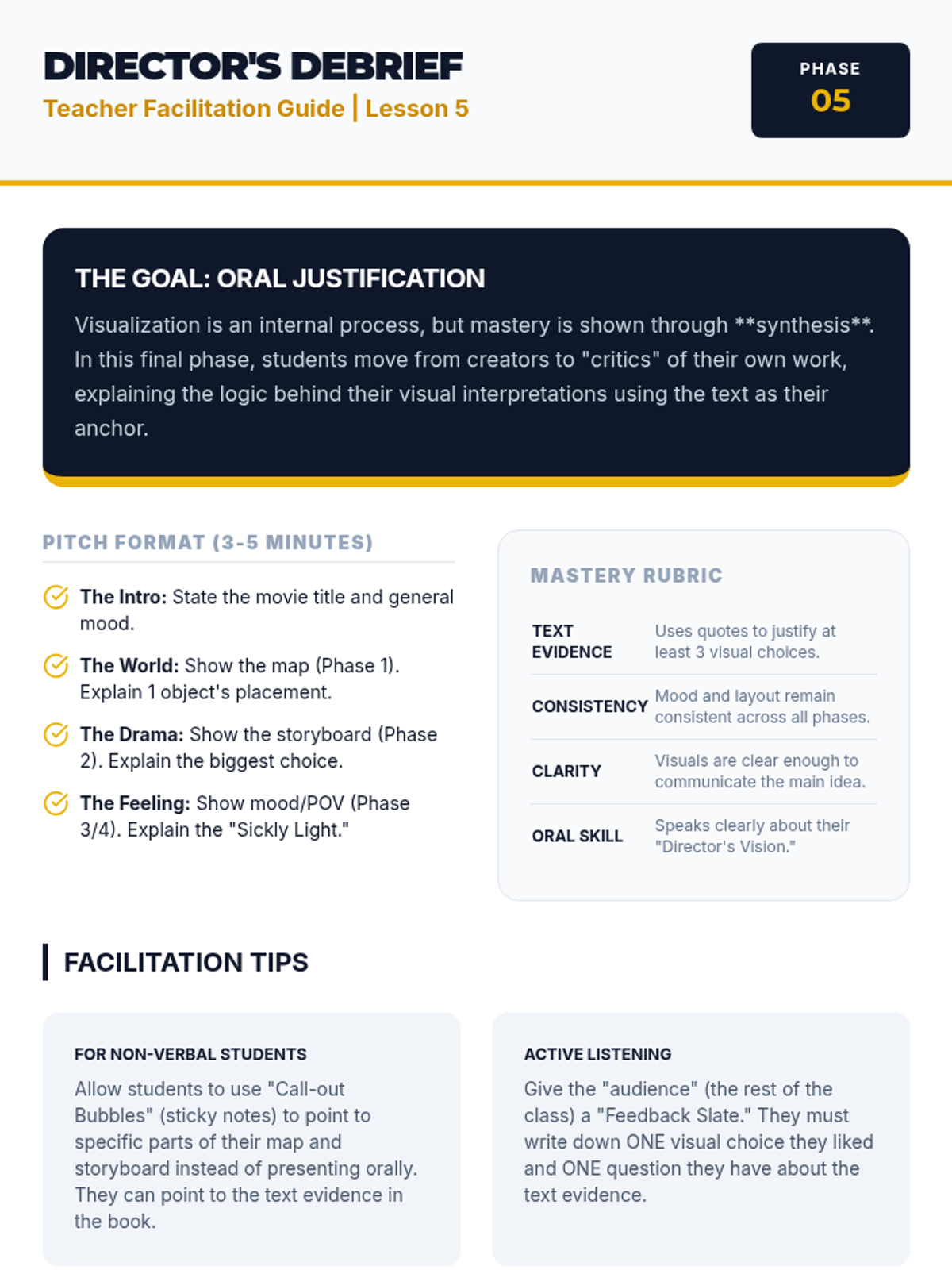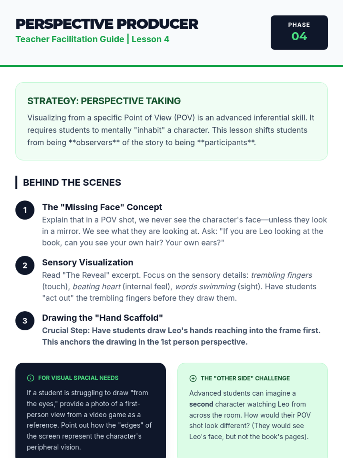 A project-based sequence for 5th-grade academic support focused on externalizing visualization through mapping, storyboarding, and mood analysis to deepen narrative comprehension.