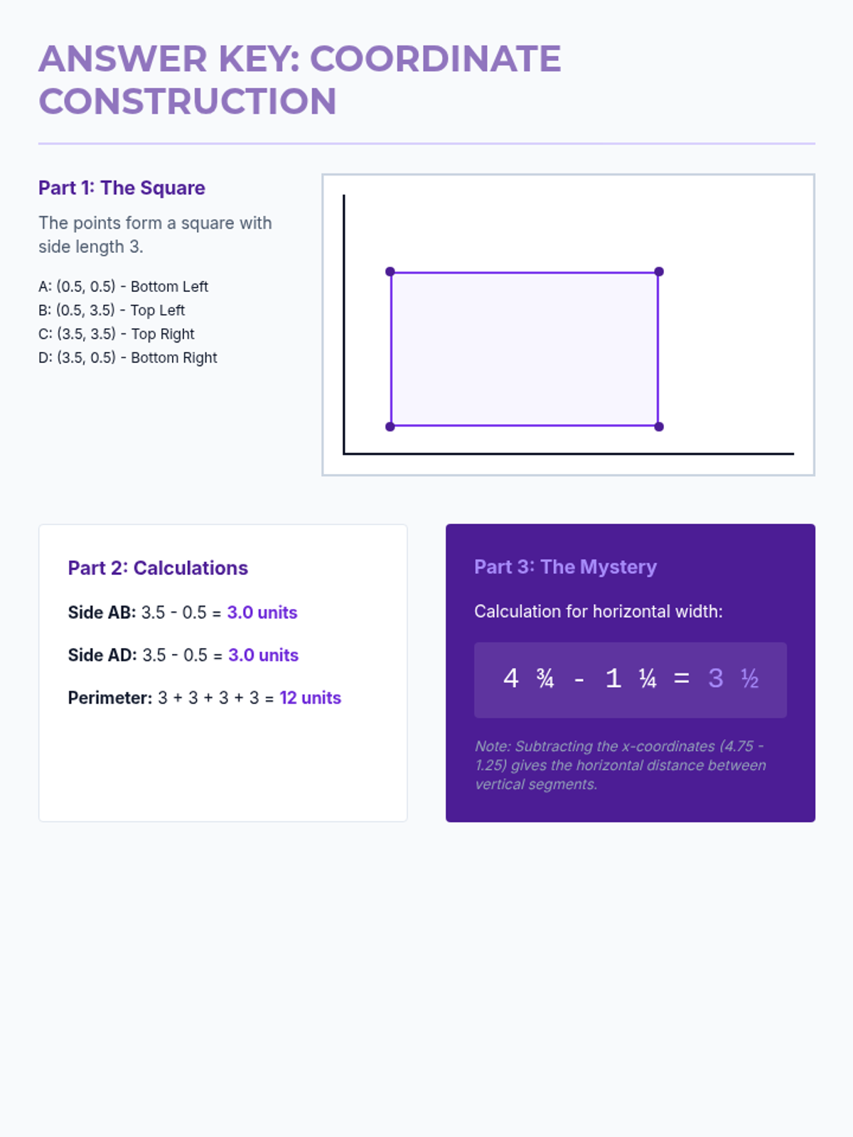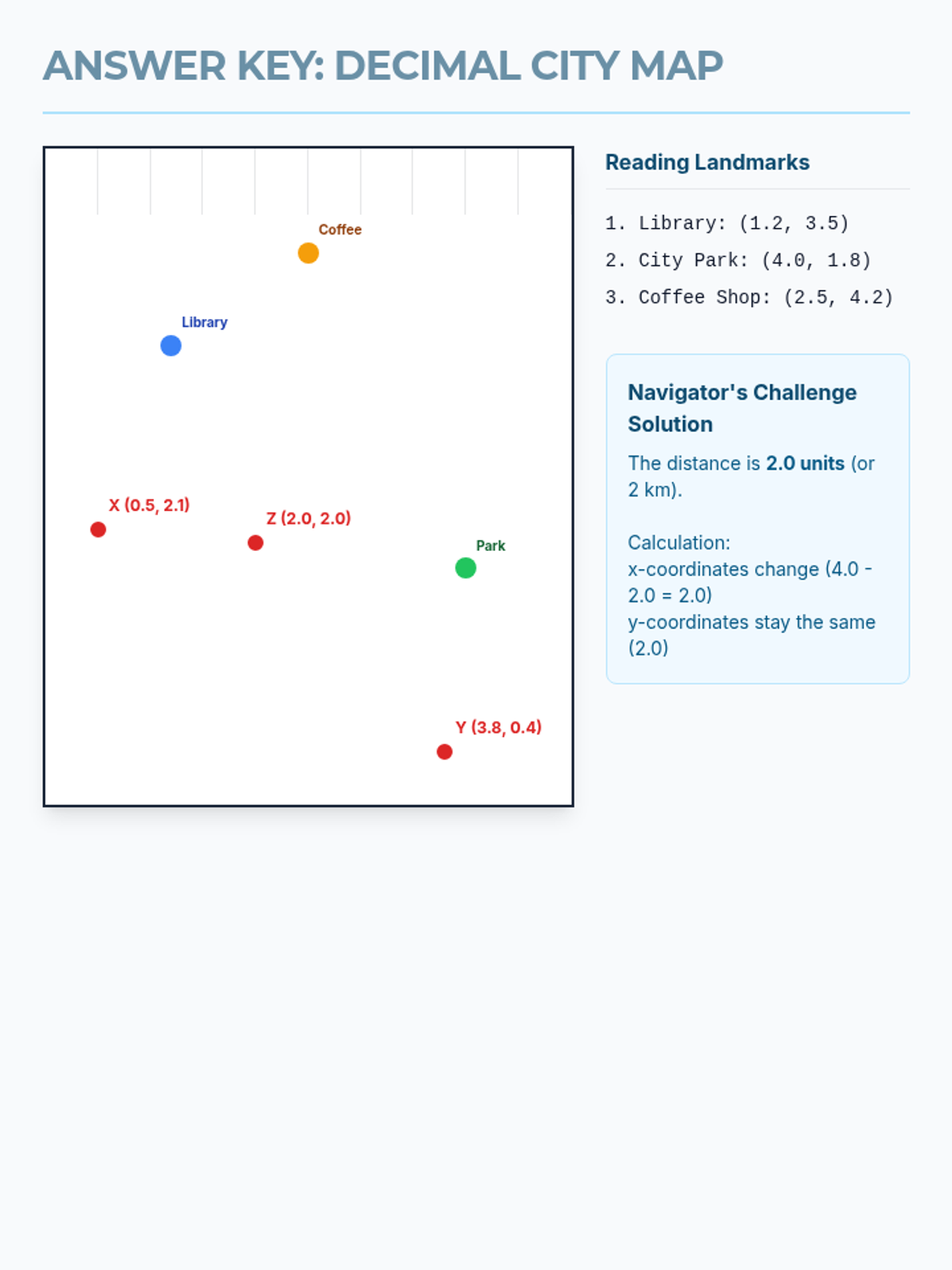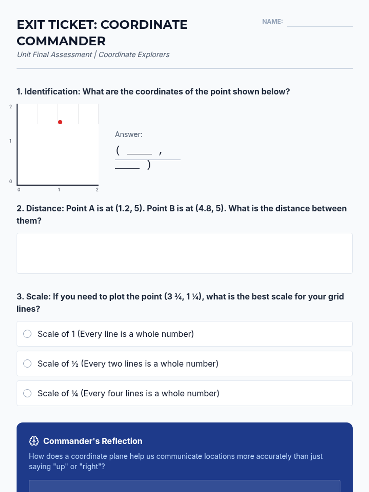 This sequence introduces 5th-grade students to the first quadrant of the coordinate plane, specifically focusing on plotting and reading rational numbers (fractions and decimals). Students will progress from building the axes to using coordinates for navigation, geometric analysis, and strategic gaming.