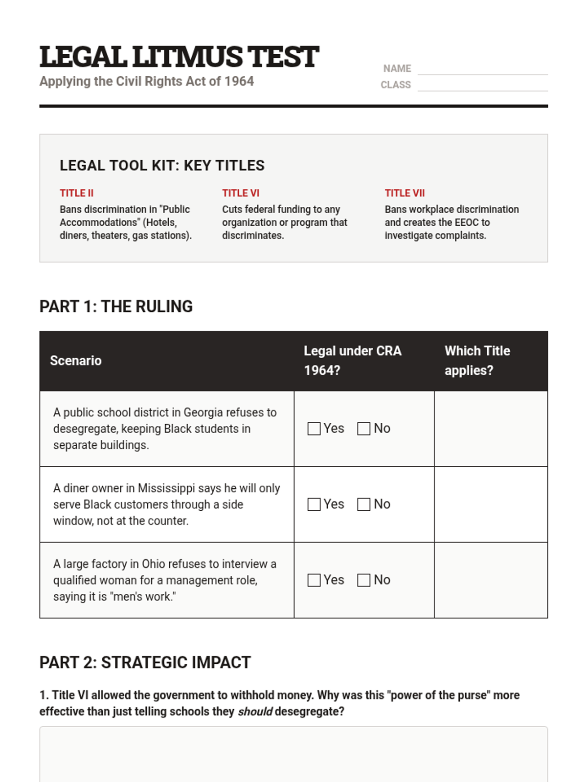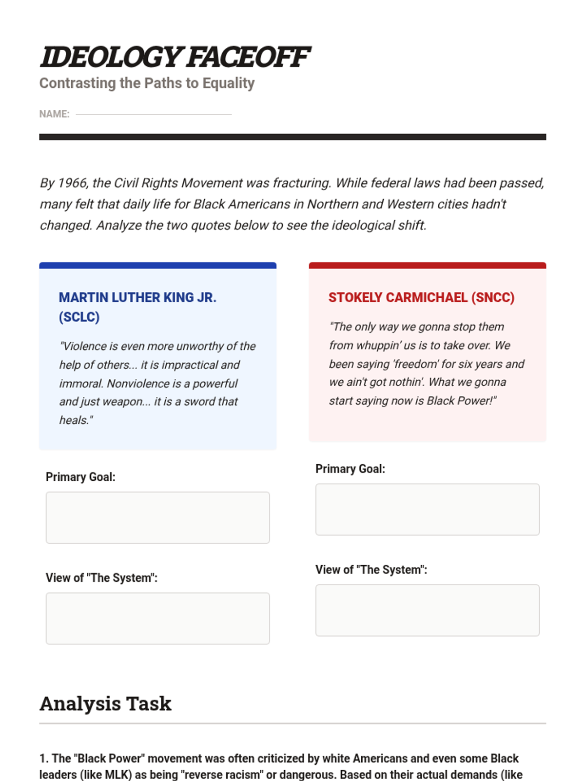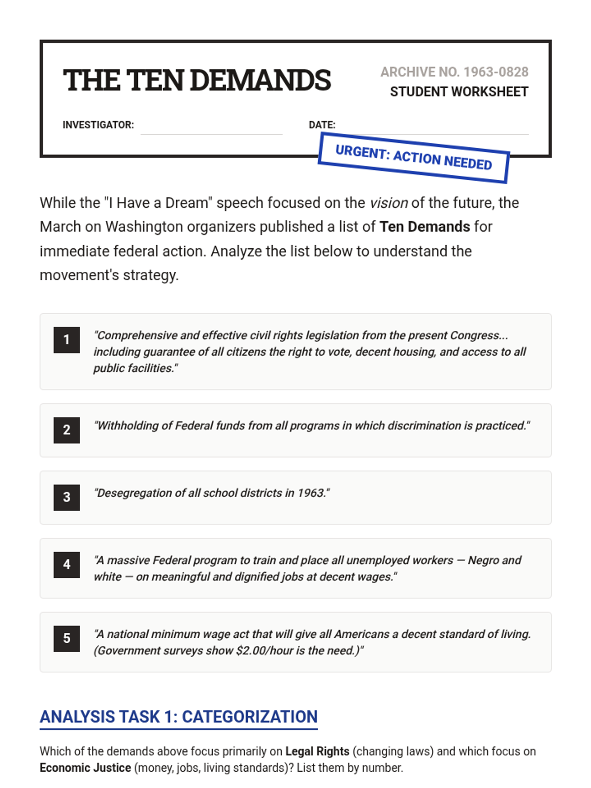 This sequence explores the strategic and legislative milestones of the Civil Rights Movement during the 1960s. Students analyze how grassroots activism in Birmingham, Washington D.C., and Selma directly influenced federal policy, culminating in the Civil Rights Act of 1964 and the Voting Rights Act of 1965, before examining the ideological shifts toward Black Power.