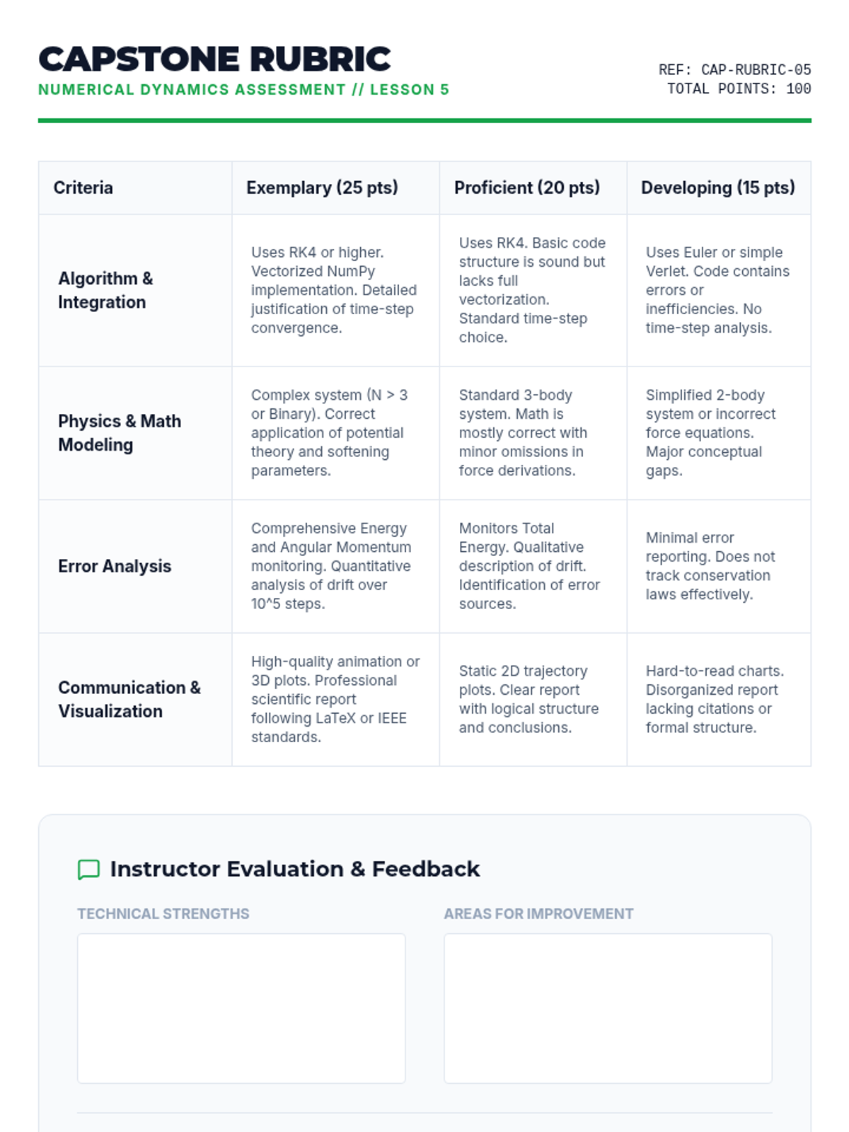 A rigorous undergraduate sequence exploring the mathematical and physical principles of celestial motion, from Keplerian derivations to computational N-body simulations and orbital mission planning.