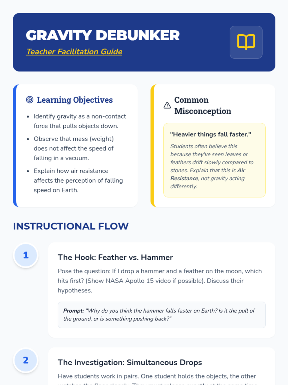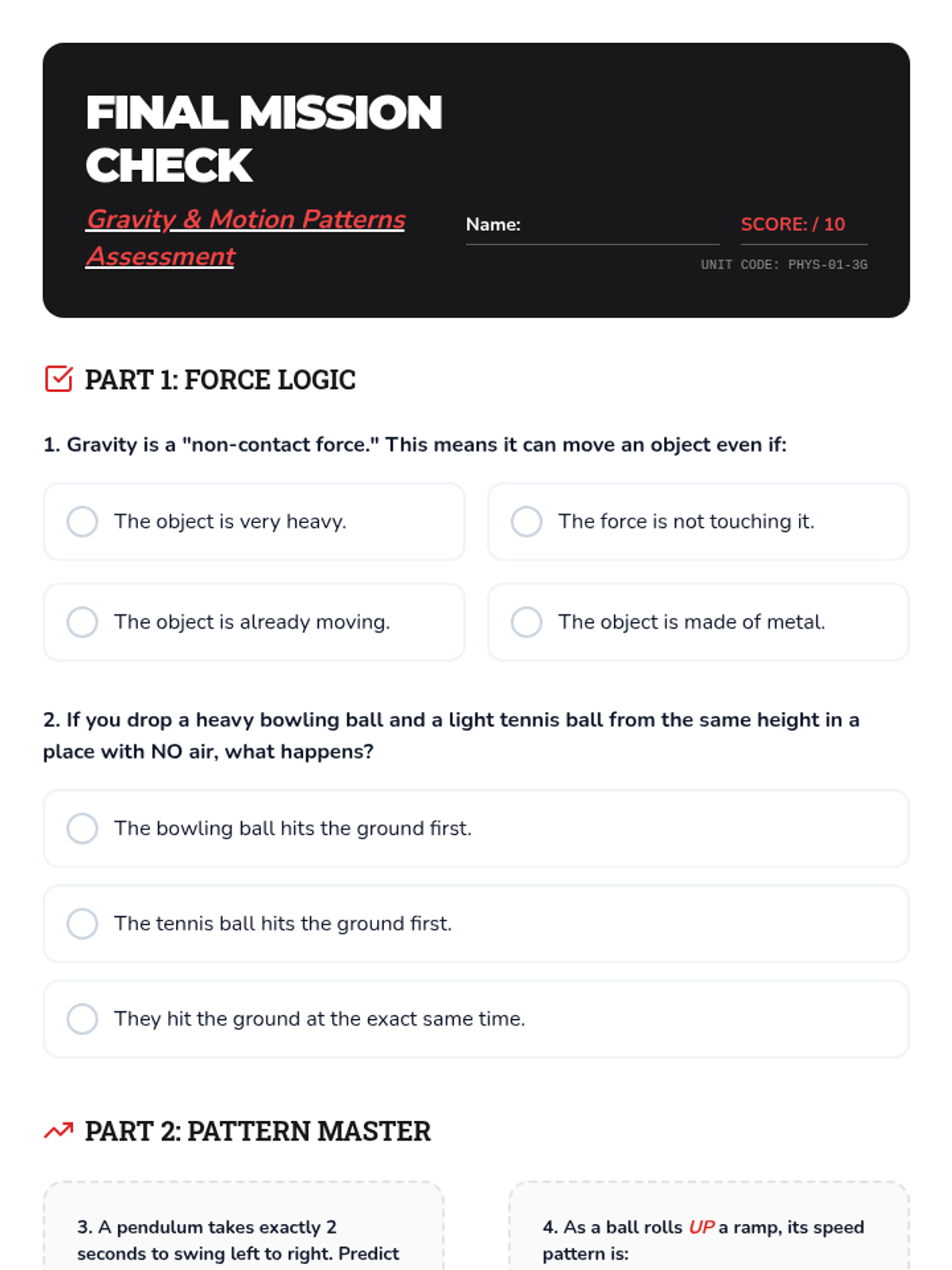 A 5-lesson unit for 3rd graders exploring gravity as a non-contact force and identifying recurring motion patterns. Students investigate falling objects, pendulums, ramps, and roller coasters to predict future motion based on observed patterns.