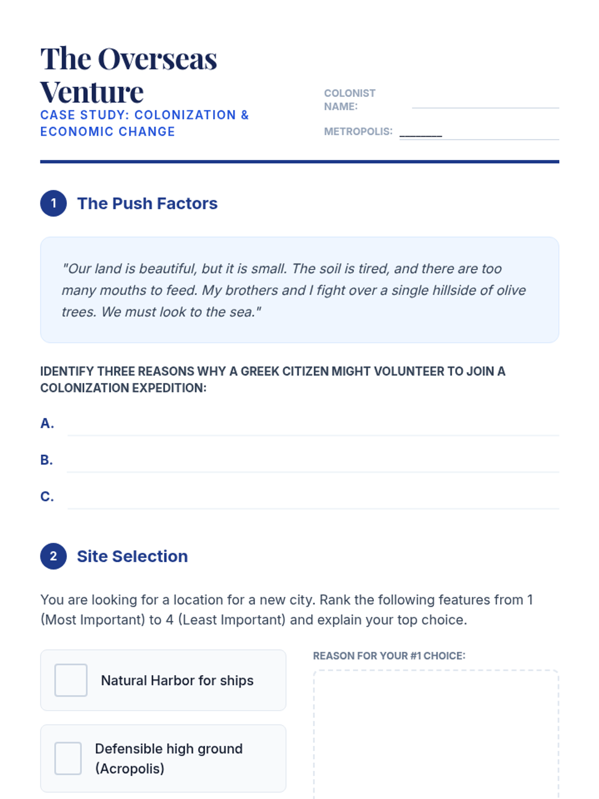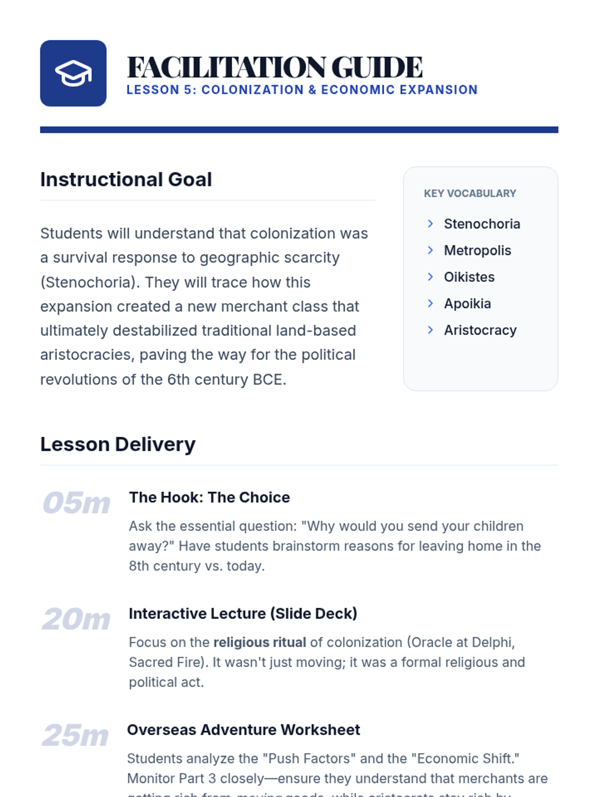 This sequence examines the geographic and early historical foundations of Ancient Greece, moving from the Bronze Age civilizations to the formation of the city-state (polis). Students analyze how the mountainous geography and maritime environment necessitated independent political units rather than a centralized empire.