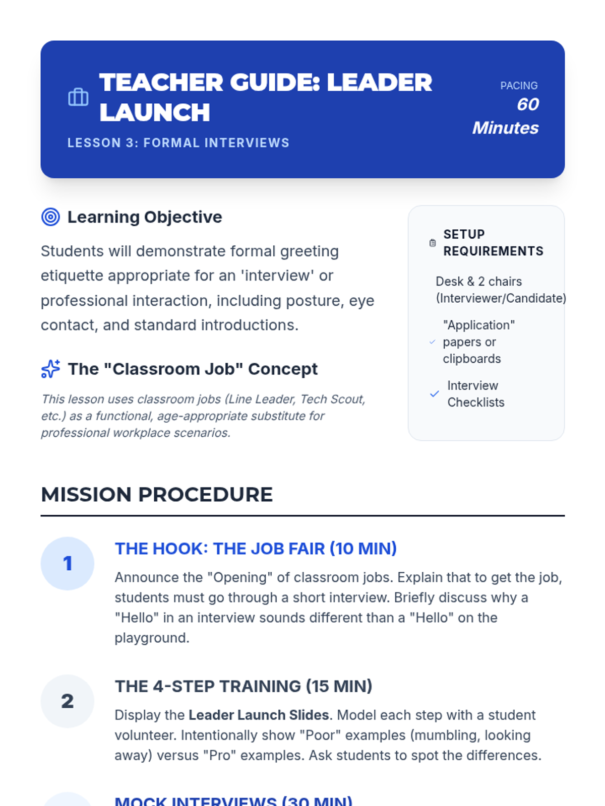 A comprehensive restorative practice sequence for upper elementary classrooms. It focuses on rebuilding classroom culture through a structured "Reset" meeting and provides tools for peer-to-peer and group mediation to resolve ongoing conflicts and restore the learning environment.