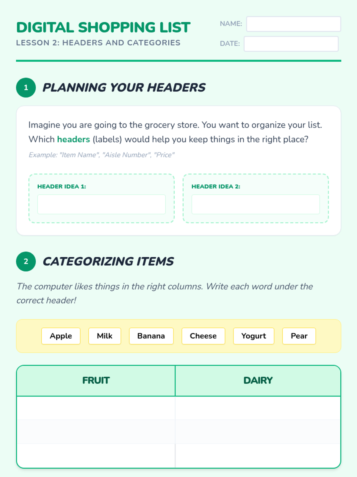A foundational sequence for 2nd graders to learn the basics of spreadsheets, from navigating cells to creating and interpreting simple bar charts. Students use a 'Grid Explorer' theme to demystify data organization.