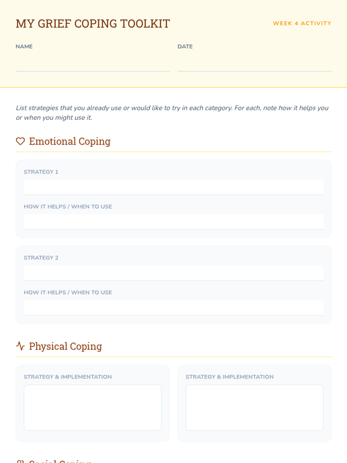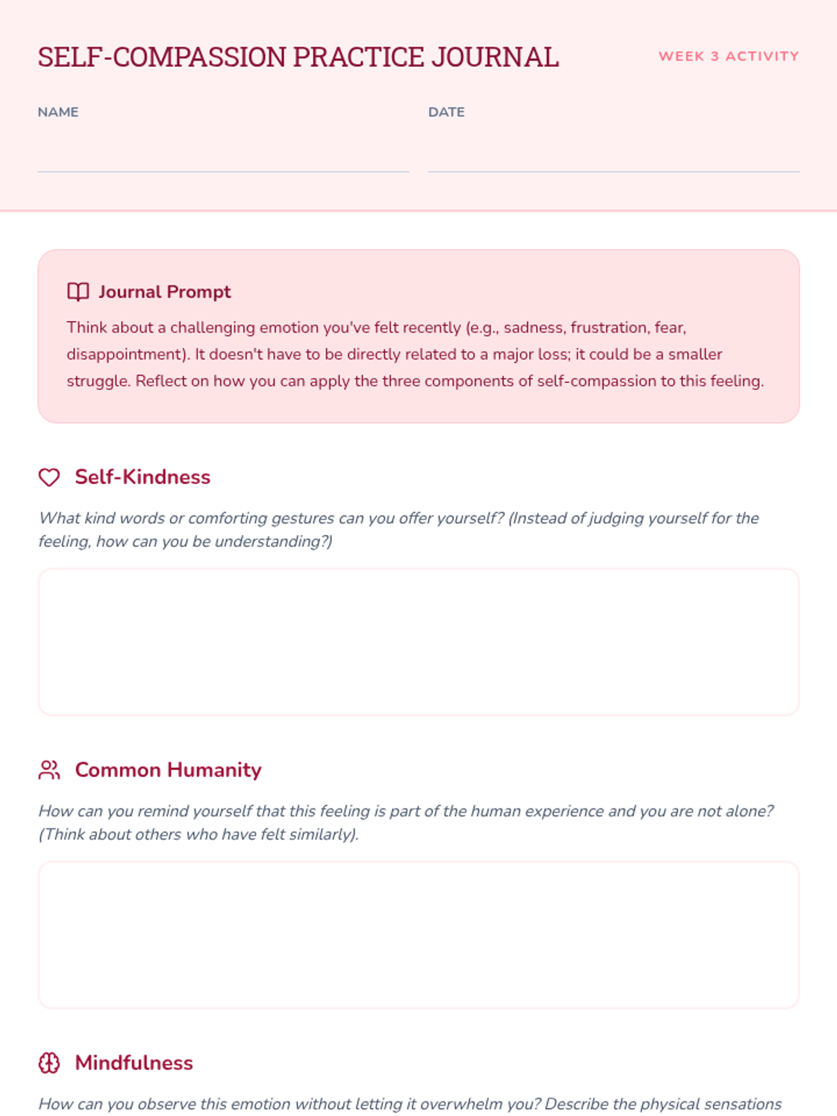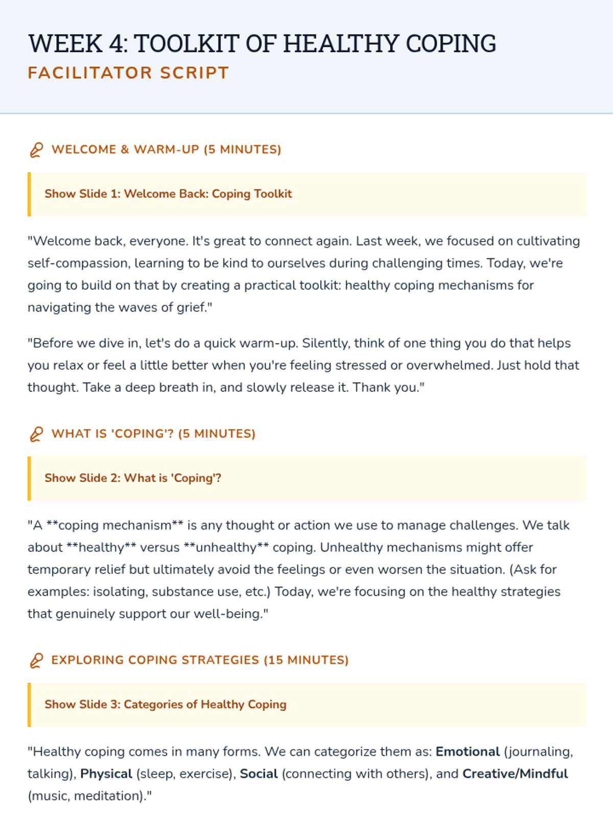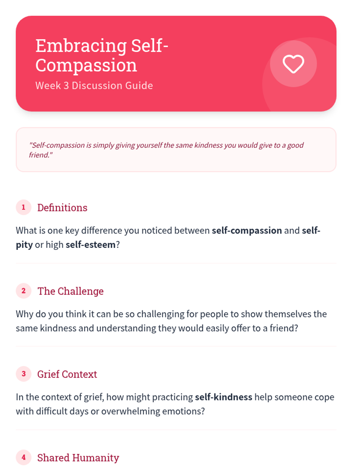 A 6-session Tier 2 small group counseling program for high schoolers to navigate the complexities of grief through understanding stages, challenging norms, and building a self-compassion toolkit.