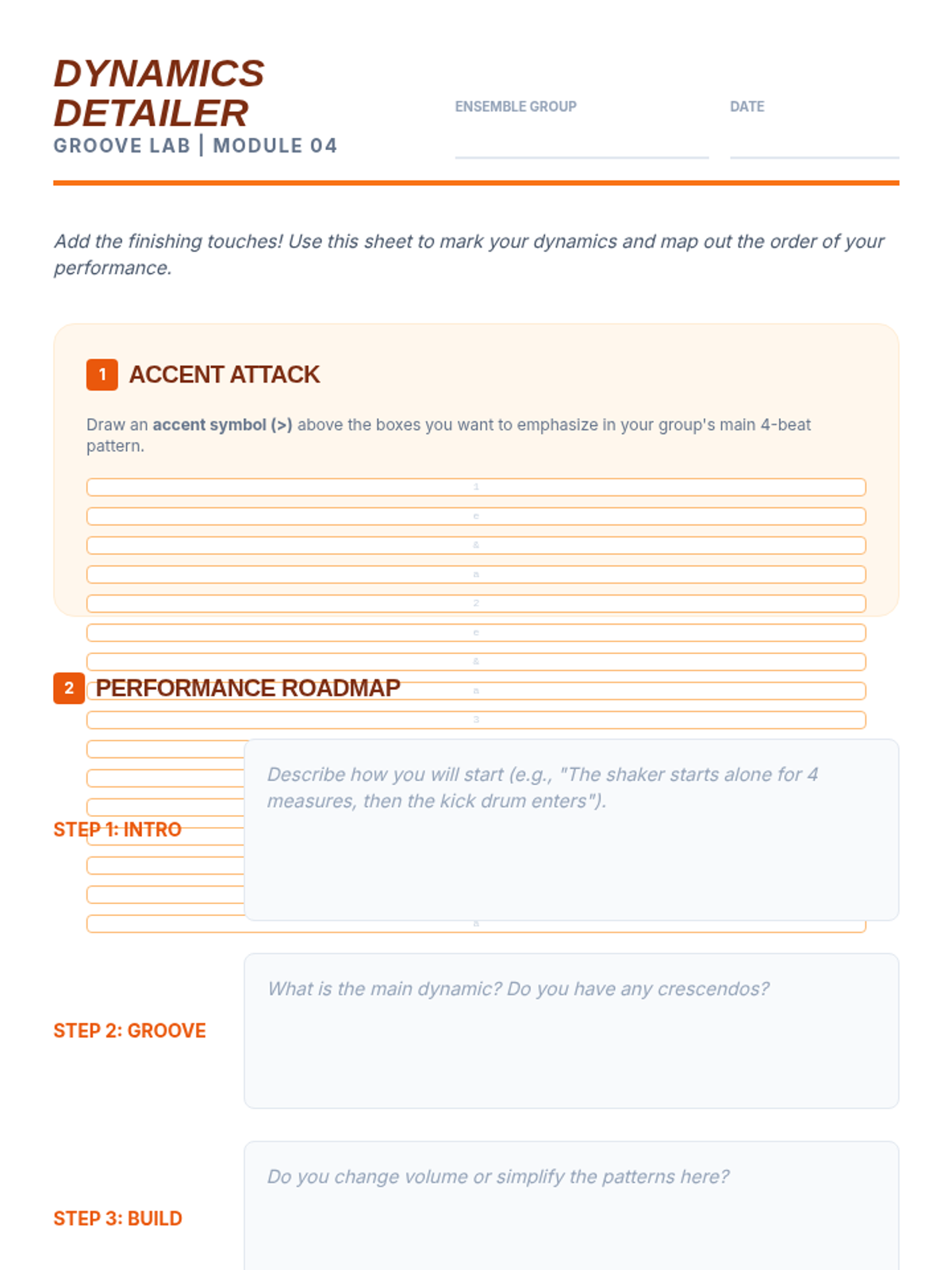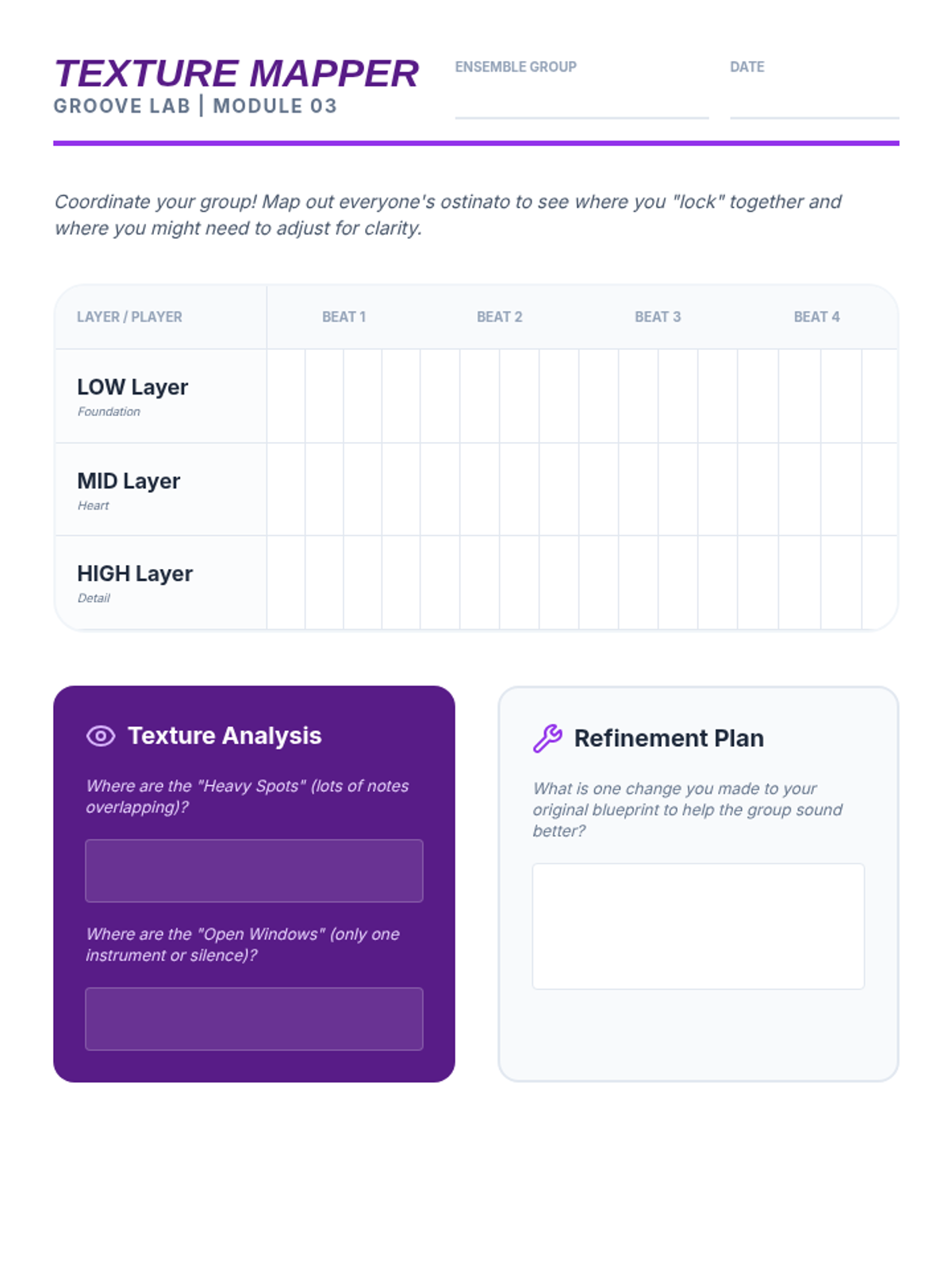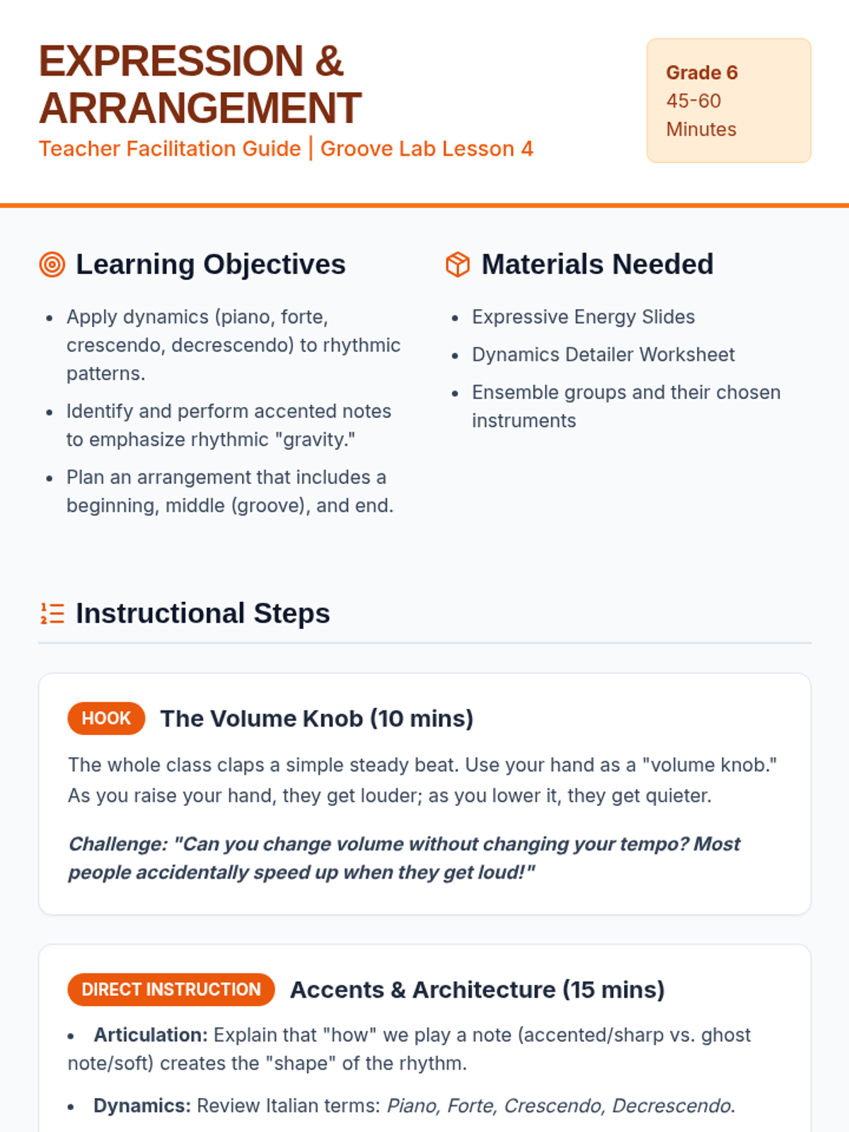 This sequence introduces students to the foundations of rhythmic composition through the creation of layered ostinatos. Students progress from internalizing pulse to composing and layering original rhythms, culminating in a group performance.