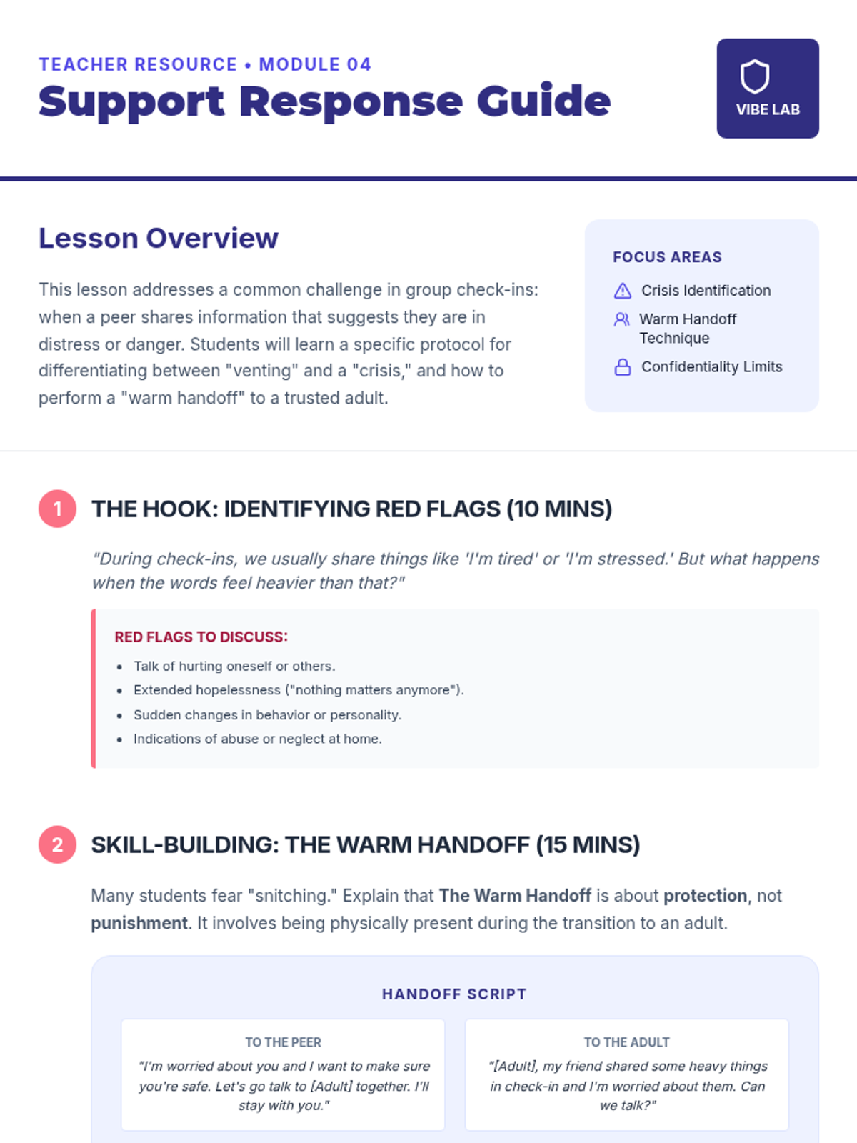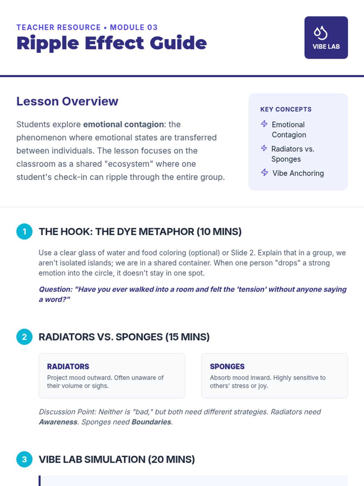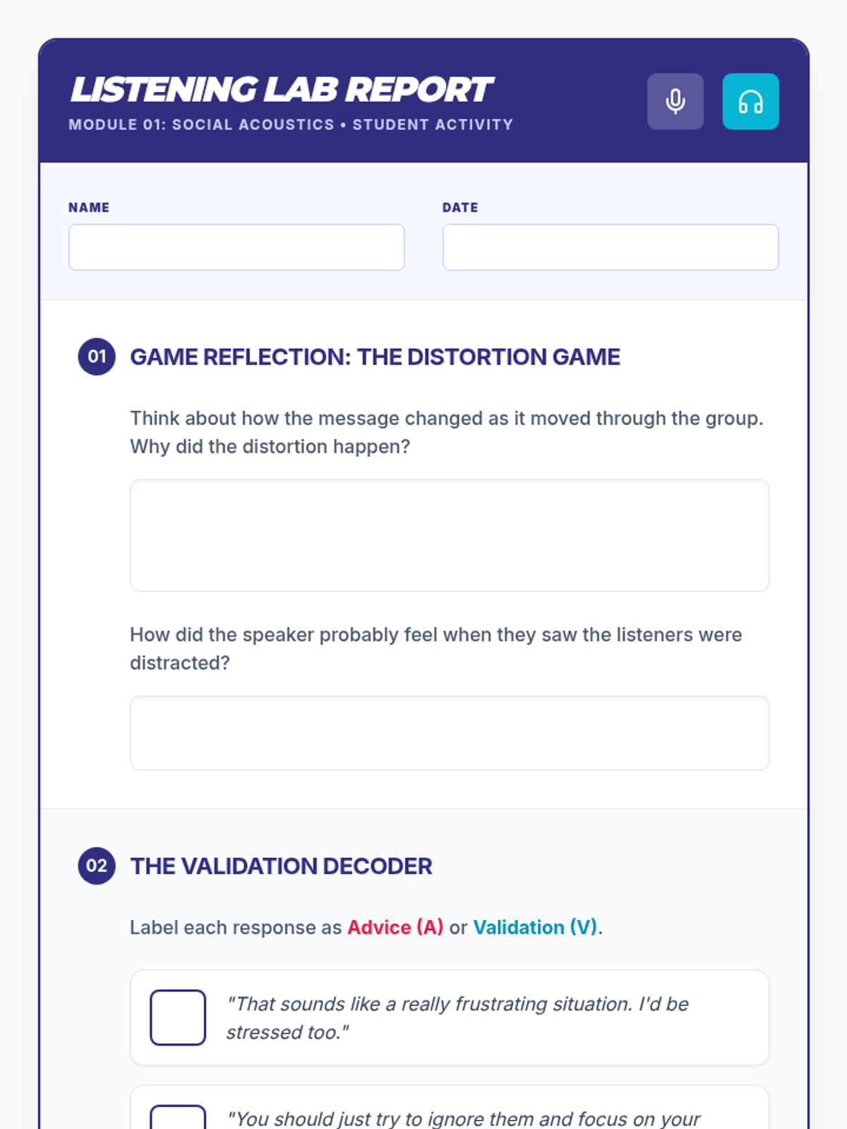 This 8th-grade sequence explores group dynamics through daily check-in procedures, focusing on active listening, non-verbal cues, emotional contagion, and peer support. Students will develop social awareness and community-building skills to foster a supportive classroom environment.