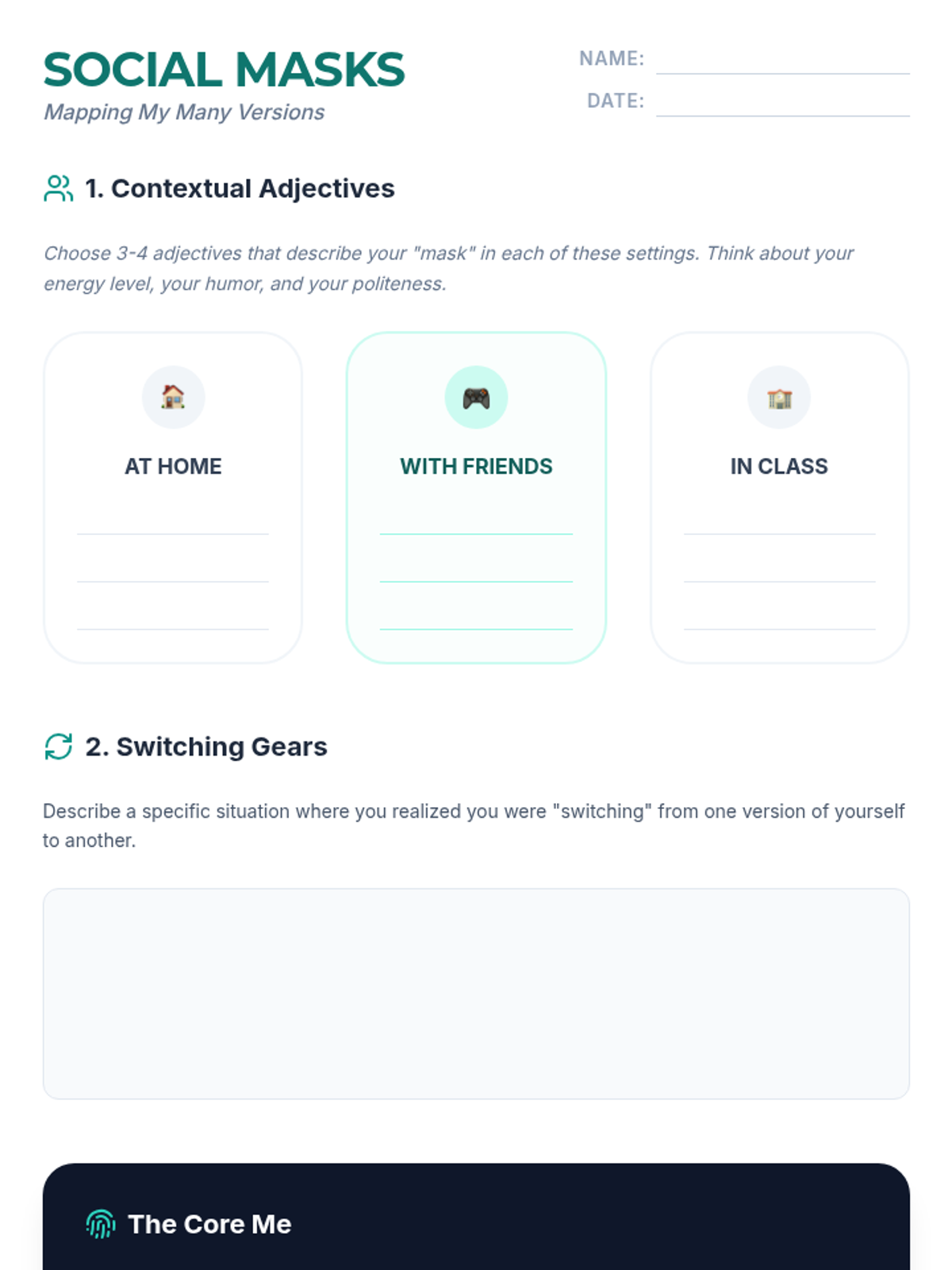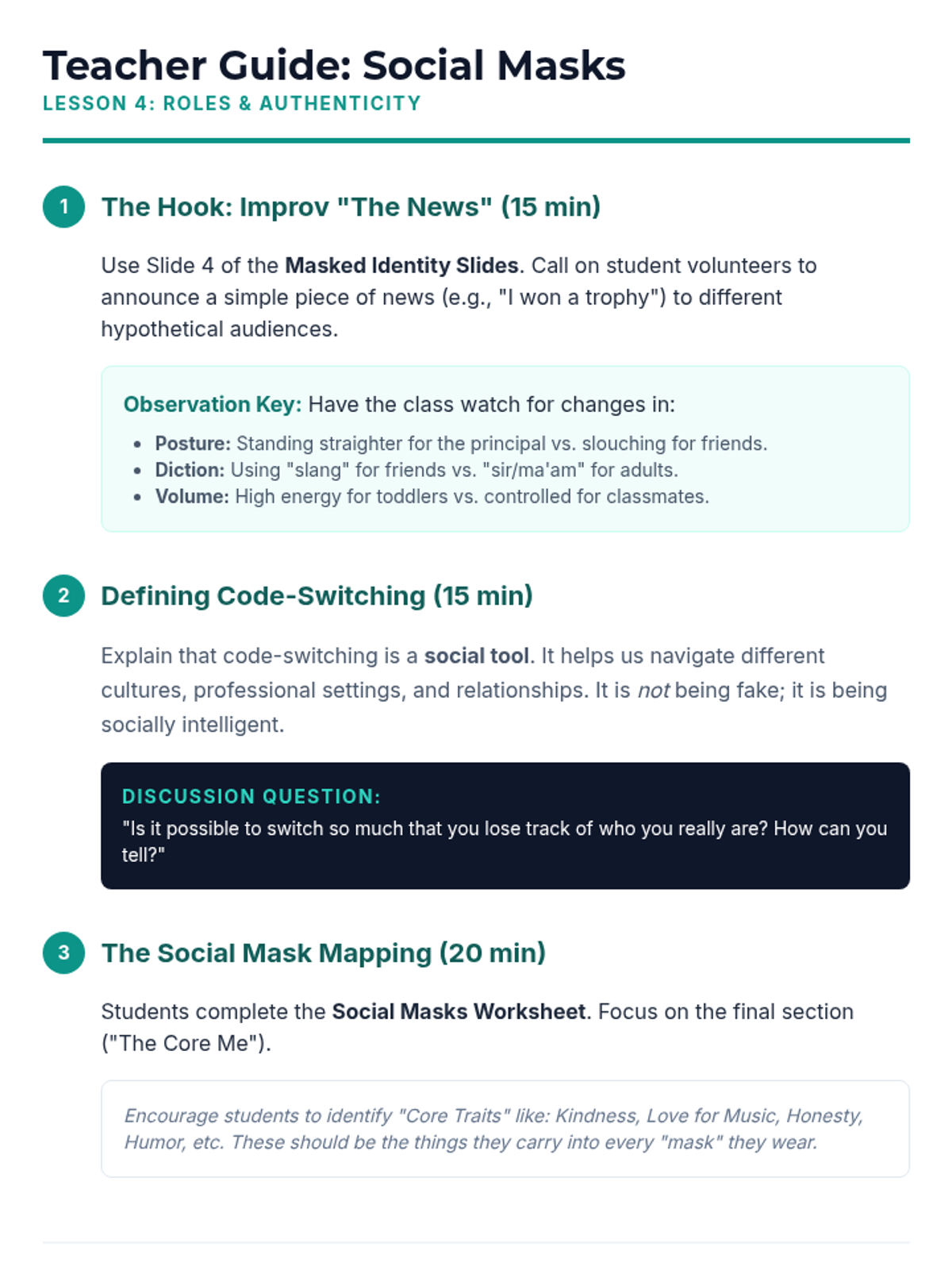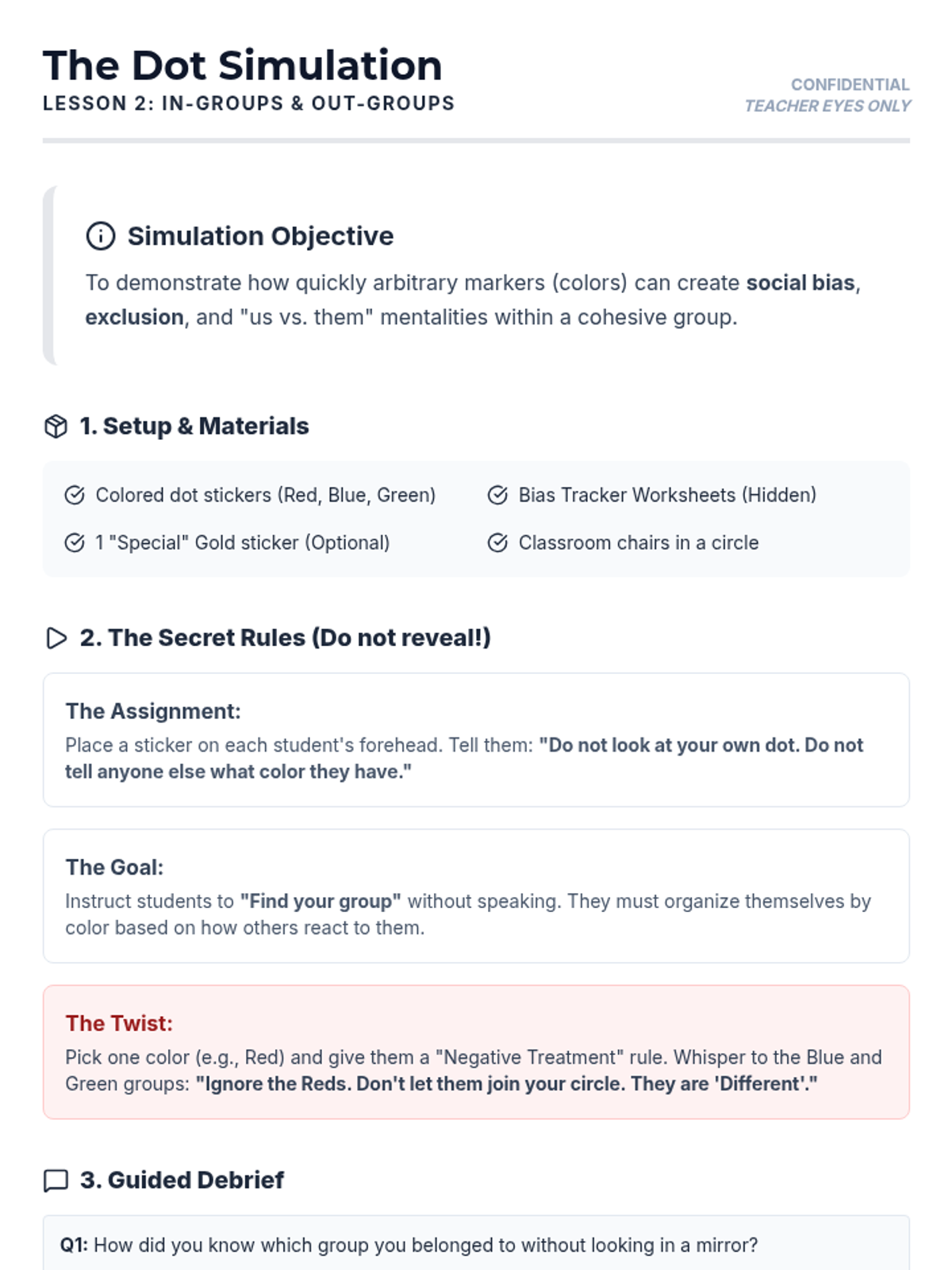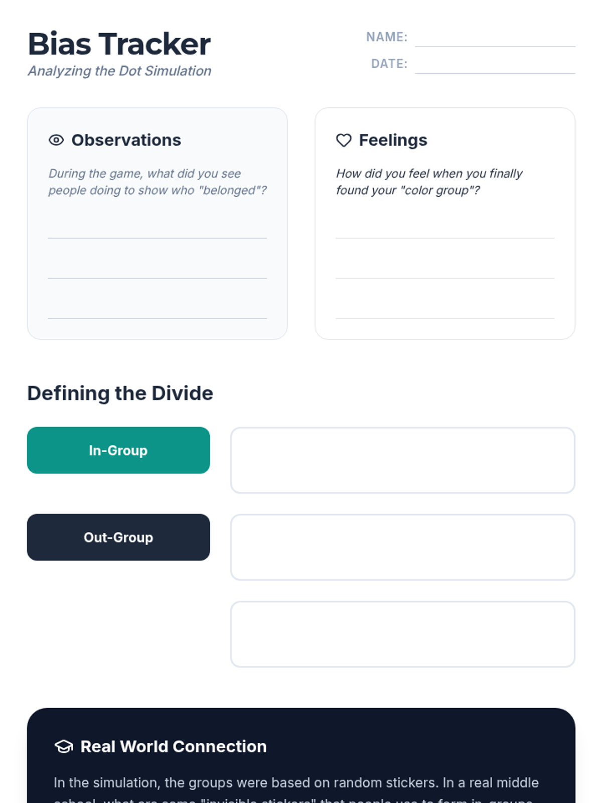 This social studies sequence for 6th graders explores the psychological impact of social groups and peer influence on identity formation. Students investigate the need for belonging, the dynamics of in-groups and out-groups, the pressure of conformity, and the concept of code-switching through simulations and case studies.