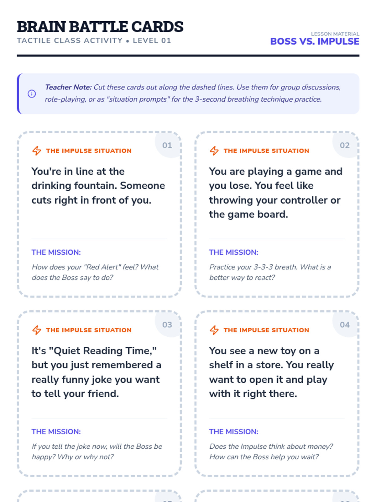 A comprehensive wellbeing sequence for primary students focusing on impulse control, managing retaliation, developing empathy, and building resilience through short, engaging sessions.