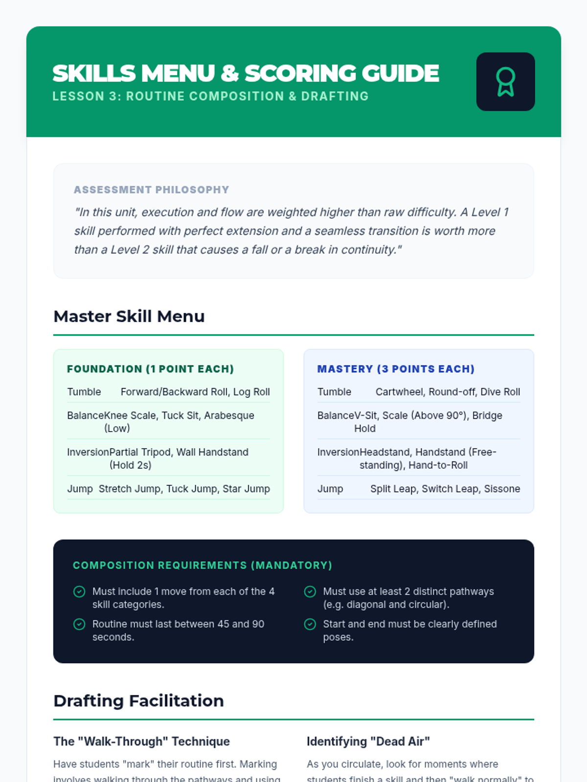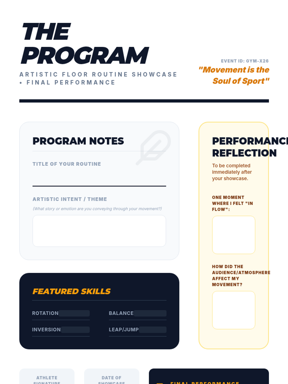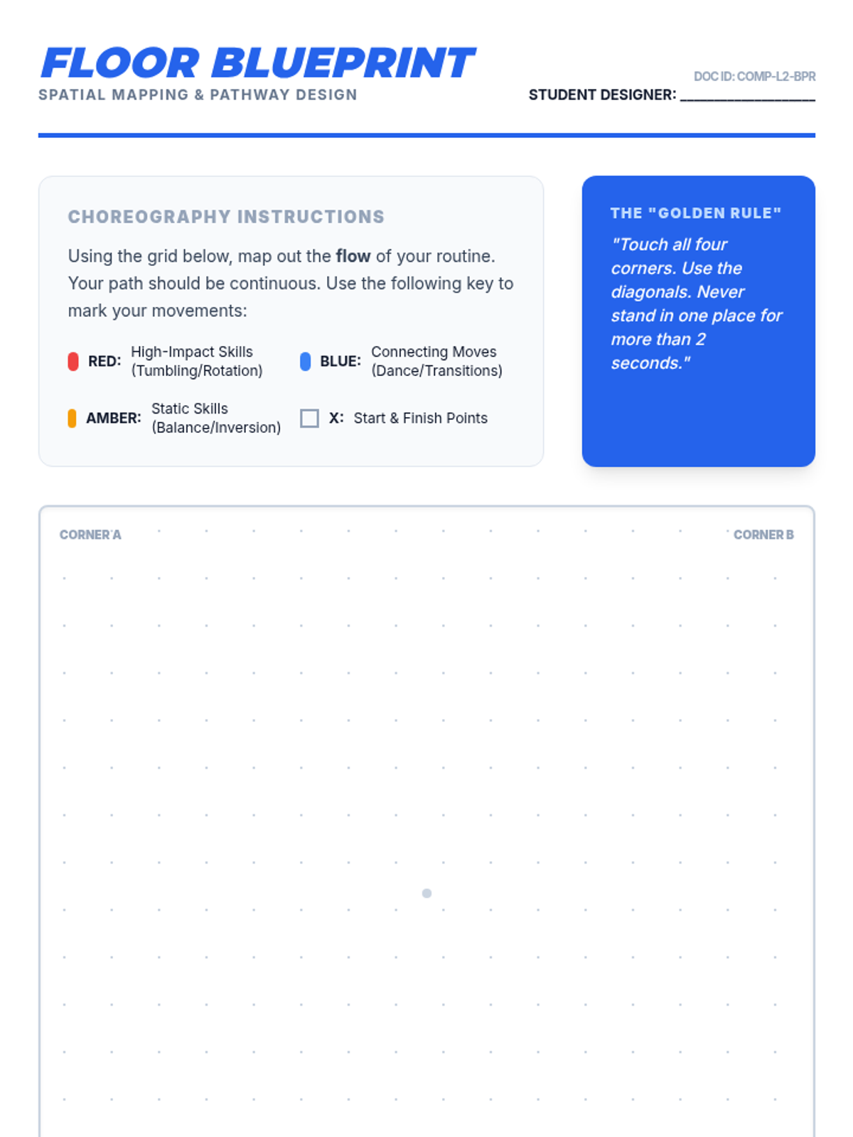 A project-based unit where 11th-grade students design and perform an artistic floor routine, focusing on flow, transitions, and spatial choreography in gymnastics.