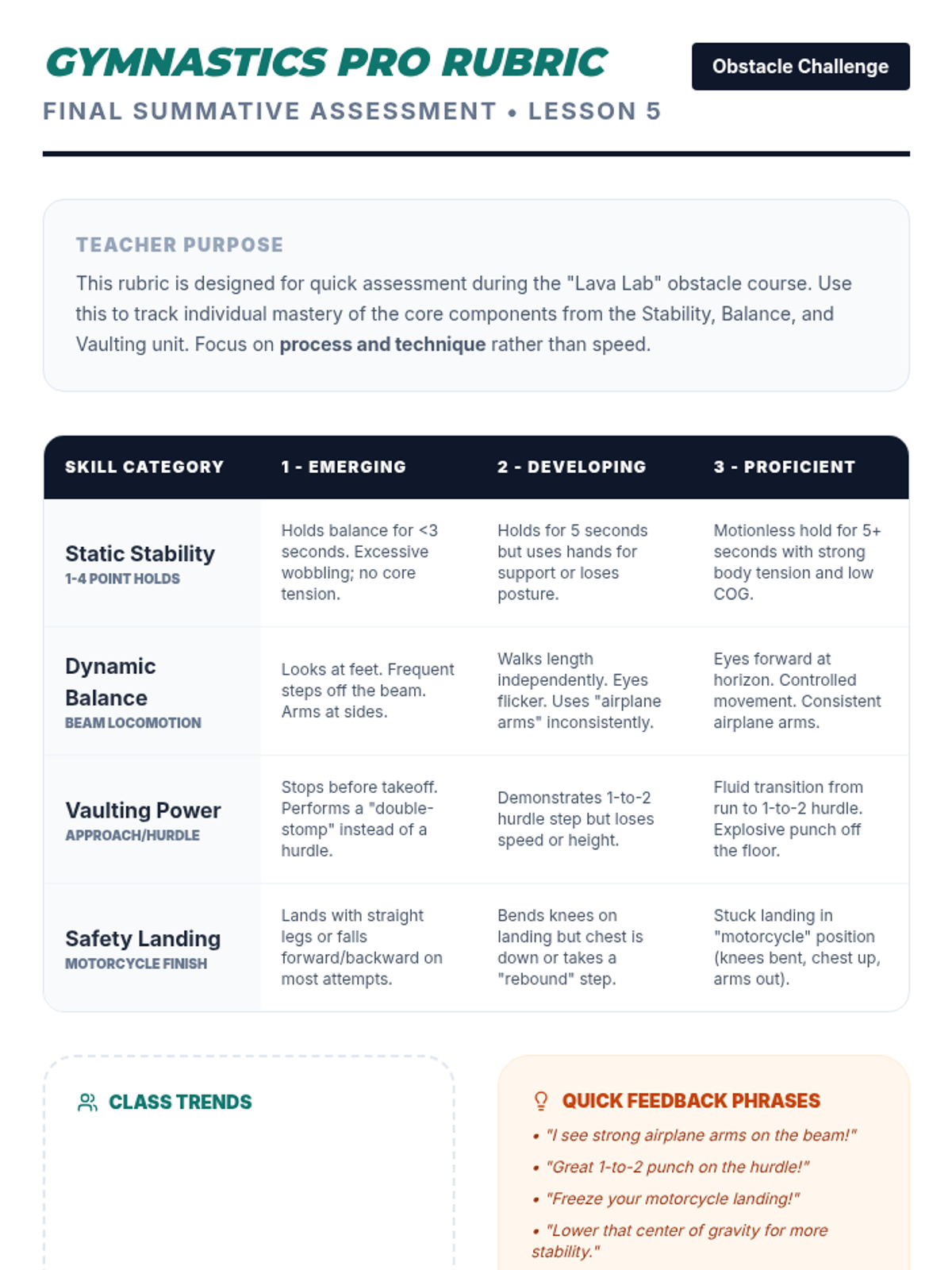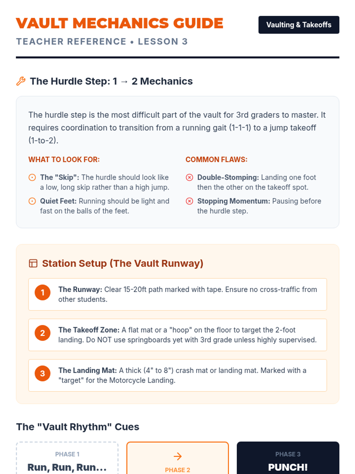 A comprehensive 3rd-grade gymnastics unit focusing on stability, center of gravity, and apparatus interaction. Students explore static and dynamic balance, vaulting techniques, and partner counterbalances.