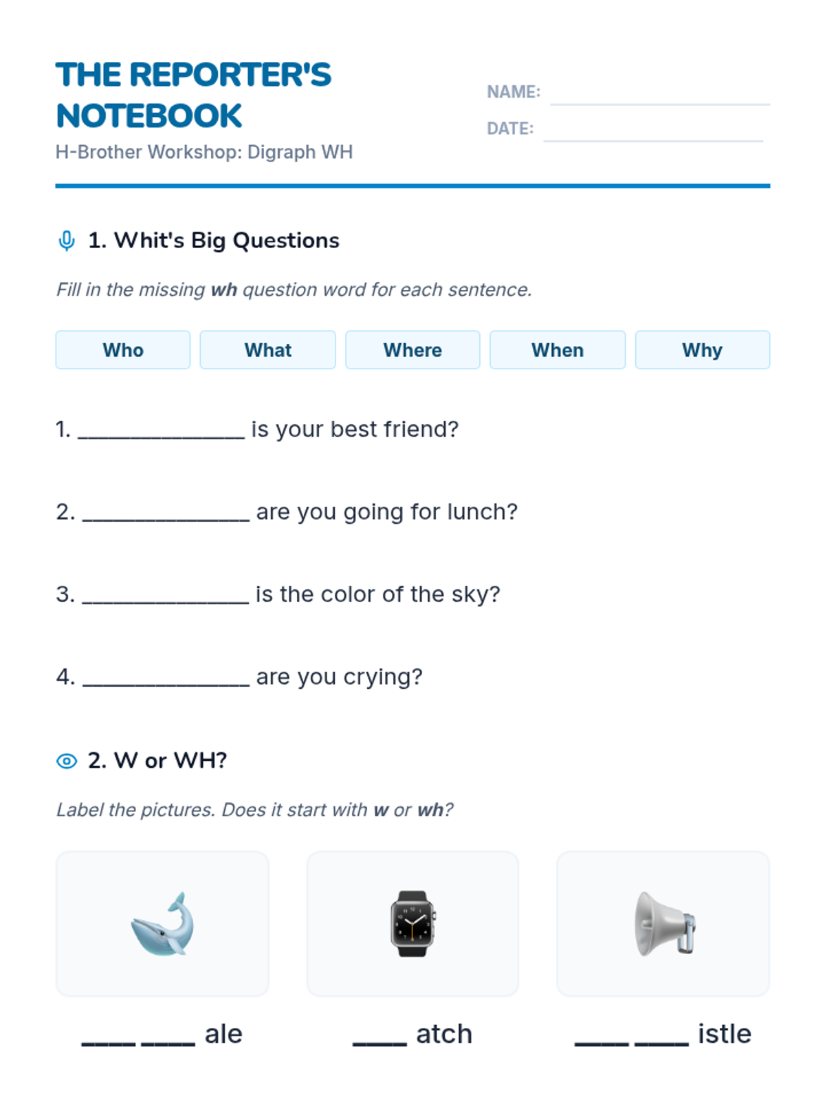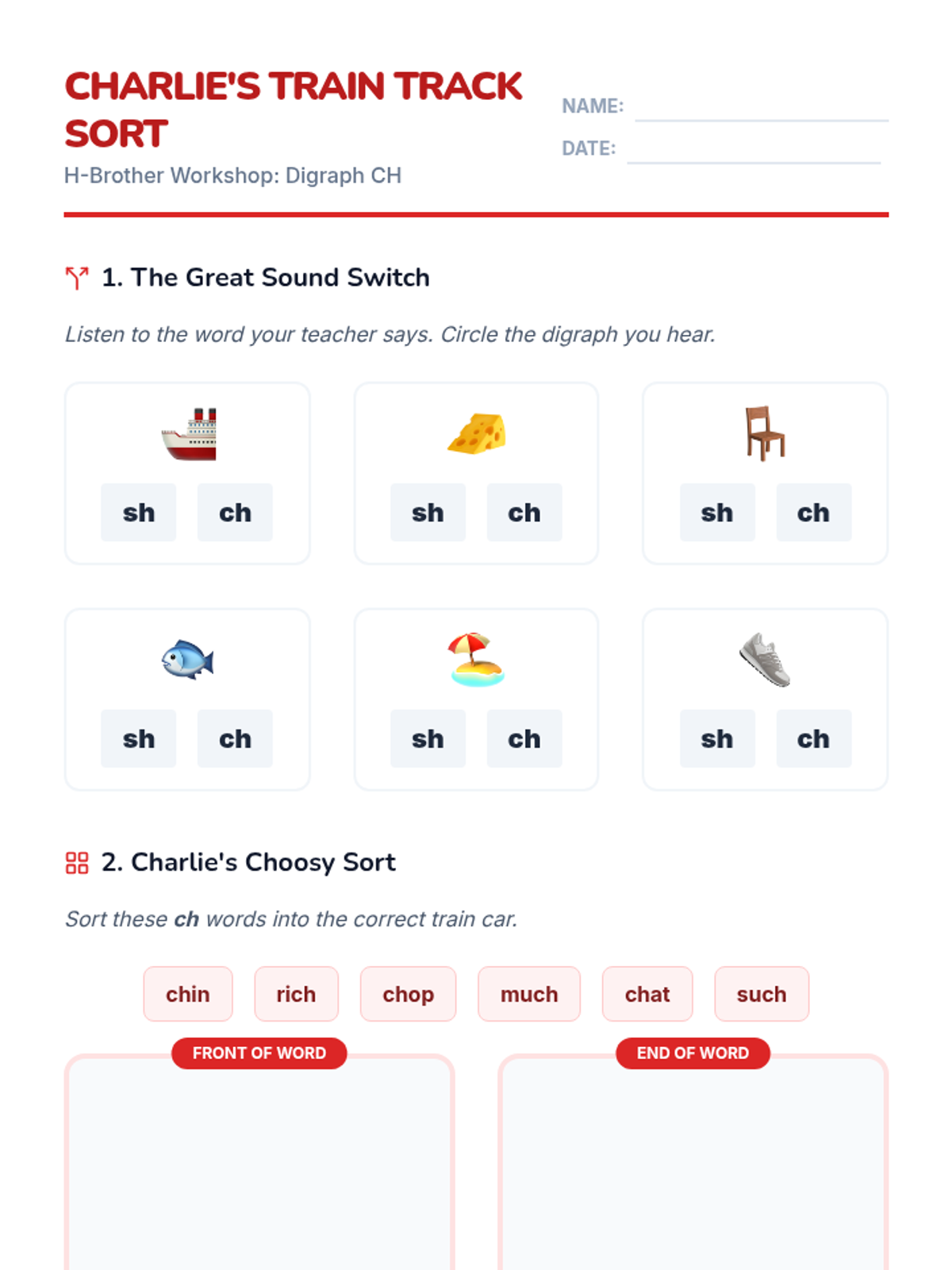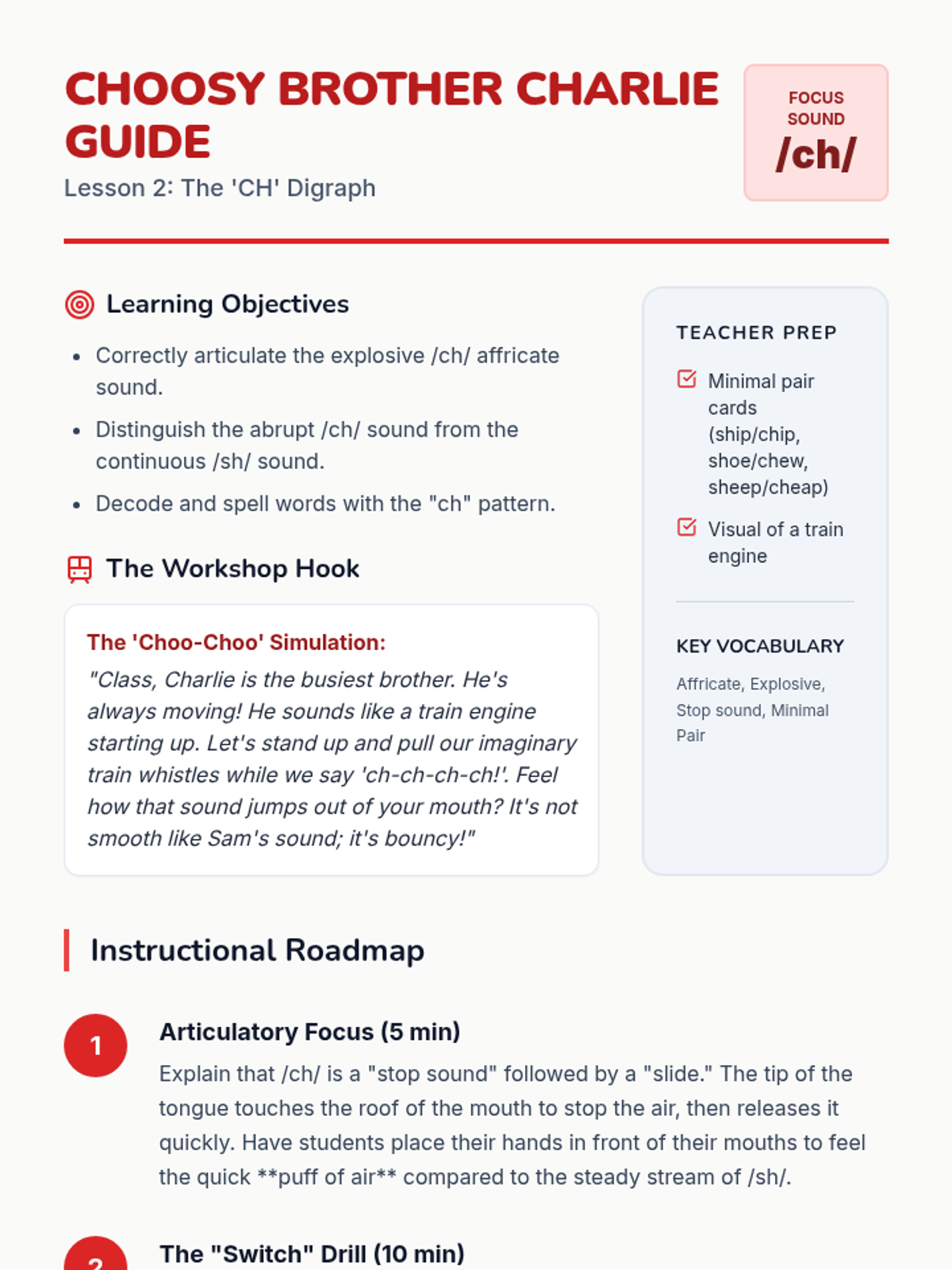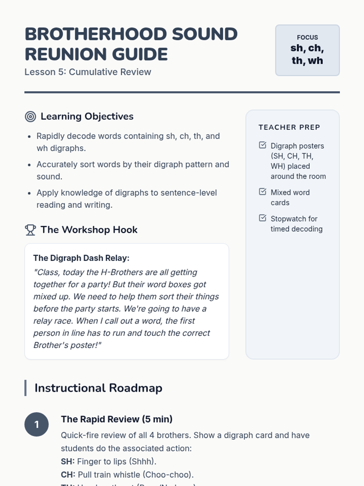 A comprehensive phonics sequence for 2nd Grade focused on identifying, articulating, and distinguishing the 'H-Brother' digraphs: sh, ch, th, and wh. Through tactile workshops and auditory discrimination tasks, students build decoding automaticity and phonemic awareness.