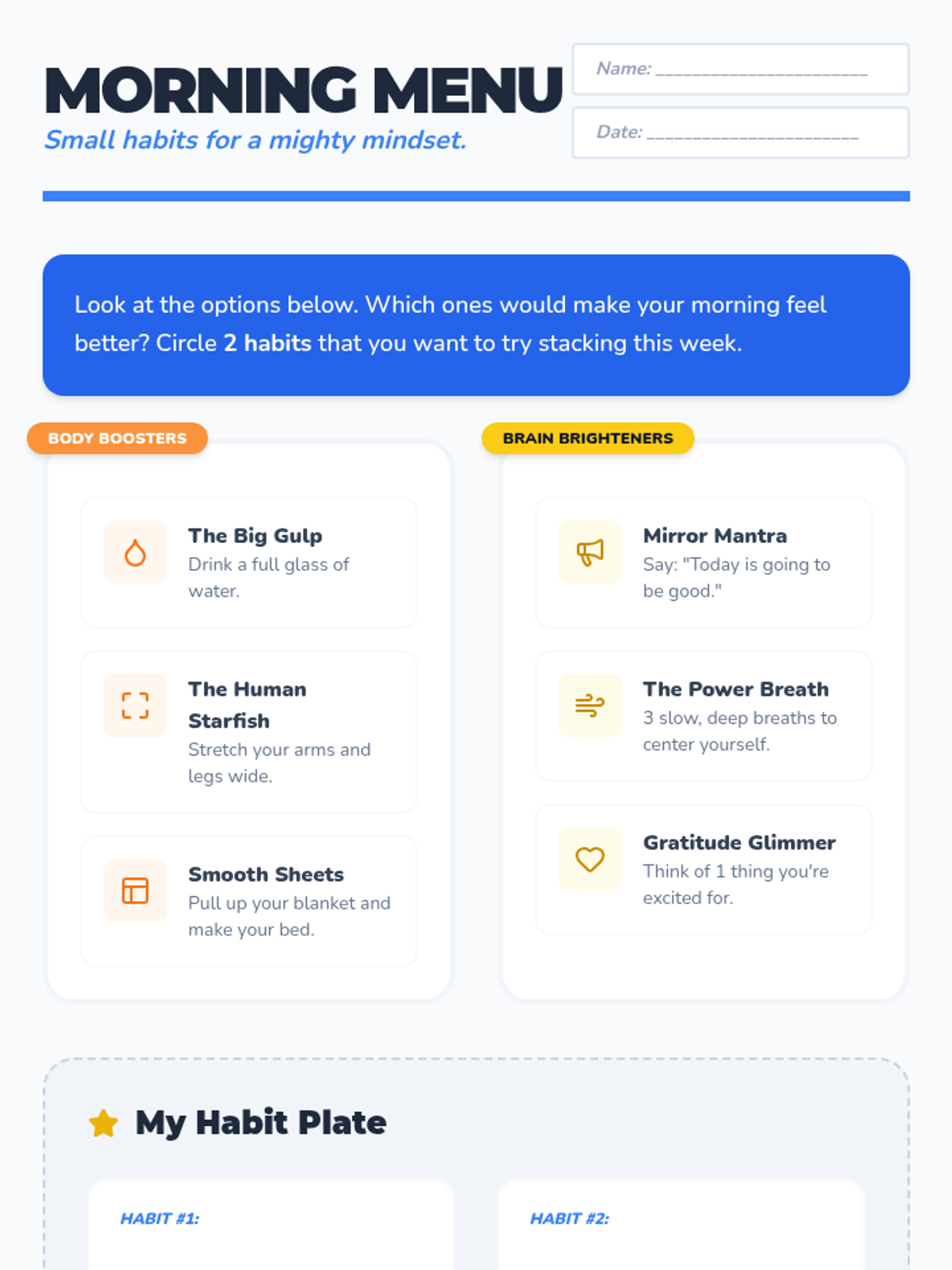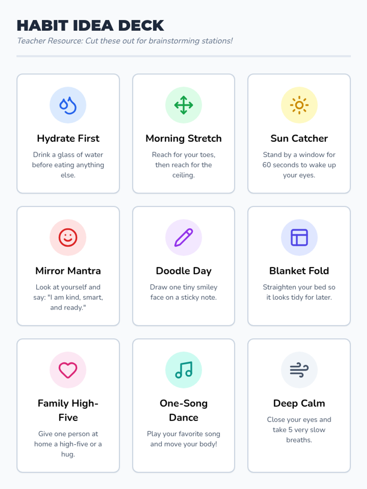 This synthesis sequence focuses on the mechanics of habit formation, specifically 'habit stacking' to build morning routines that support mental health. Students move from understanding individual healthy choices to organizing them into a coherent flow using simple tracking tools and reflection.