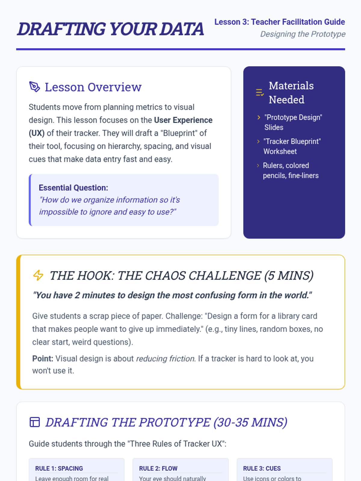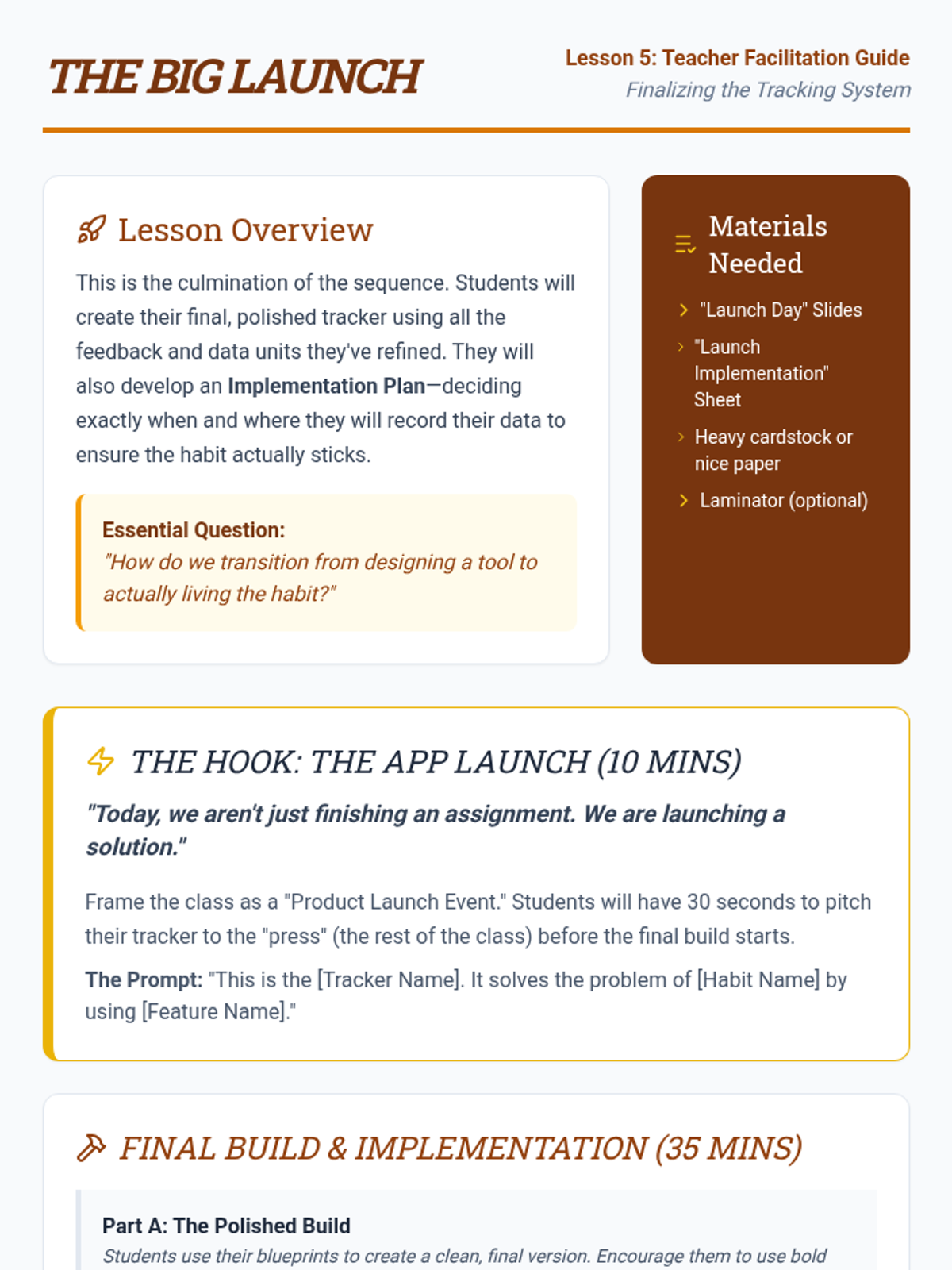 A project-based sequence where 5th graders use design thinking to create personalized habit and behavior tracking systems that fit their unique needs and styles.