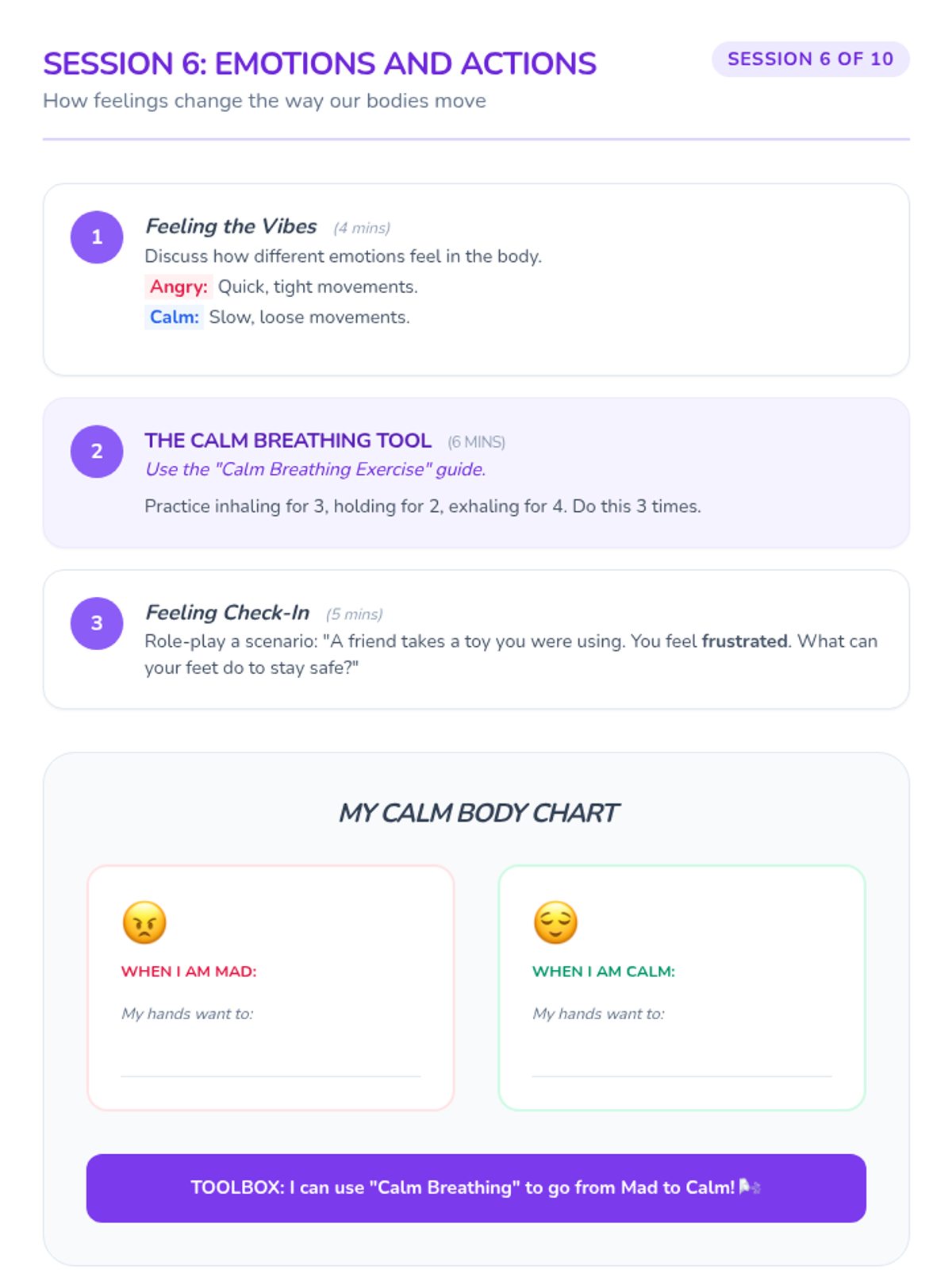 A collection of lessons focused on essential social-emotional skills across primary grades, including anger management, following directions, and mindfulness.