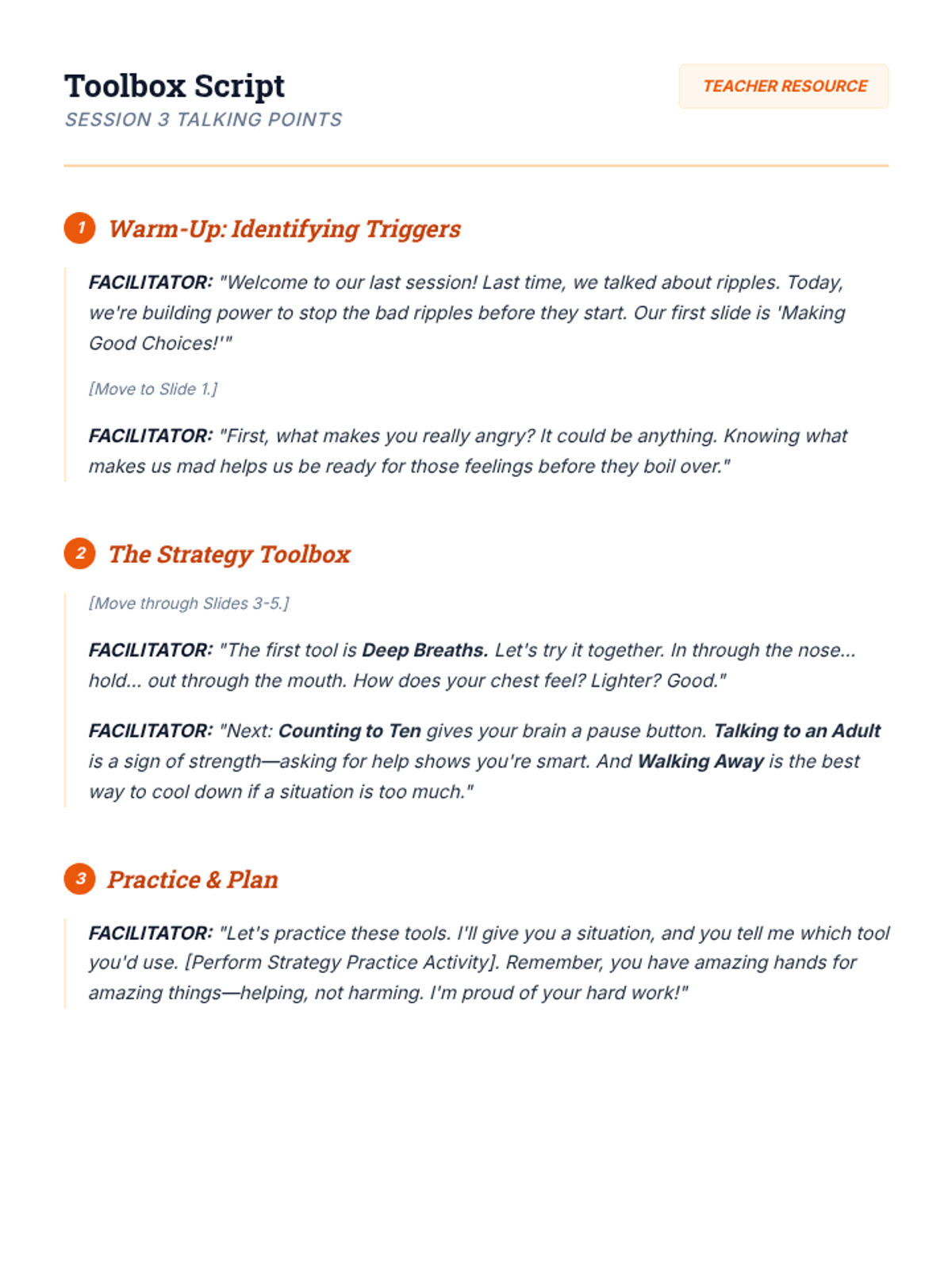 A multi-day social-emotional learning sequence that teaches students how to identify, manage, and communicate difficult emotions like anger and conflict using the metaphor of an 'Emotional Backpack'. Designed with high-visual support for EAL and neurodivergent learners.