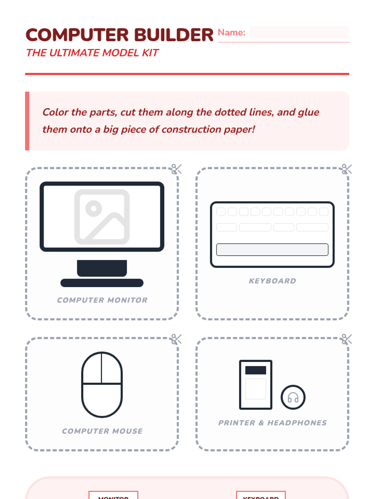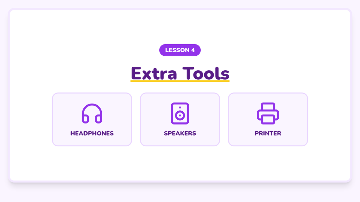 A foundational computer science sequence for Kindergarteners to identify and understand basic computer hardware components like screens, keyboards, mice, and peripherals through tactile play and visual observation.