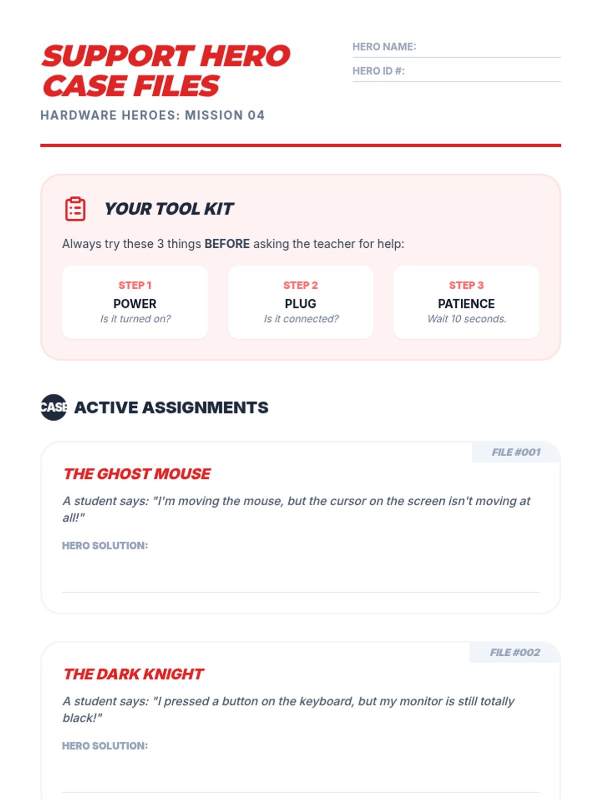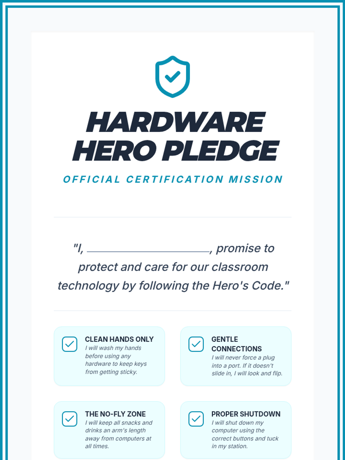 A comprehensive introduction to computer hardware for 3rd graders, covering identification, connectivity, ergonomics, troubleshooting, and device care. Students become 'Hardware Heroes' as they learn to navigate and maintain technology independently.