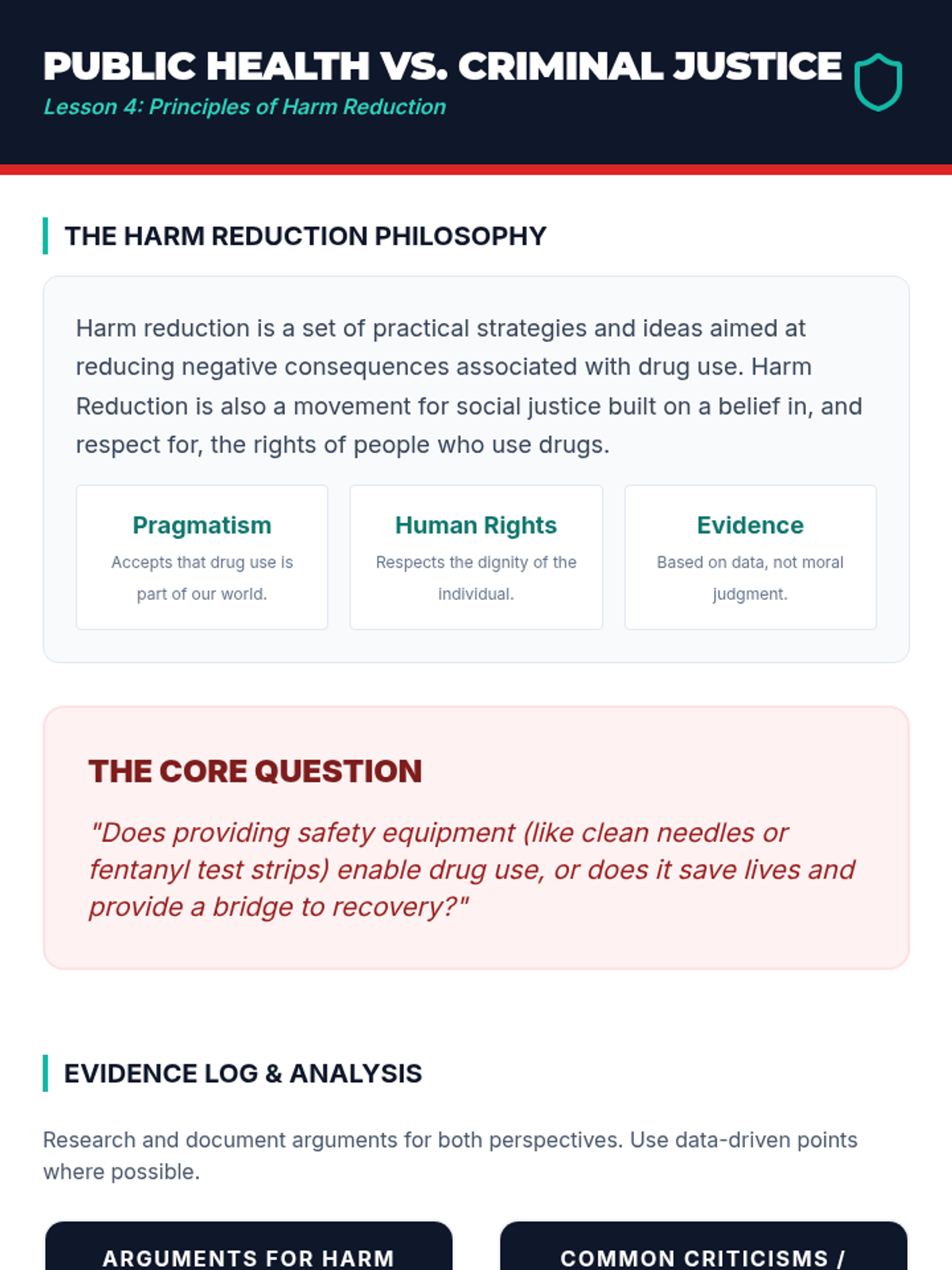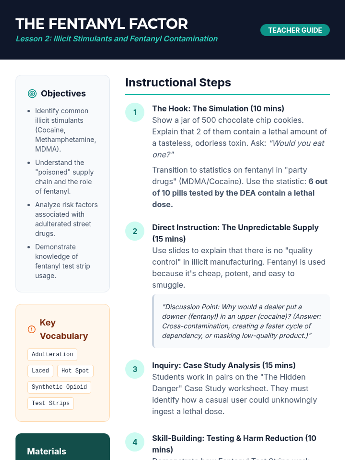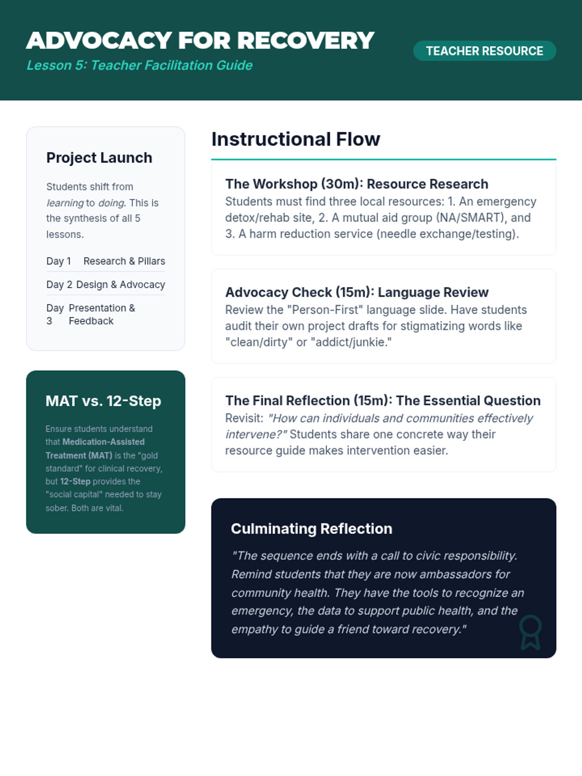 A comprehensive 12th-grade health sequence focused on stimulant awareness, the cycle of addiction, and evidence-based harm reduction strategies to support community health and recovery.
