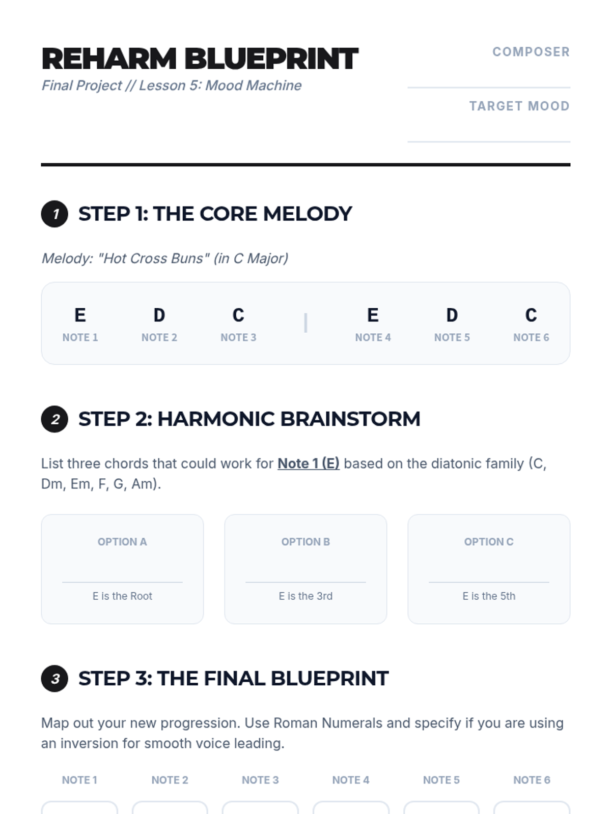 This sequence explores the mechanics of music theory, moving from building individual chords to understanding their functional relationships in pop and classical music. Students will analyze, identify, and eventually manipulate harmonic structures to change the emotional landscape of a melody.