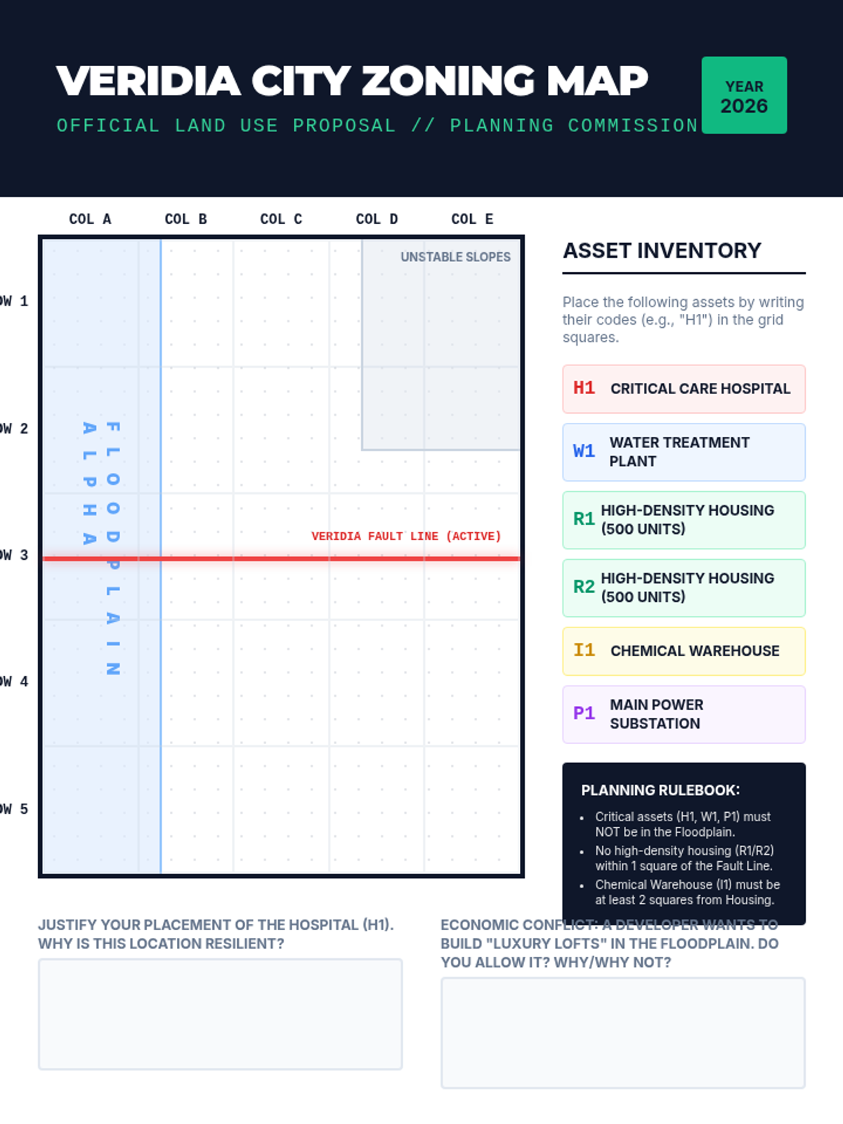 A 12th-grade capstone sequence merging earth science with public policy. Students analyze geologic hazards through the lens of risk assessment, urban planning, disaster response, and economic analysis to draft comprehensive policy proposals.
