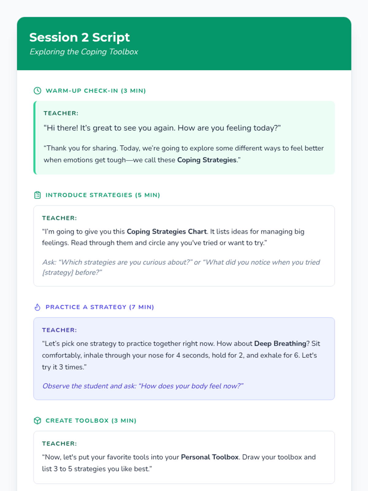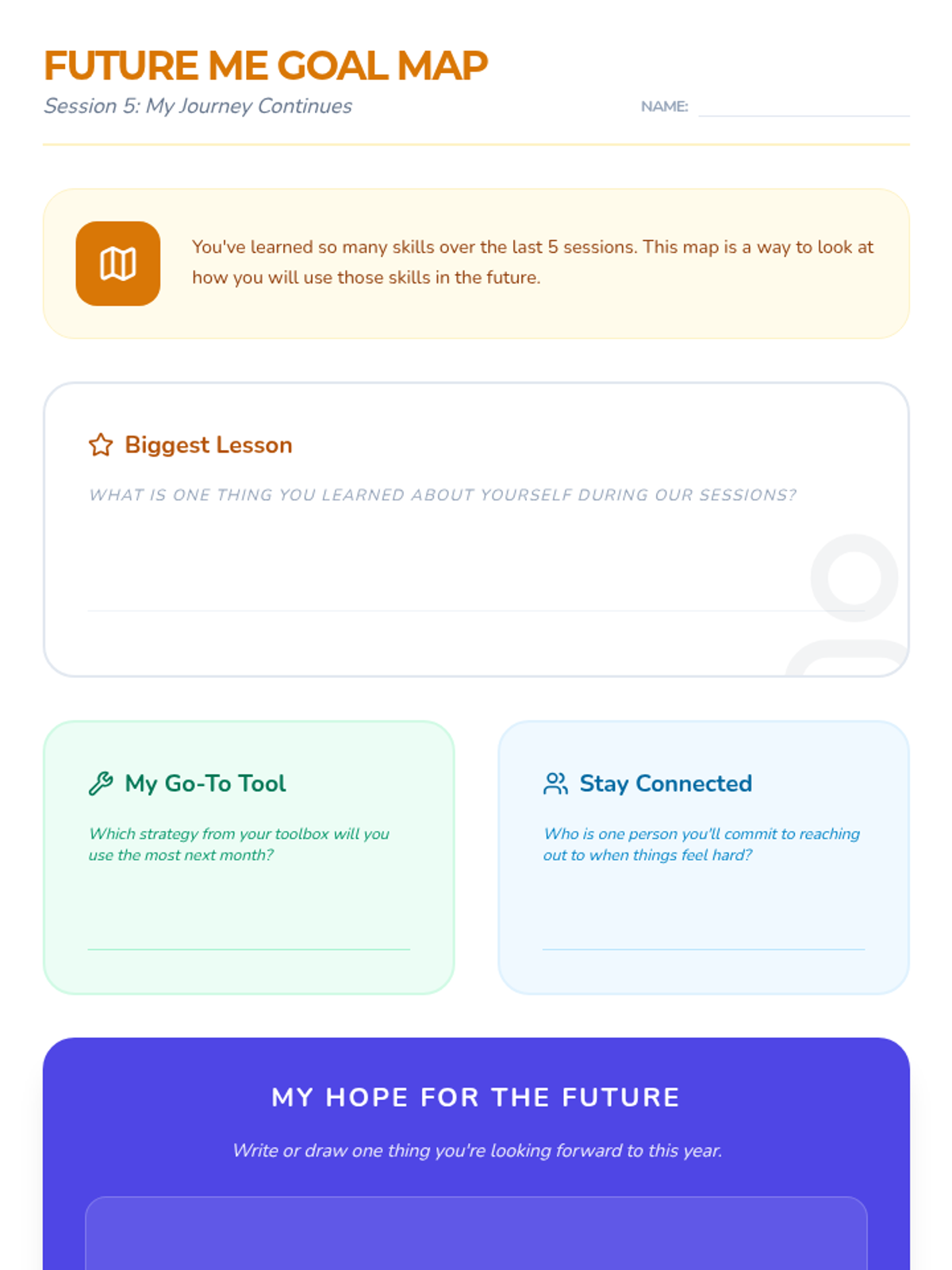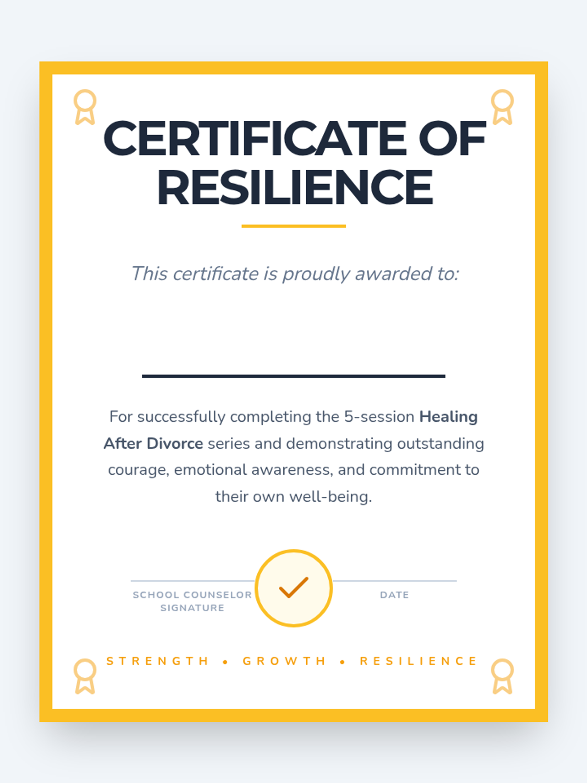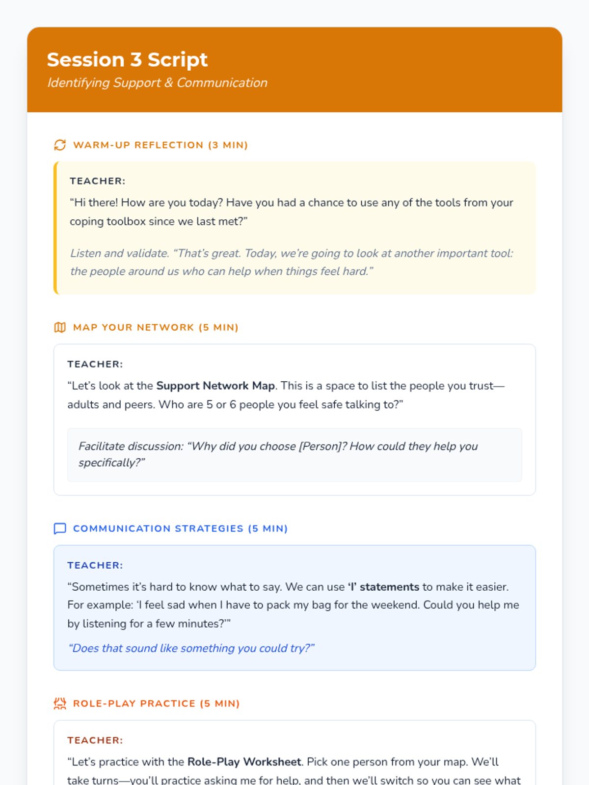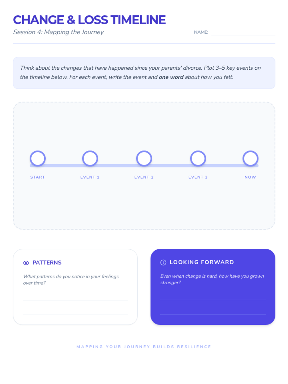 This 5-session Tier 3 series helps individual 6th grade students develop coping skills for navigating life with divorced parents. Each session builds emotional awareness, resilience, and practical strategies in a supportive one-on-one setting.