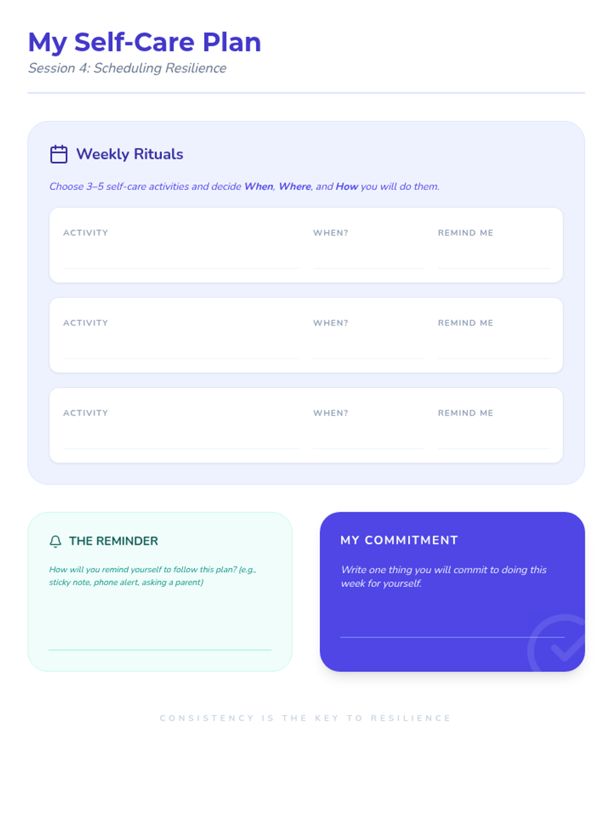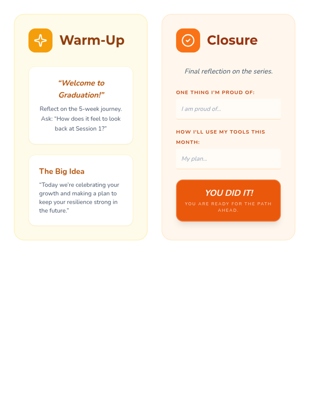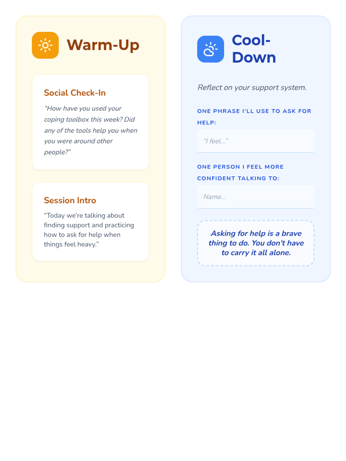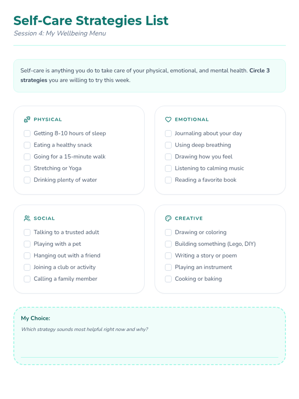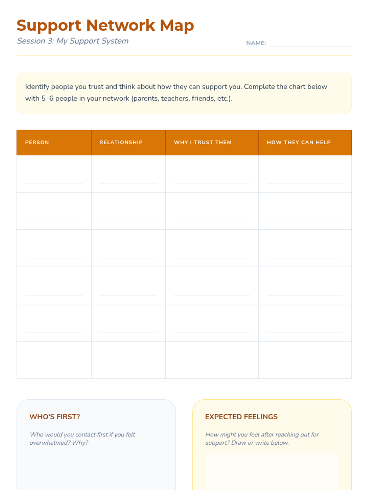 This 5-session Tier 3 series helps individual 6th grade students develop coping skills for navigating life with divorced parents. Each session builds emotional awareness, resilience, and practical strategies in a supportive one-on-one setting.