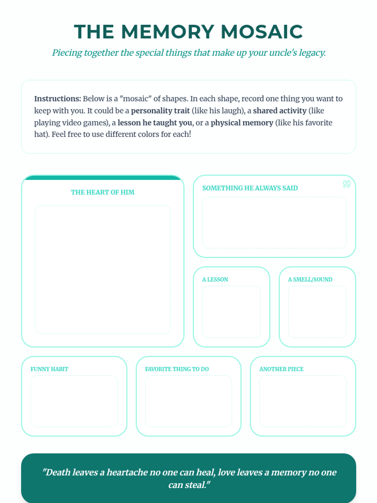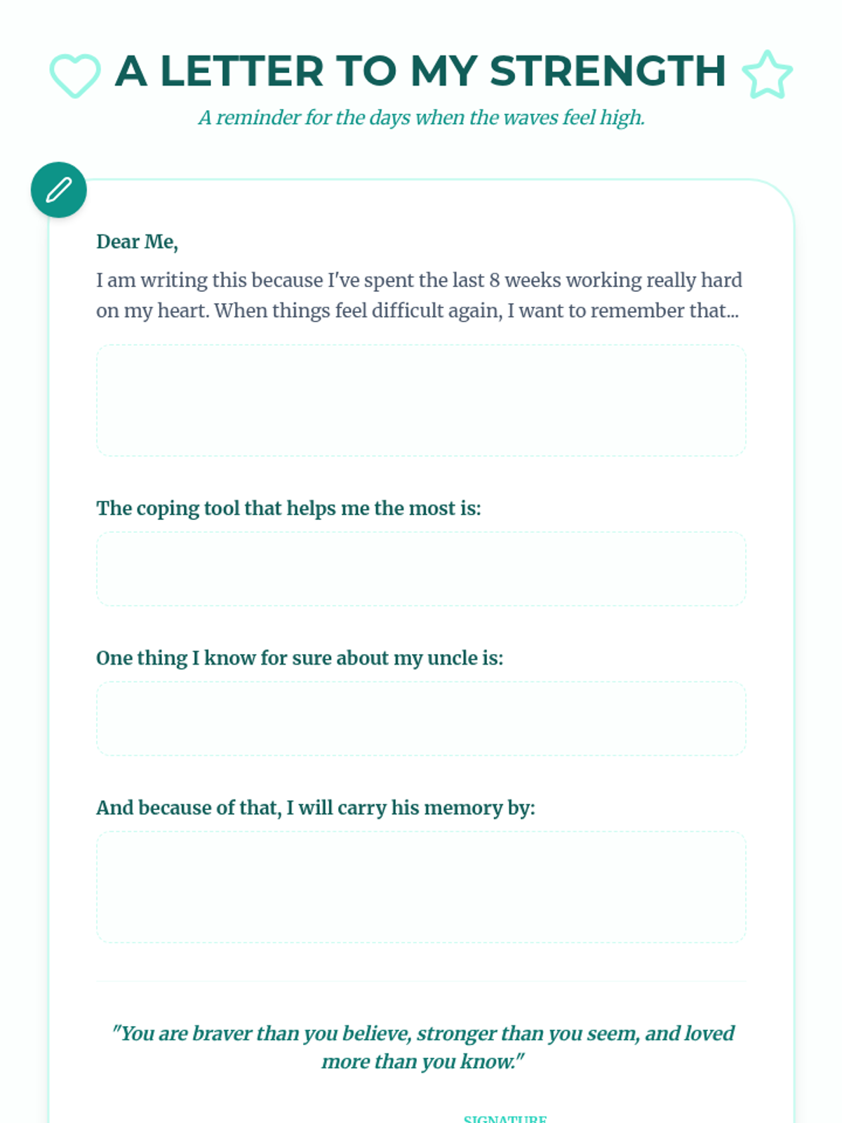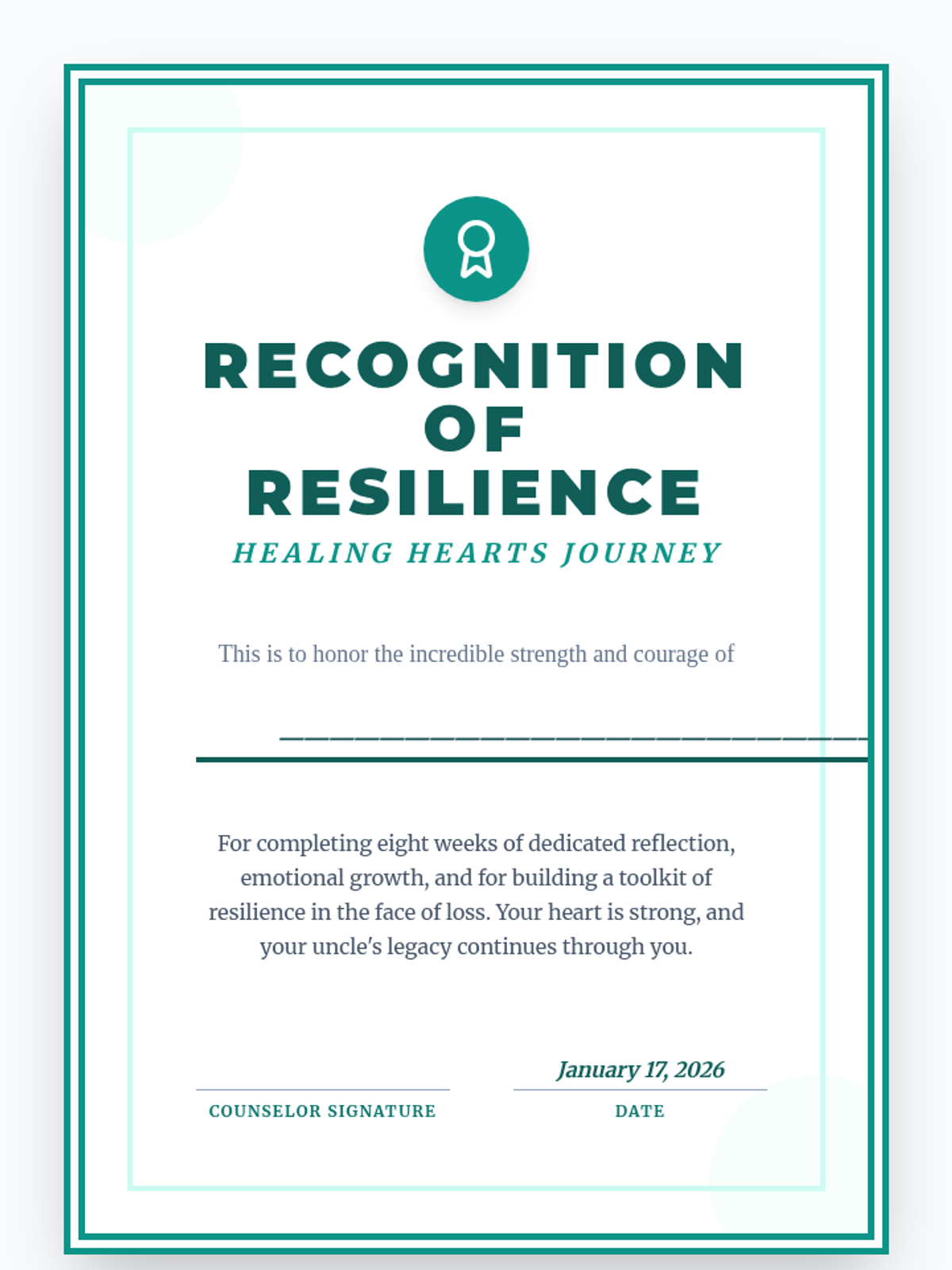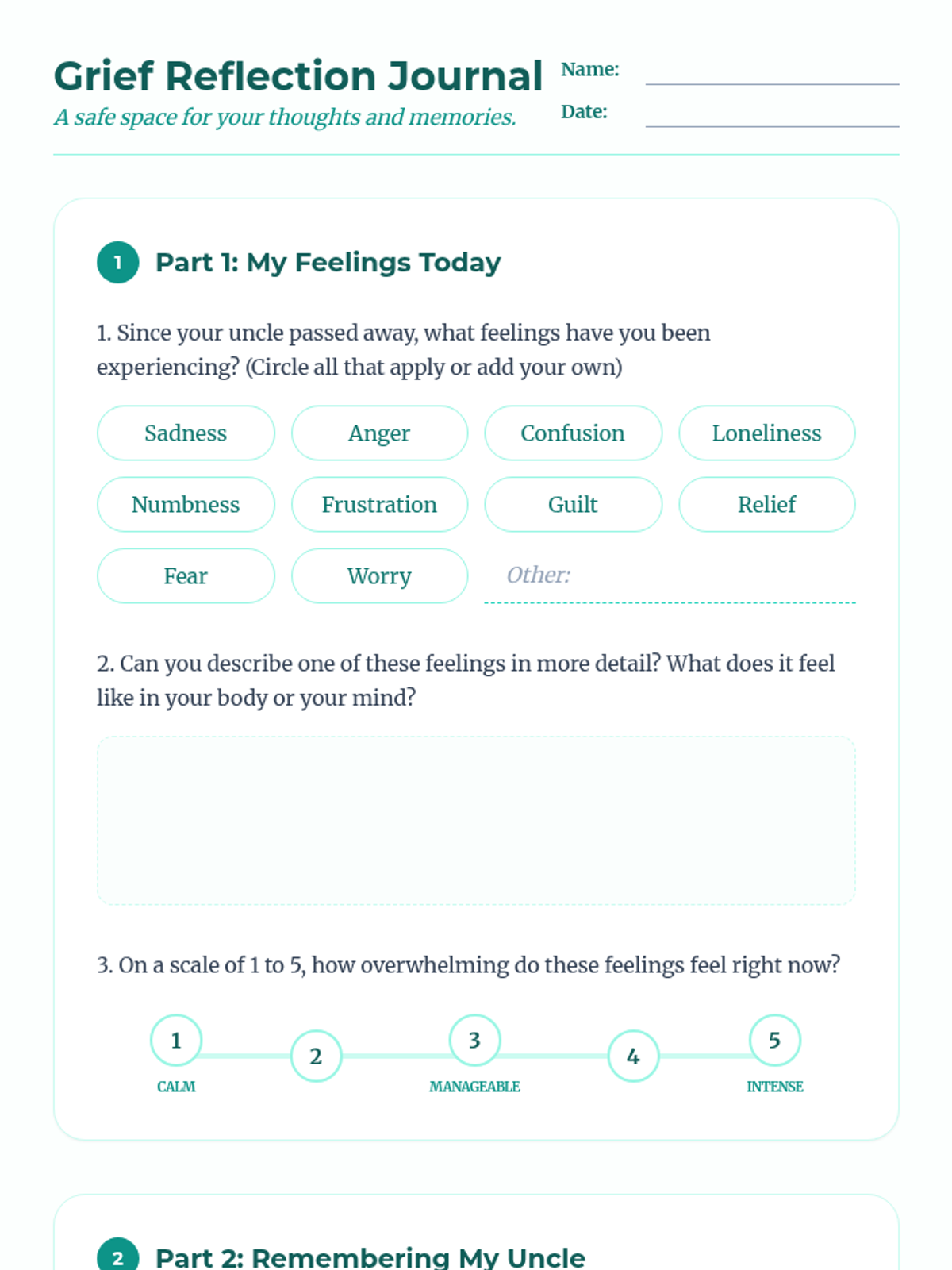 A 6-8 week Tier 3 intervention for a 7th-grade girl processing the loss of her uncle. This sequence provides a structured, supportive journey through understanding grief, honoring memories, and developing resilient coping strategies.