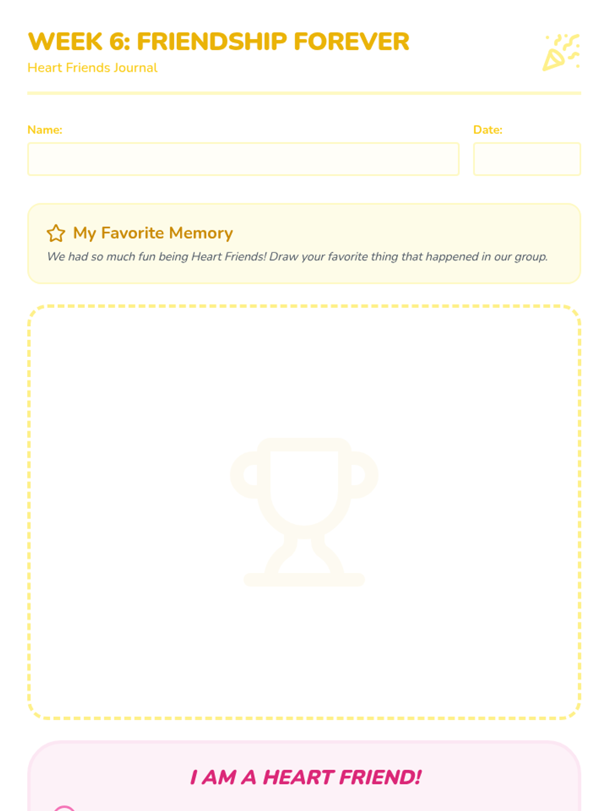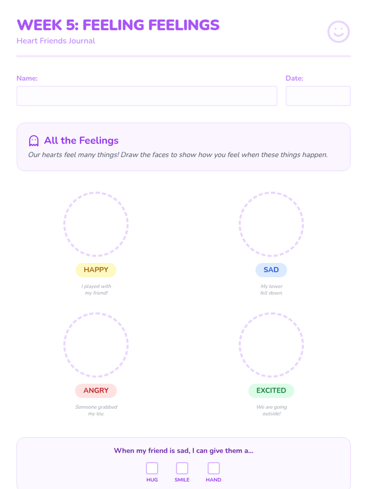A 6-week social-emotional learning program for kindergarten students, focusing on building foundational friendship skills, empathy, and communication through a weekly journal and group activities.