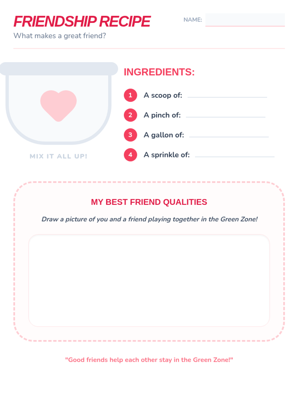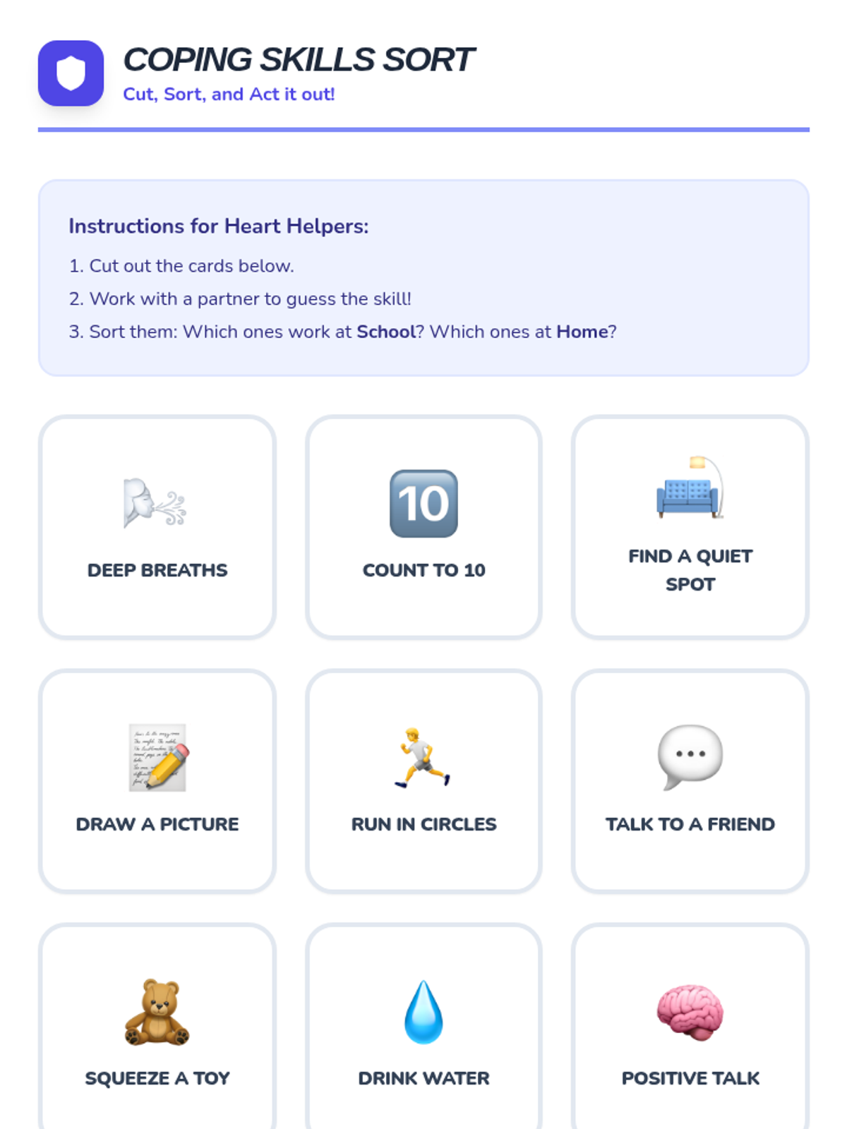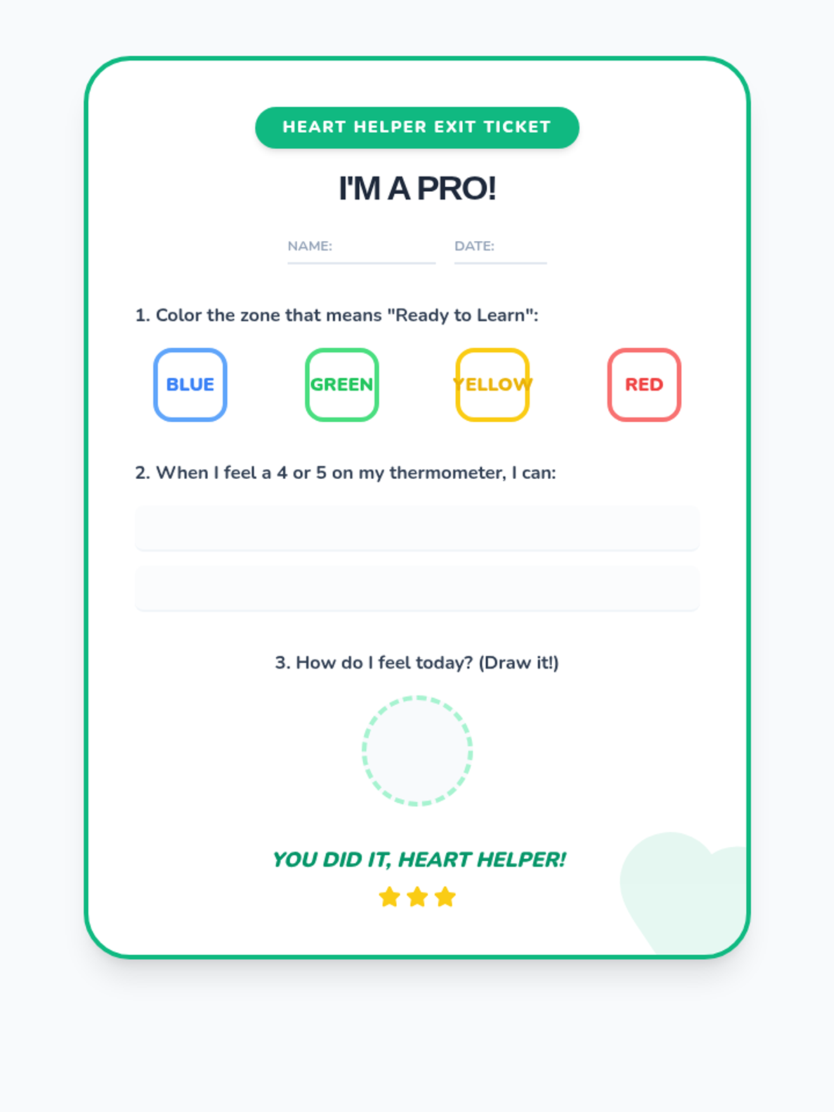 A comprehensive 4-week social-emotional learning curriculum for 1st and 2nd graders. Students learn to identify emotions using the Zones of Regulation, track triggers with a Feelings Thermometer, develop coping strategies, and build respectful friendships.